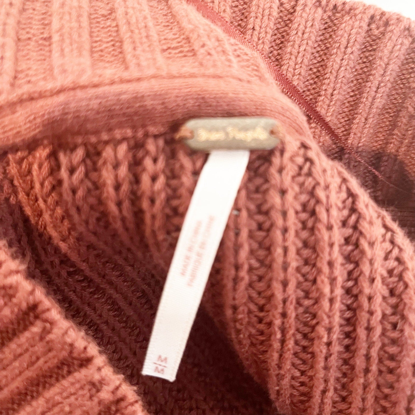 Free People Emilie Cropped Twist Front Cable Sweater Cherry Cola Red Medium