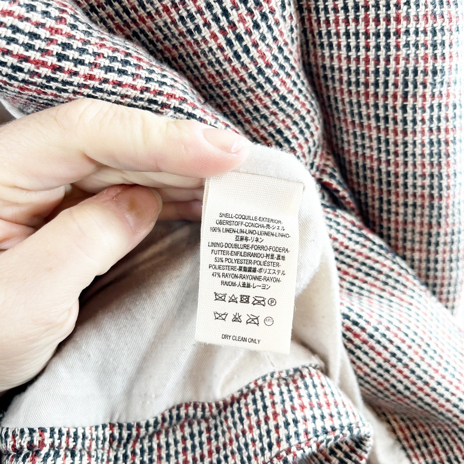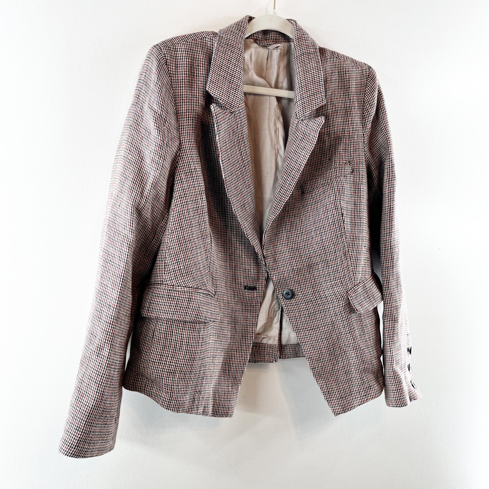 Free People Houndstooth Single Breasted Chess Linen Blazer Garnet Combo M