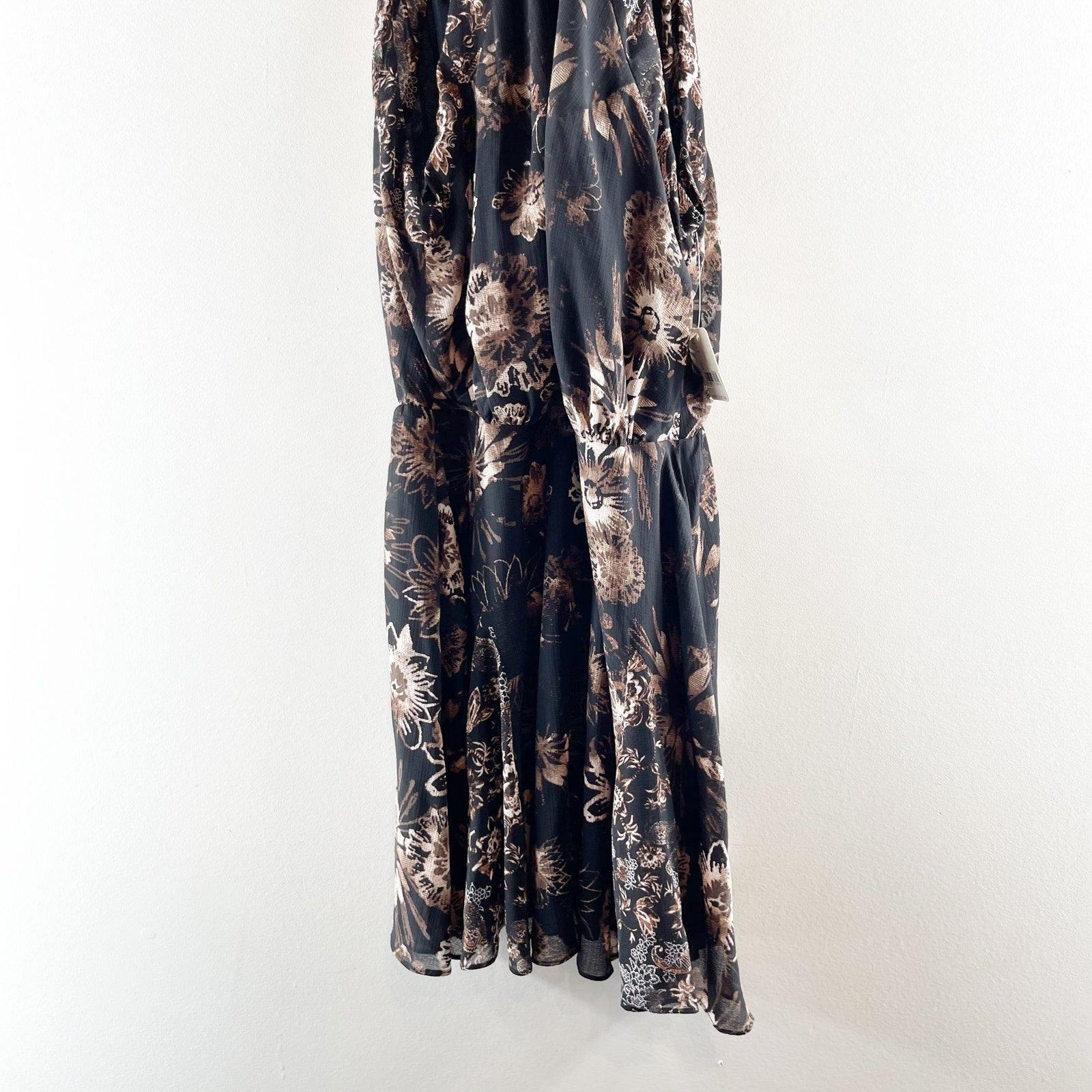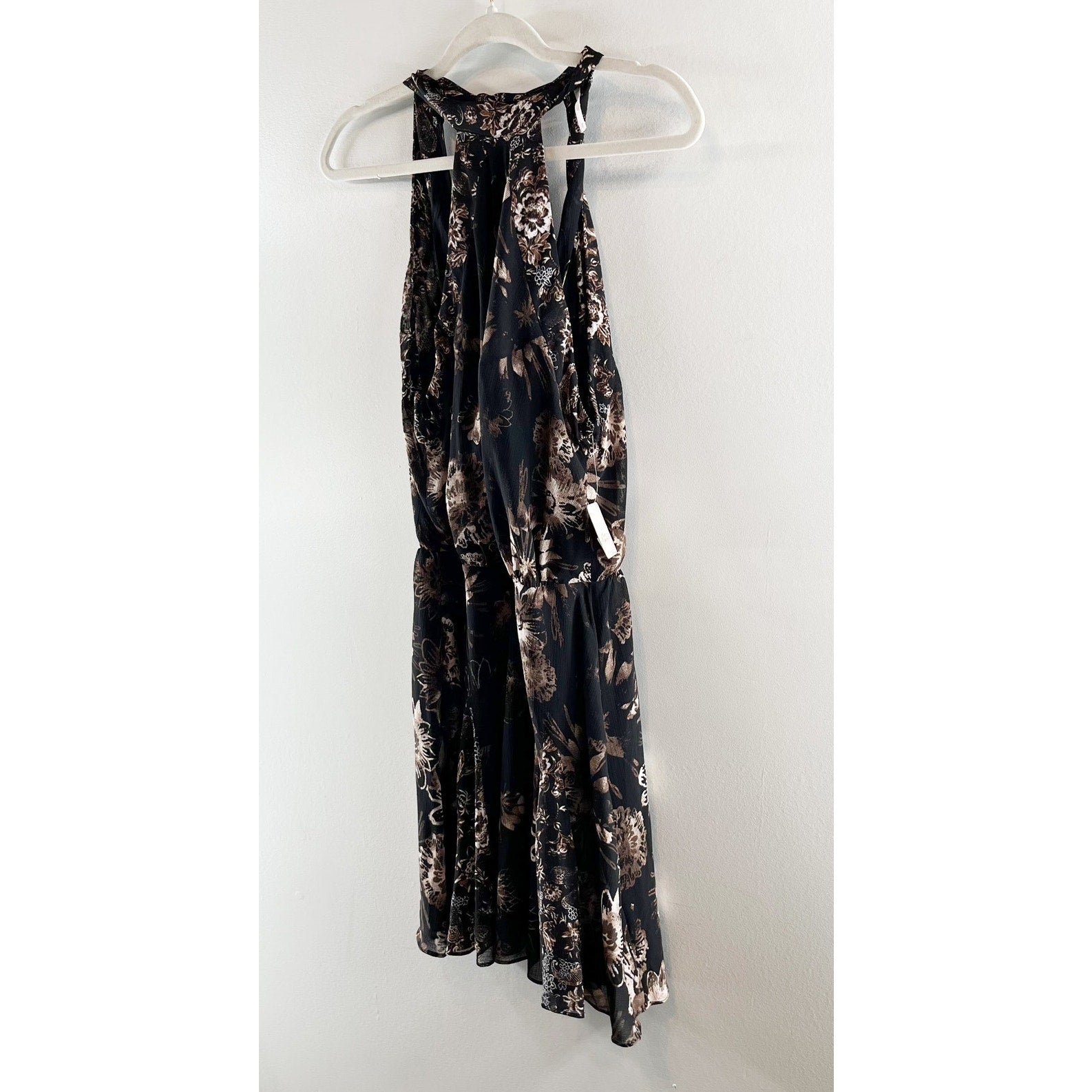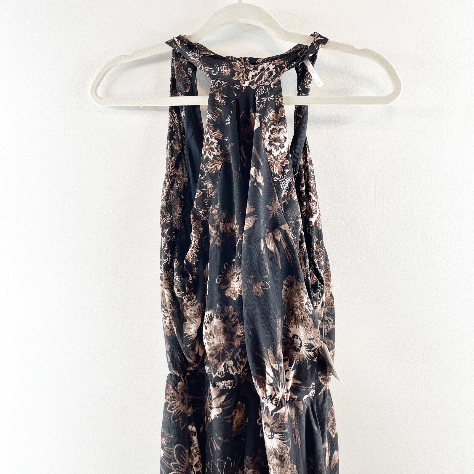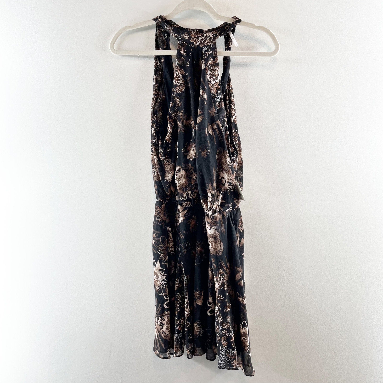 Free People Katerina Halter Tie Sleeveless Floral Mini Dress Black Small