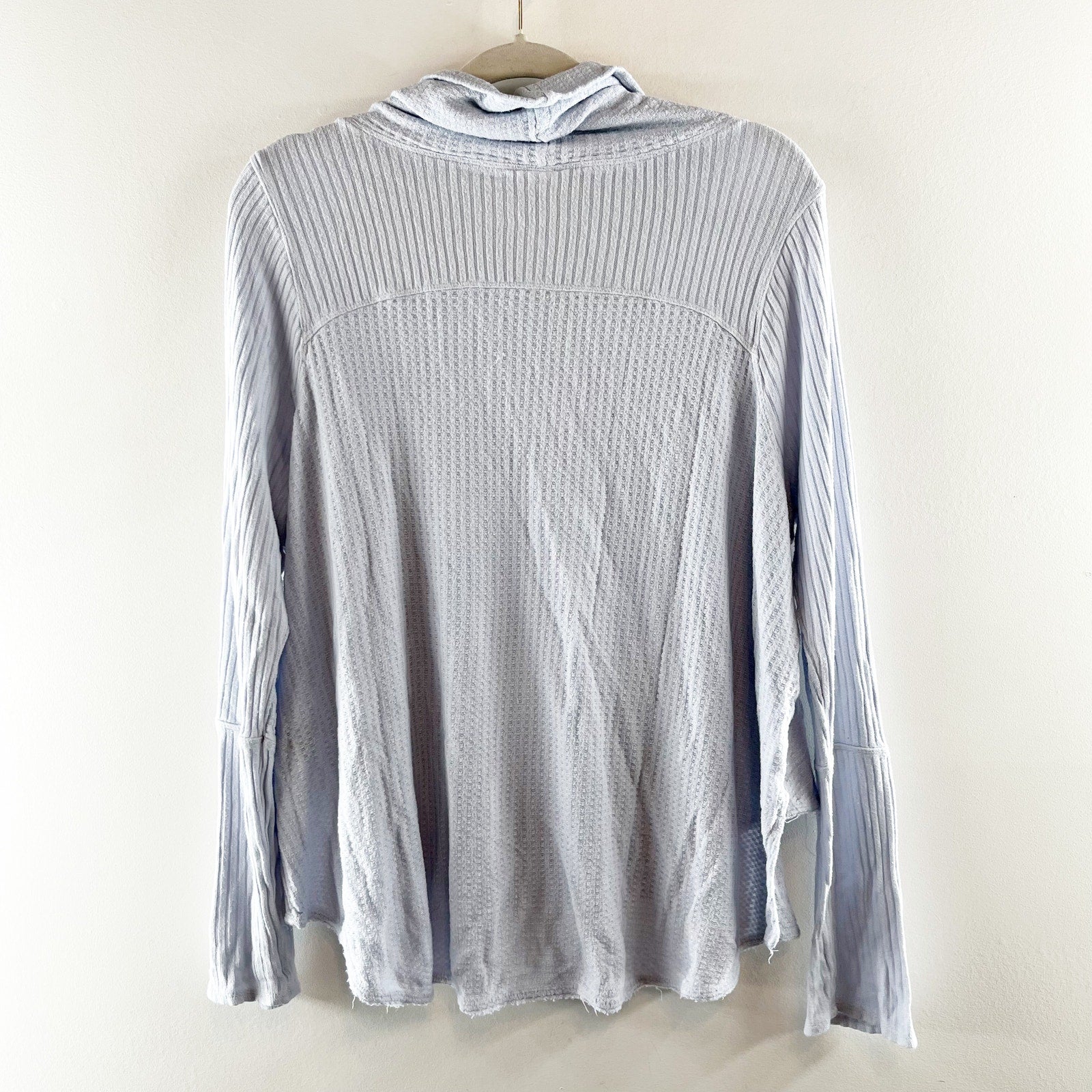 Free People Kristina Thermal Turtleneck Long Sleeve Top Shirt Blue Large