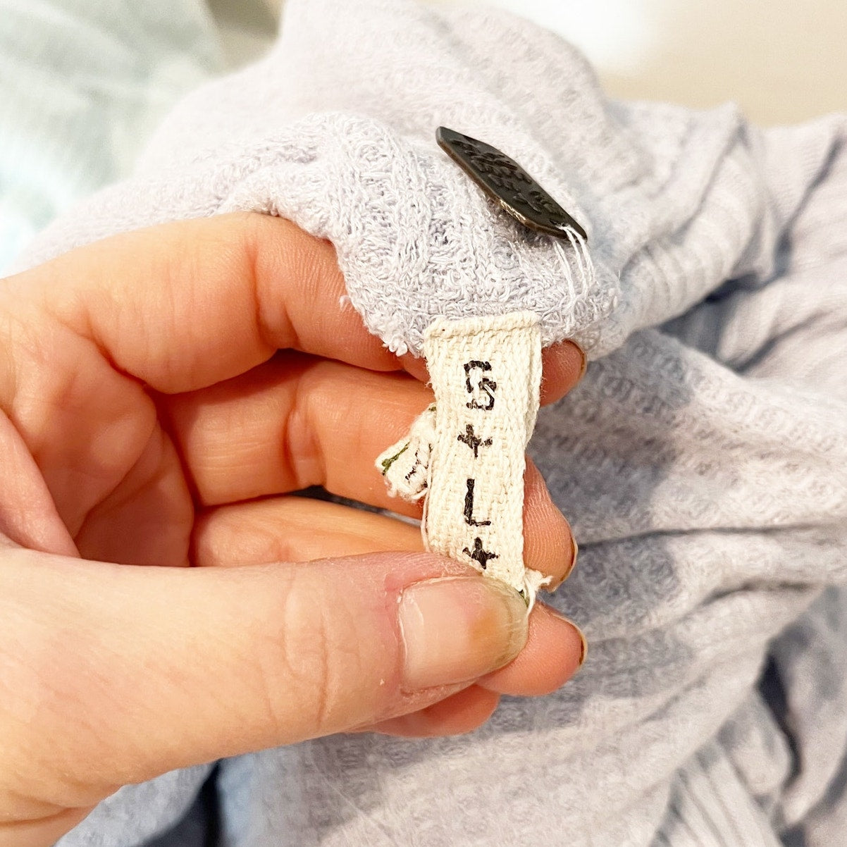 thermal, waffle knit, curved hem, raw hem, turtleneck, top, shirt, pastel light blue, layering, side slits, flowy