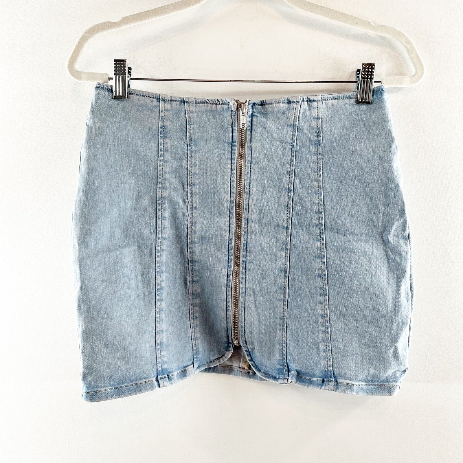 Free People Layla High Waisted Slim Fit Denim Mini Skirt Light Blue 6