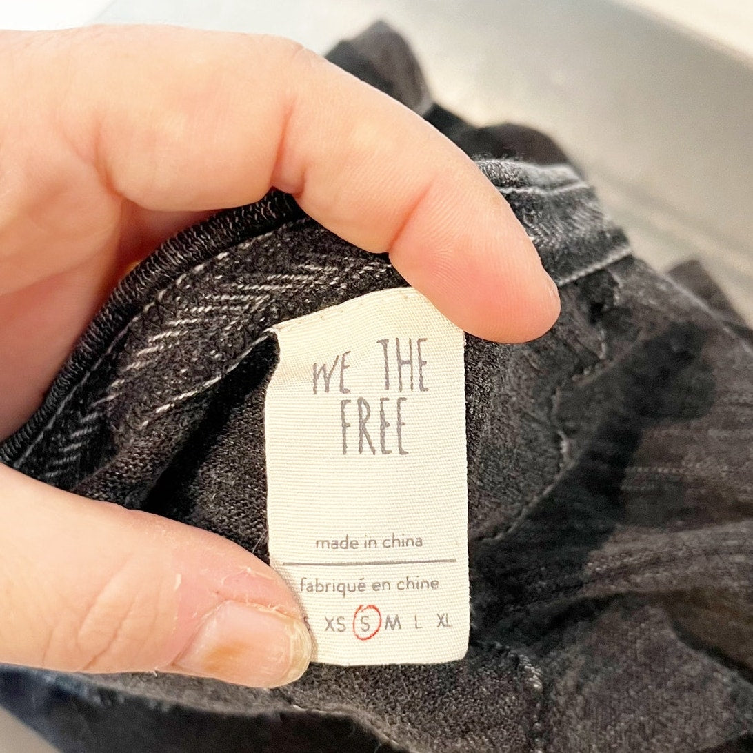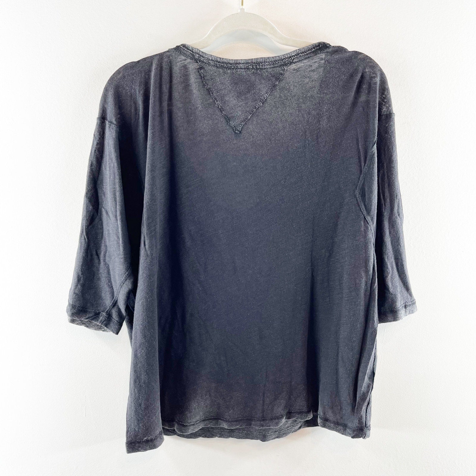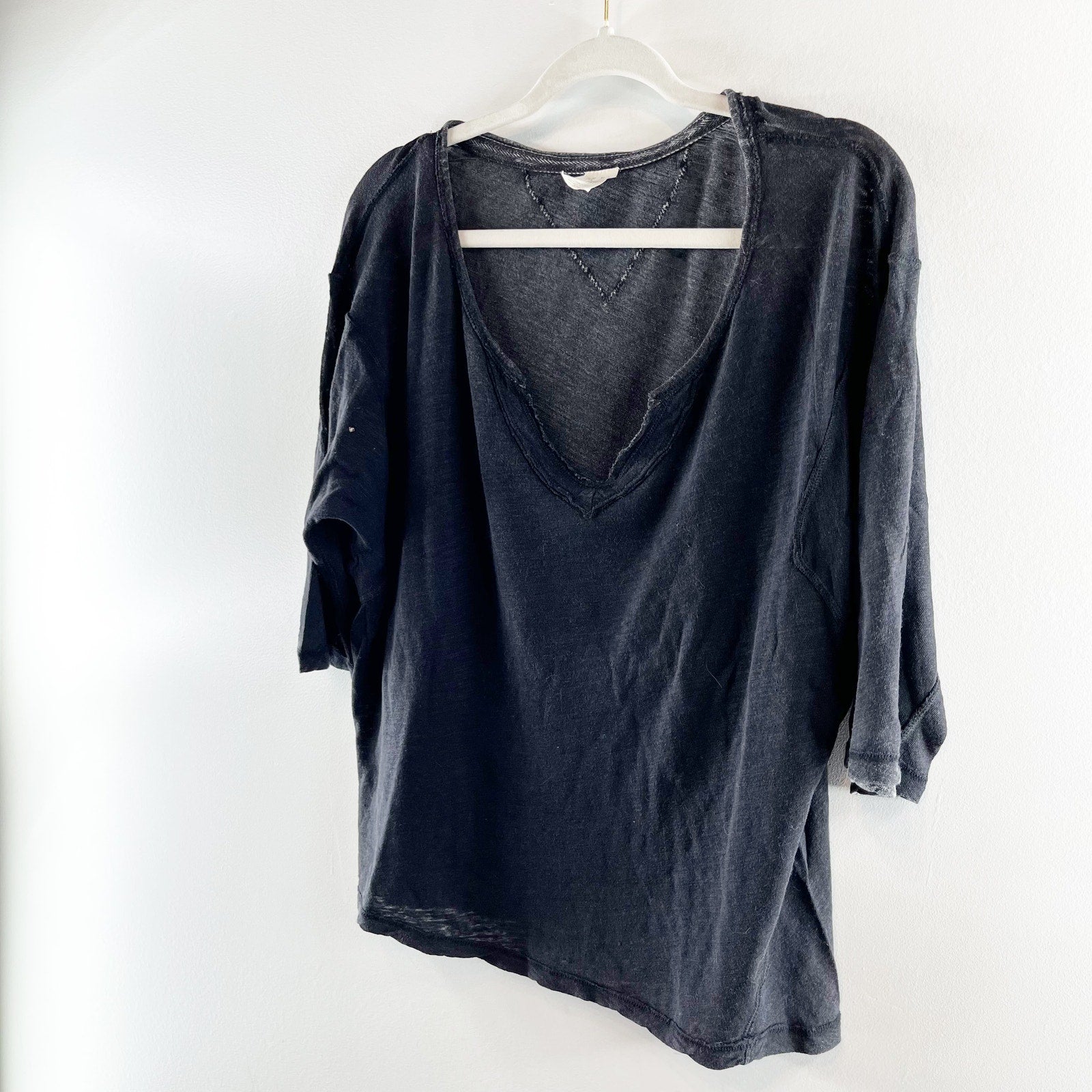Free People Short Sleeve V Neck Linen Tee Shirt Top Black Small