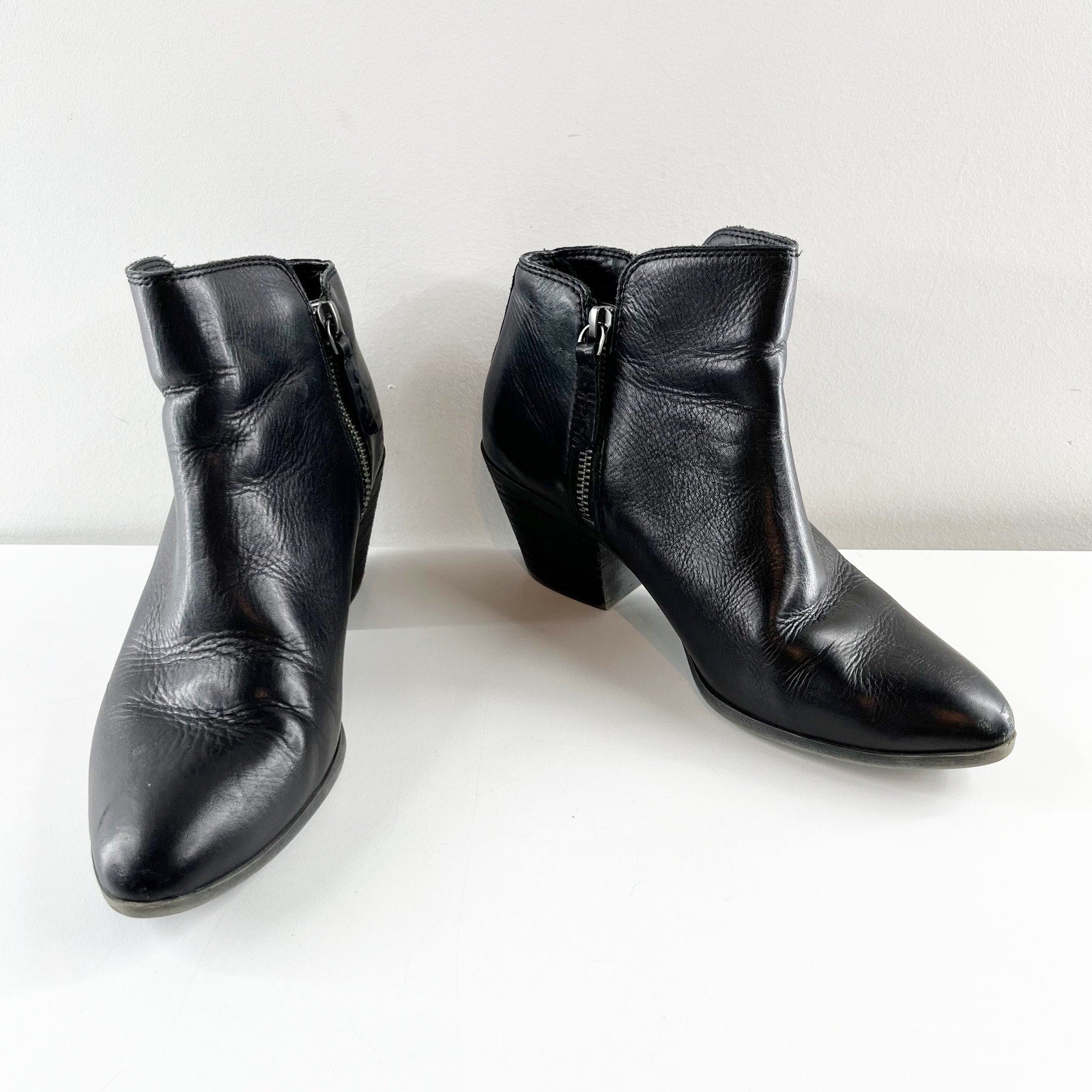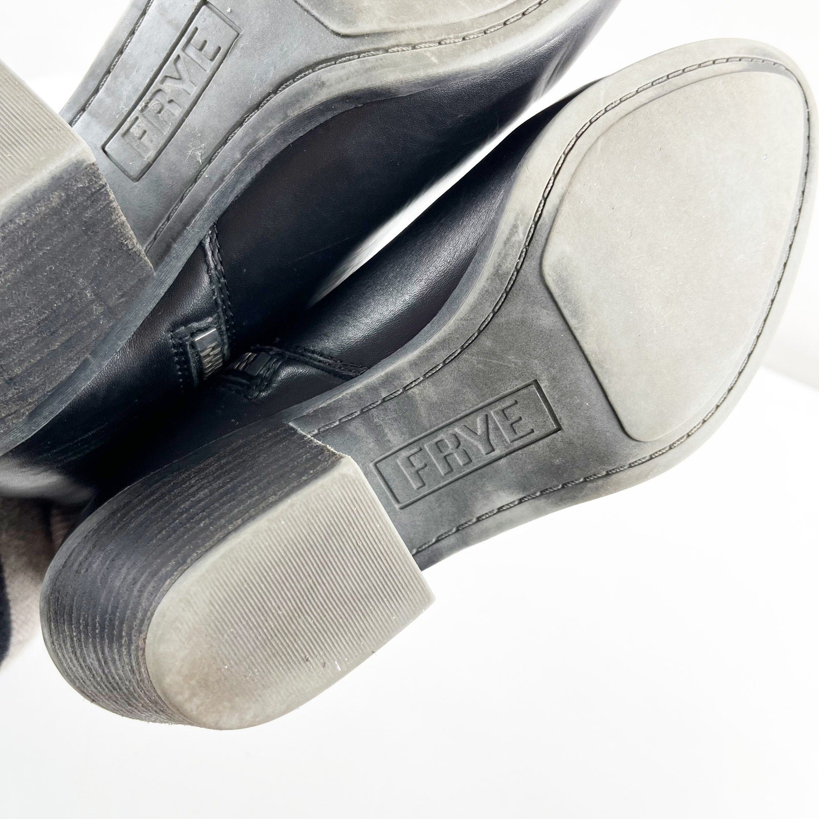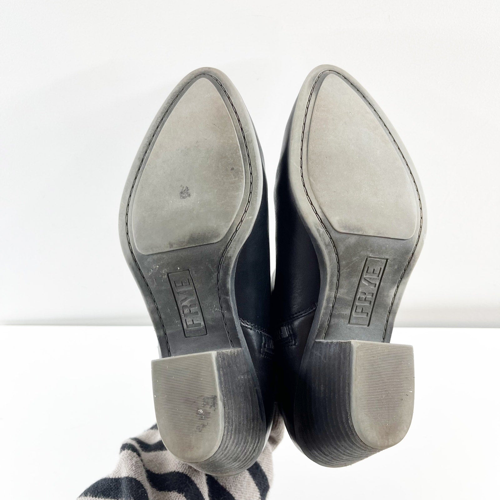 Frye Judith Leather Block Heel Almond Toe Zip Ankle Bootie Black 7