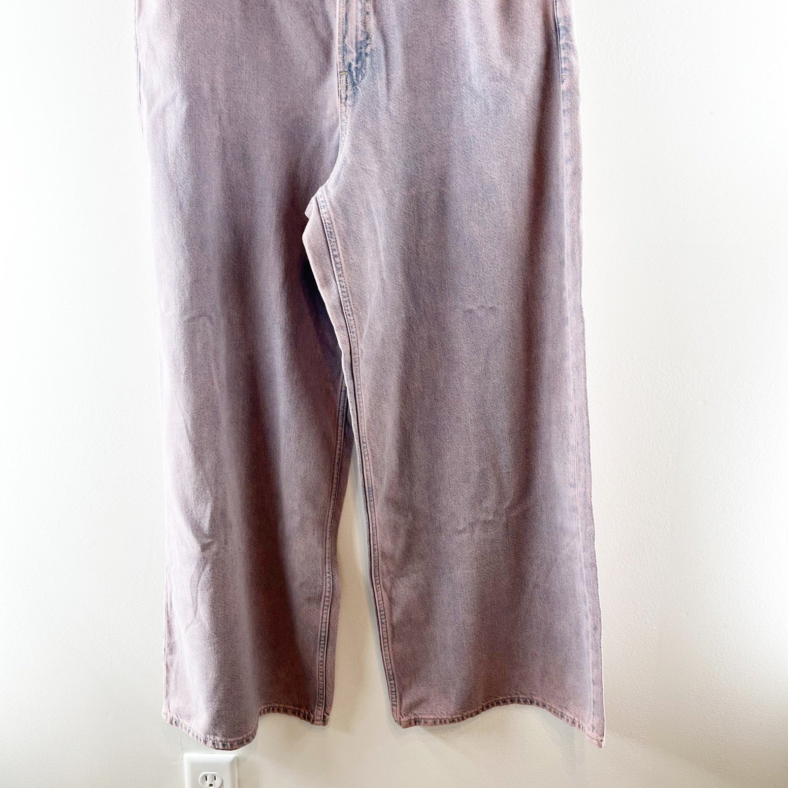 acid wash, mid rise, wide leg, baggy, soft denim, purple, jeans, pockets