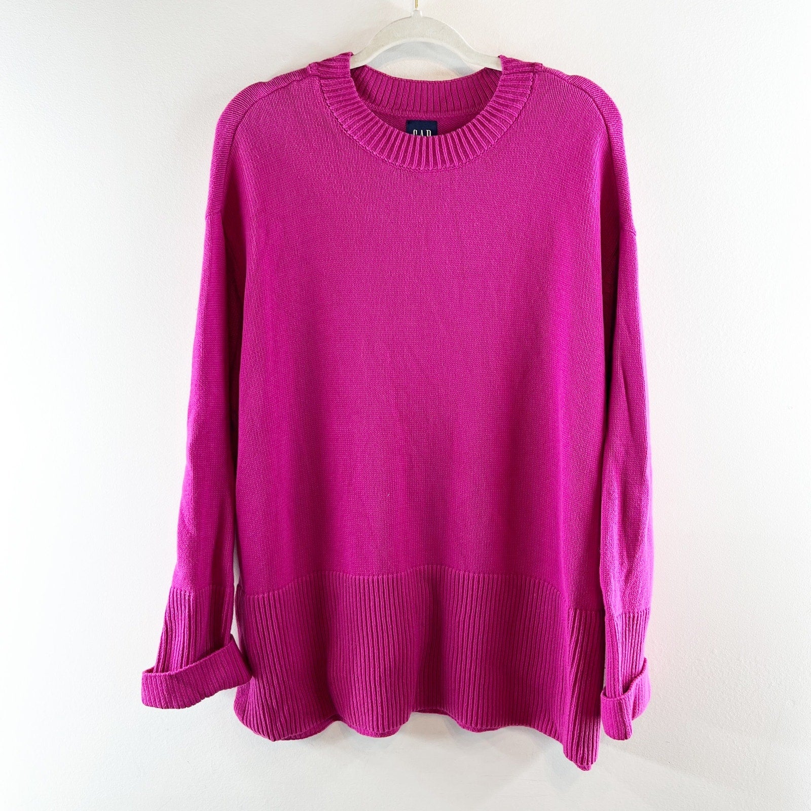GAP Crewneck Cotton Oversized Long Sleeve Ribbed Trim Sweater Pink XL