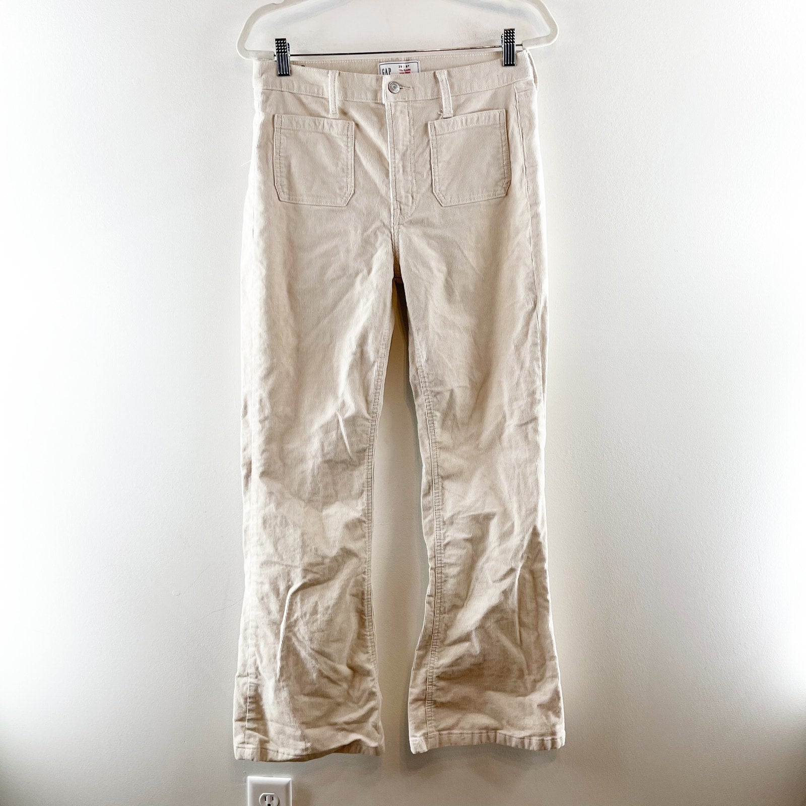 GAP High Rise '70s Flare Patch Pocket Corduroy Pants Birch Cream 8