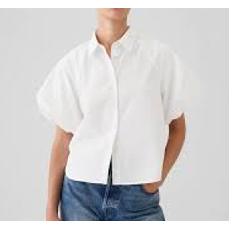 button down, short puff sleeves, collar, top, shirt, cotton, white, cropped boxy fit