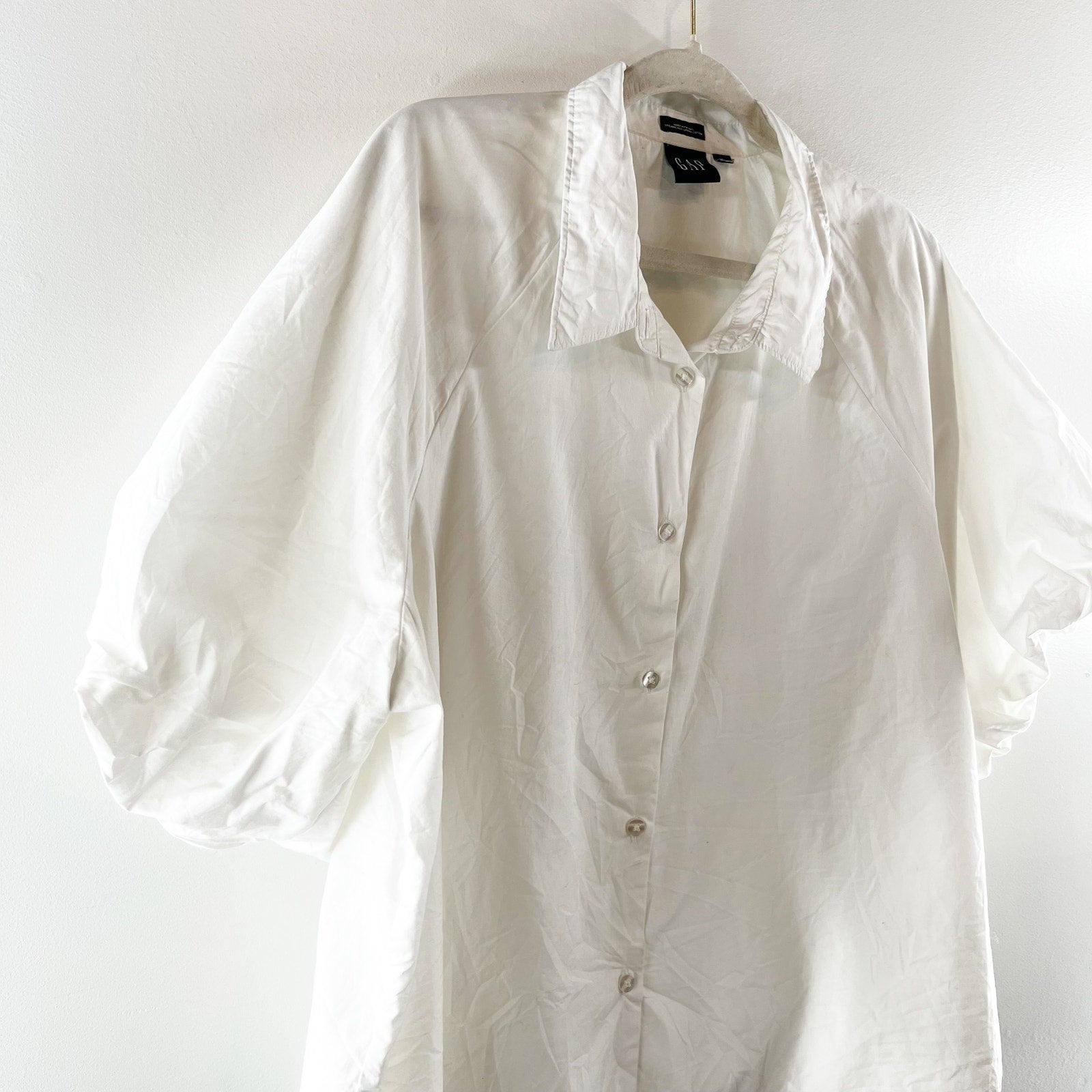 GAP Organic Cotton Short Puff Sleeve Button Down Shirt Top White XXL