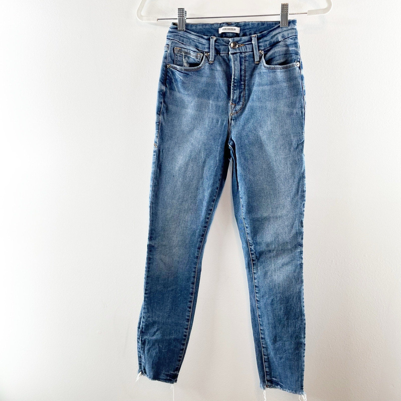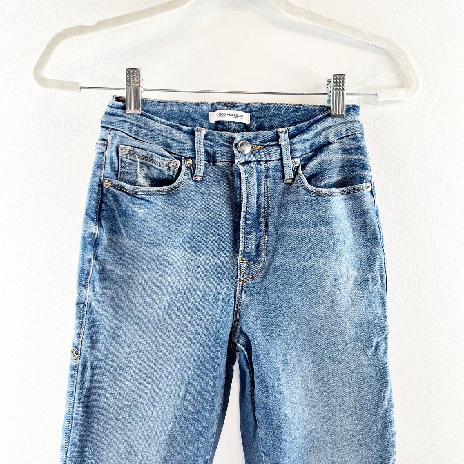 Good American Good Legs High Rise Cropped Jeans Raw Edge Blue 2 / 26