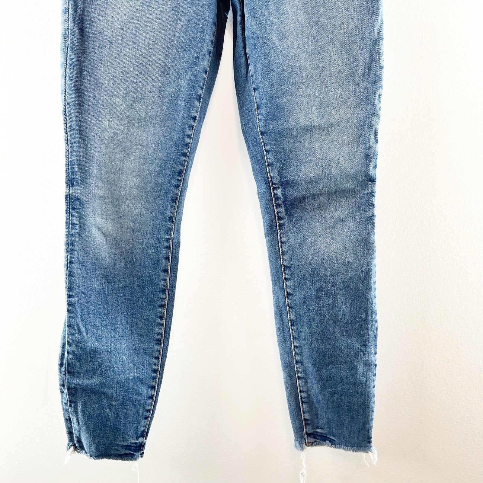 high waisted, stretch, cropped fit, skinny, raw hem, denim, jeans, medium wash