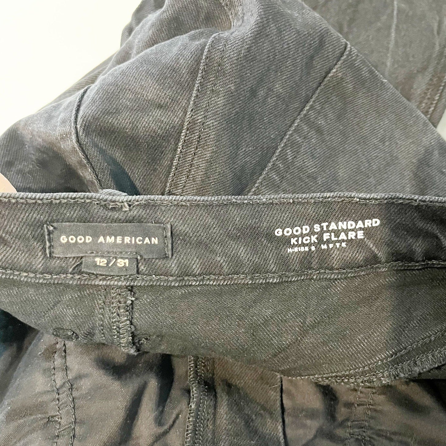 Good American High Rise Standard Good Kick Flare Cropped Jeans Black 31 / 12