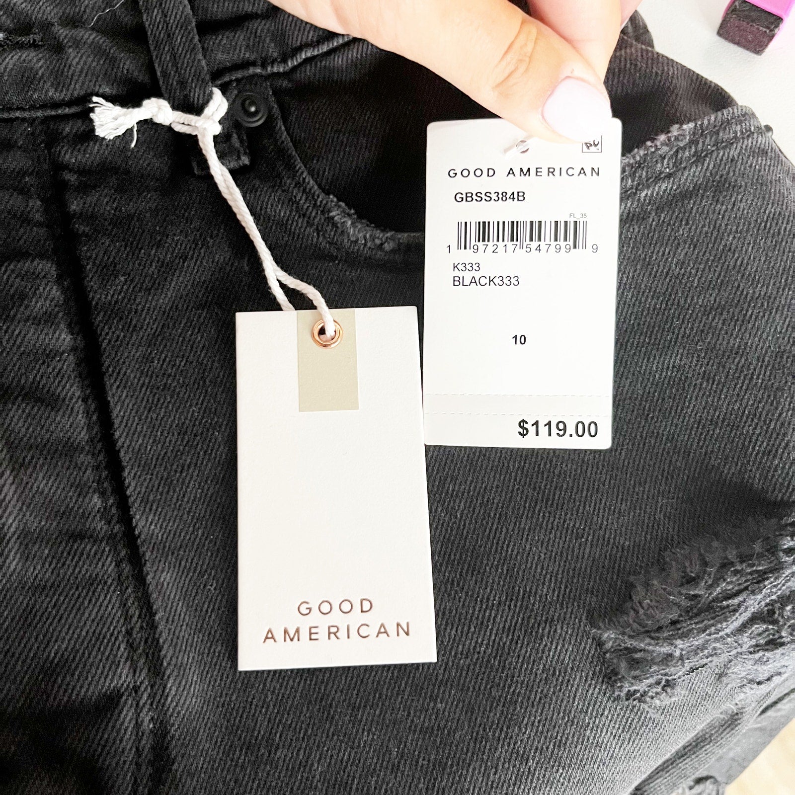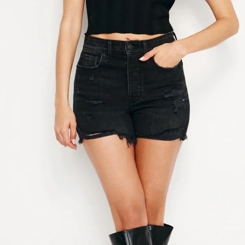 Good American High Waisted Distressed Bombshell Jean Shorts Black 10 / 30