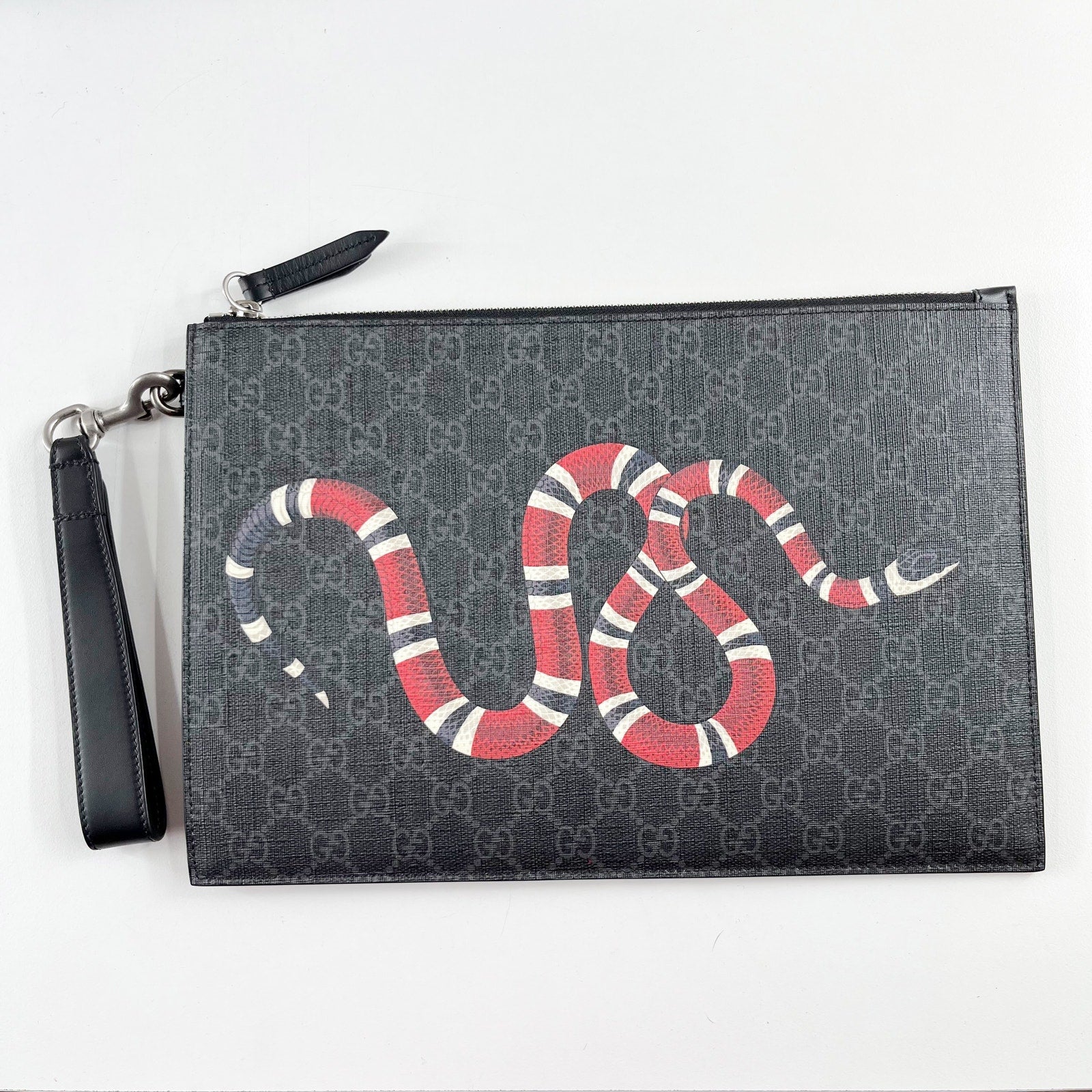 Gucci GG Supreme Kingsnake Canvas Pouch Wristlet Wallet Black