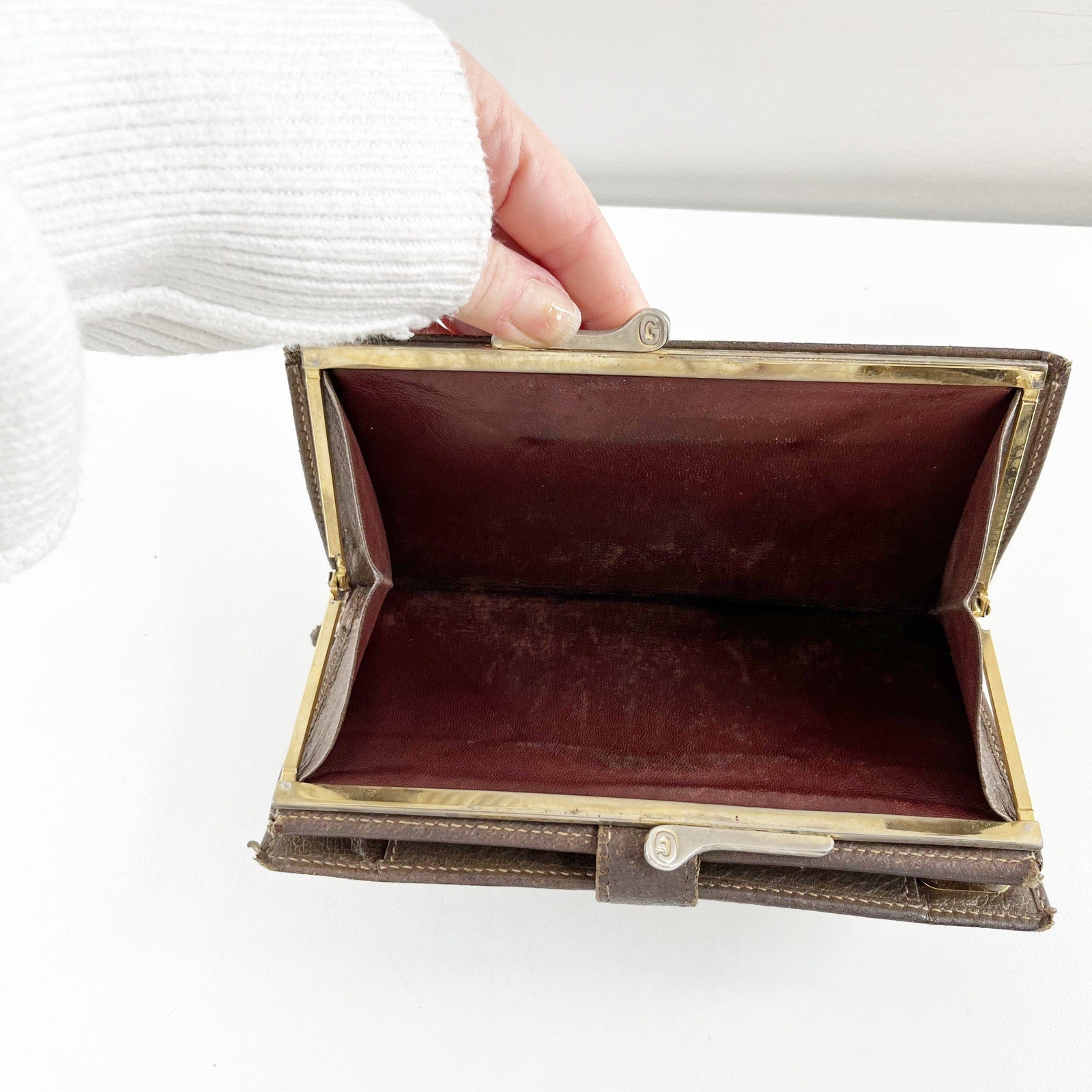 tri fold, leather interior, card slots, money cash slot, snap flap closure, rectangle, coin pouch, web accent, brown, gg, supreme, designer, wallet
