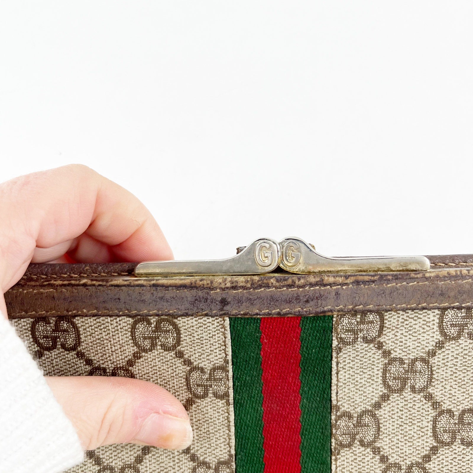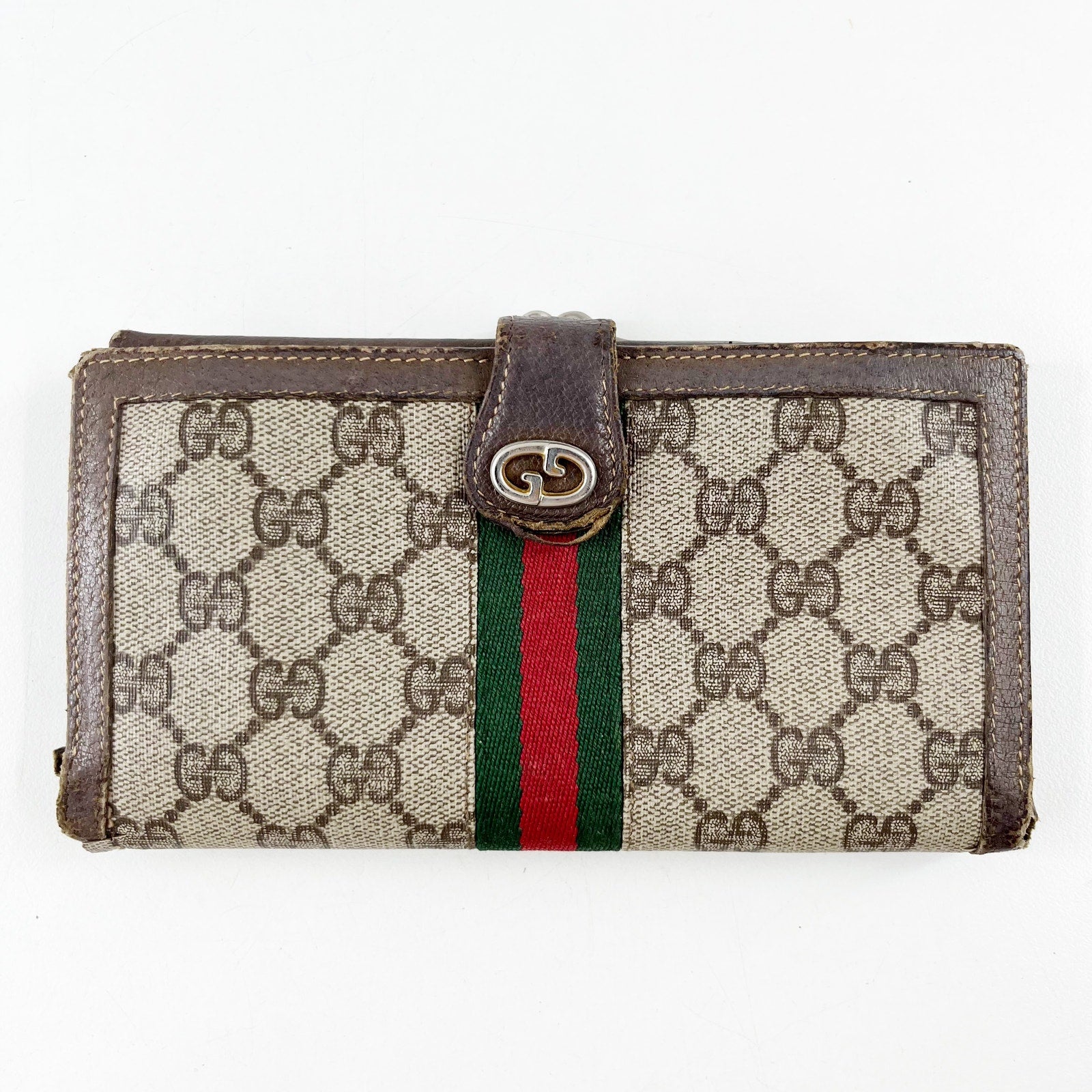 Gucci Vintage GG Supreme Web Long Trifold Wallet French Purse Brown