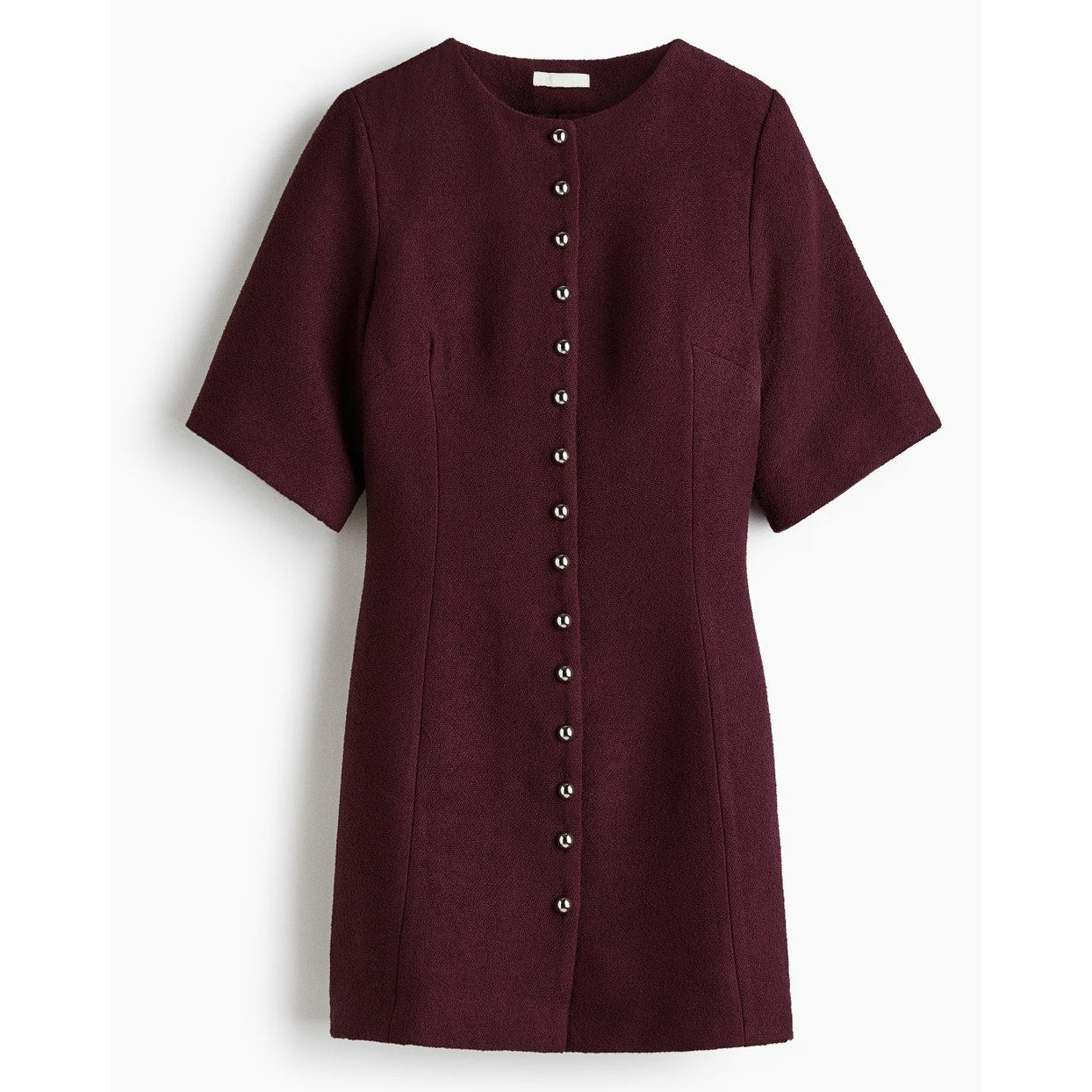 H&M Boucle Short Sleeve Button Up Short Sleeve Mini Dress Plum Purple Small