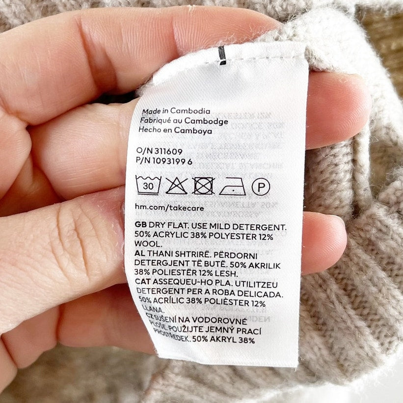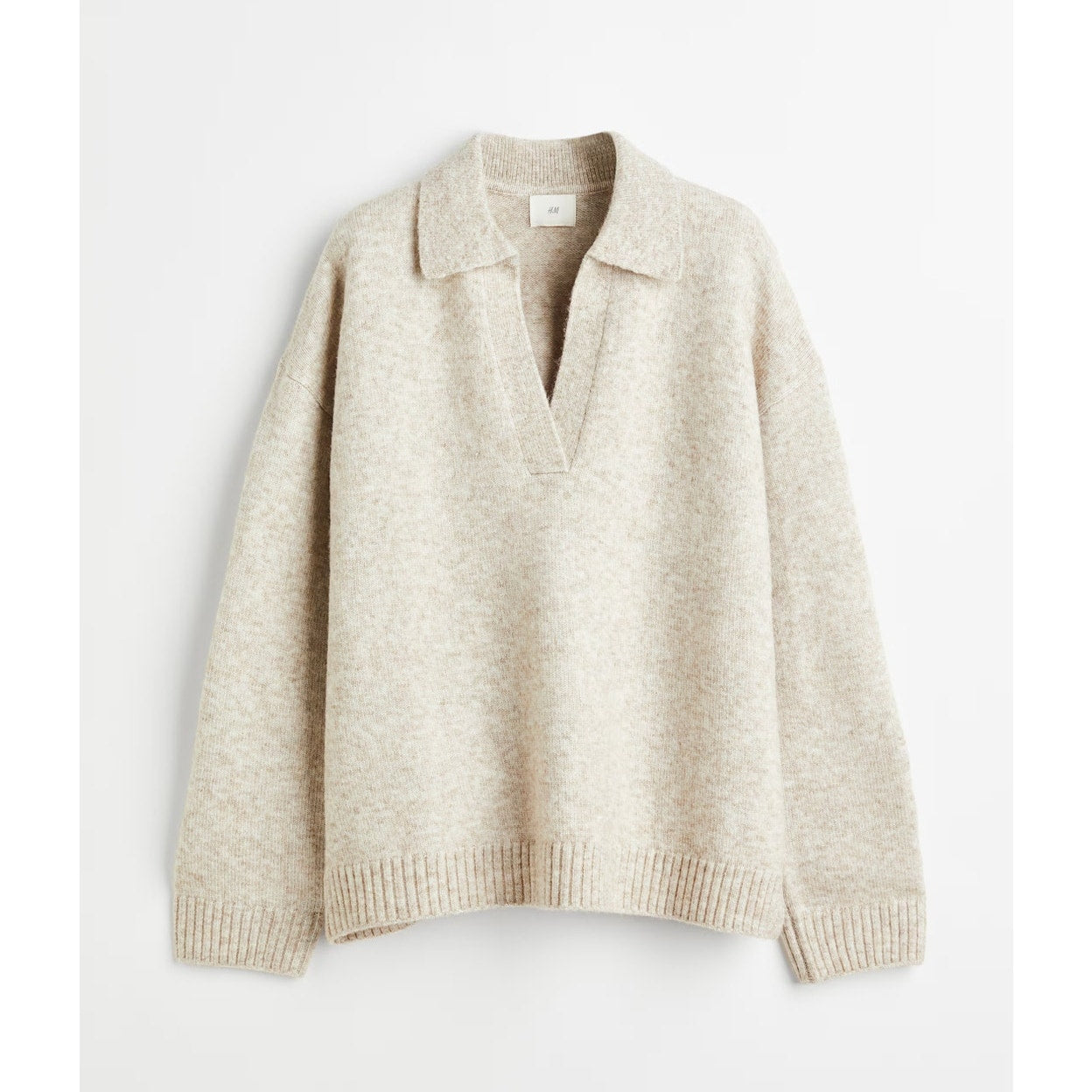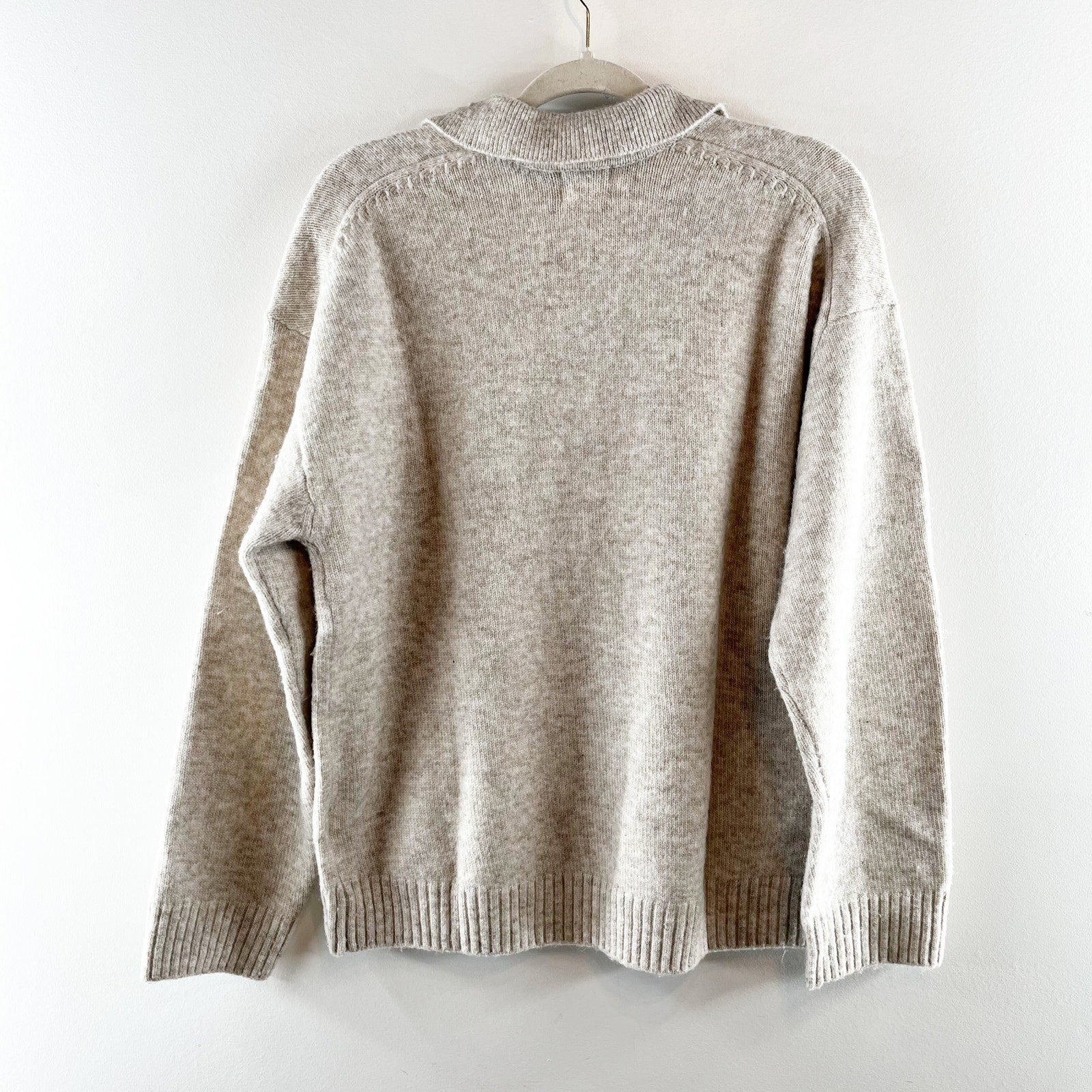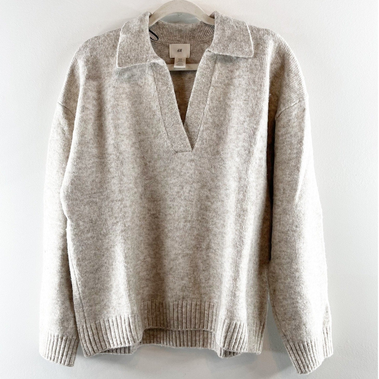 H&M Fine Knit Long Sleeve Polo Collared Pullover Sweater Tan Beige XS