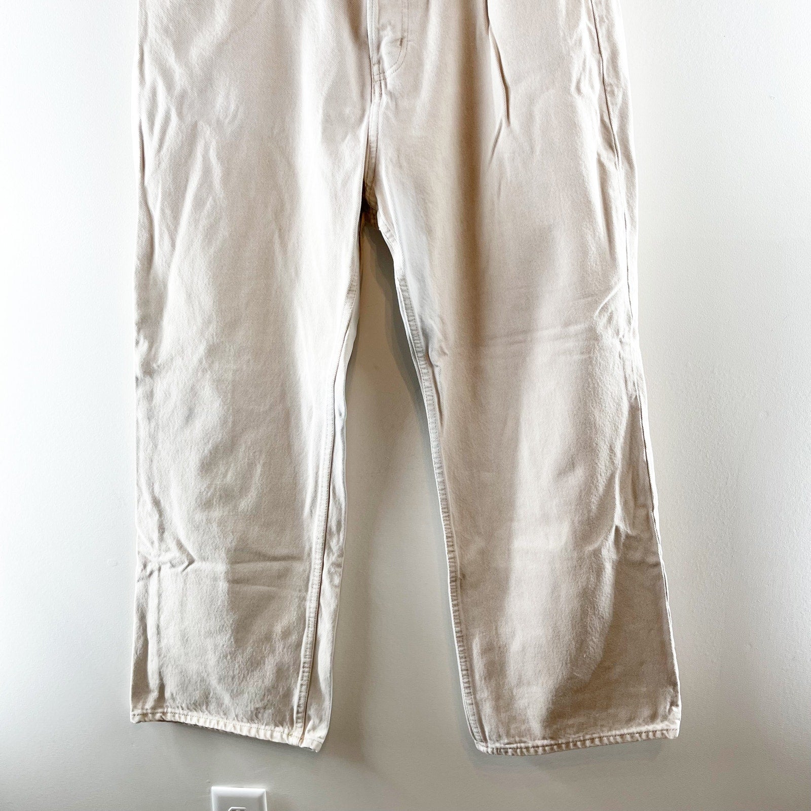 H&M High Rise Cotton Button Fly Straight Leg Jeans Cream Bone 14