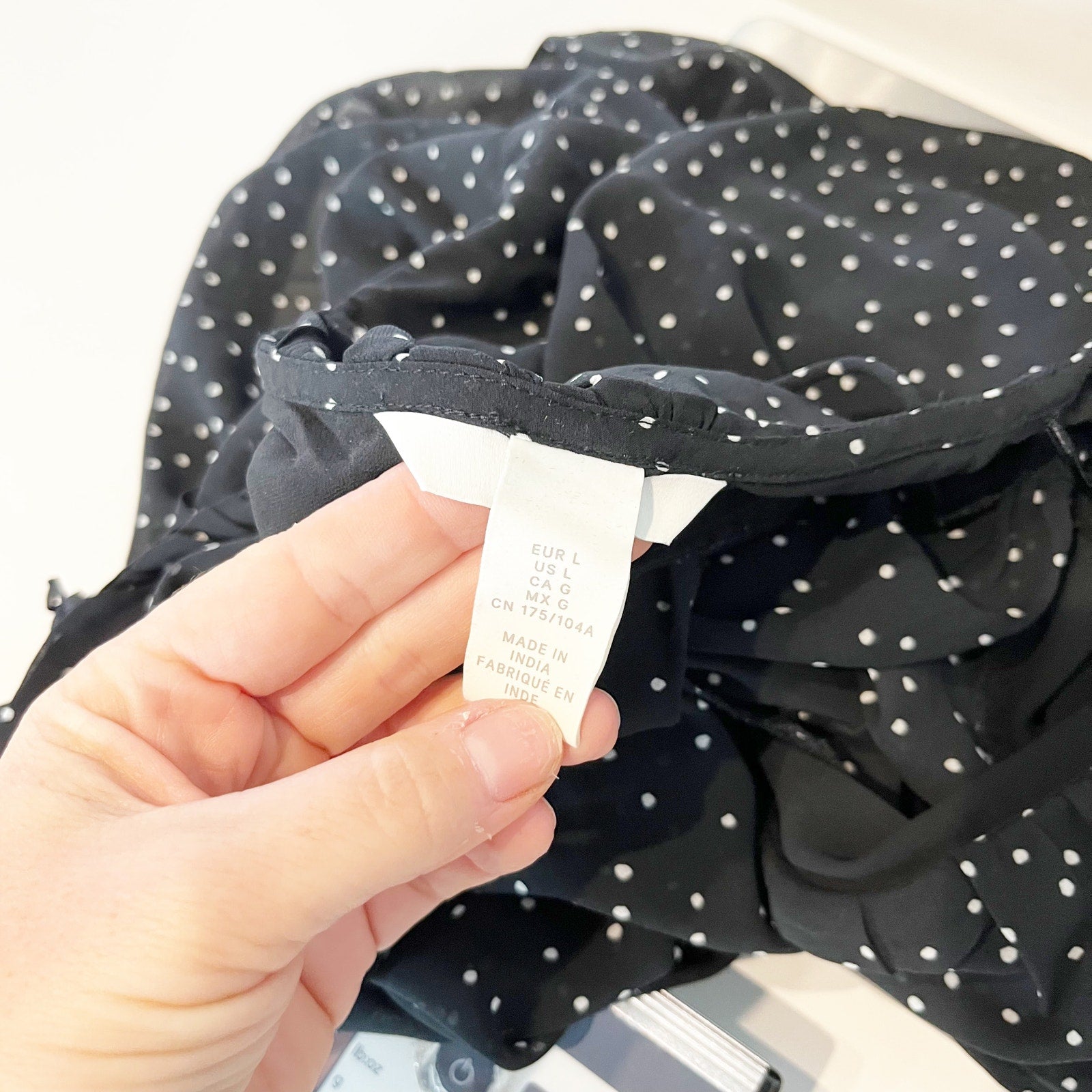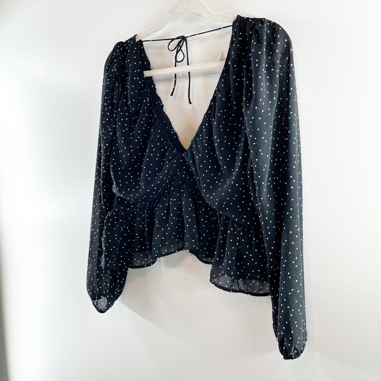 H&M Long Sleeve Polka Dot V Neck Peplum Crop Blouse Shirt Top Black Large