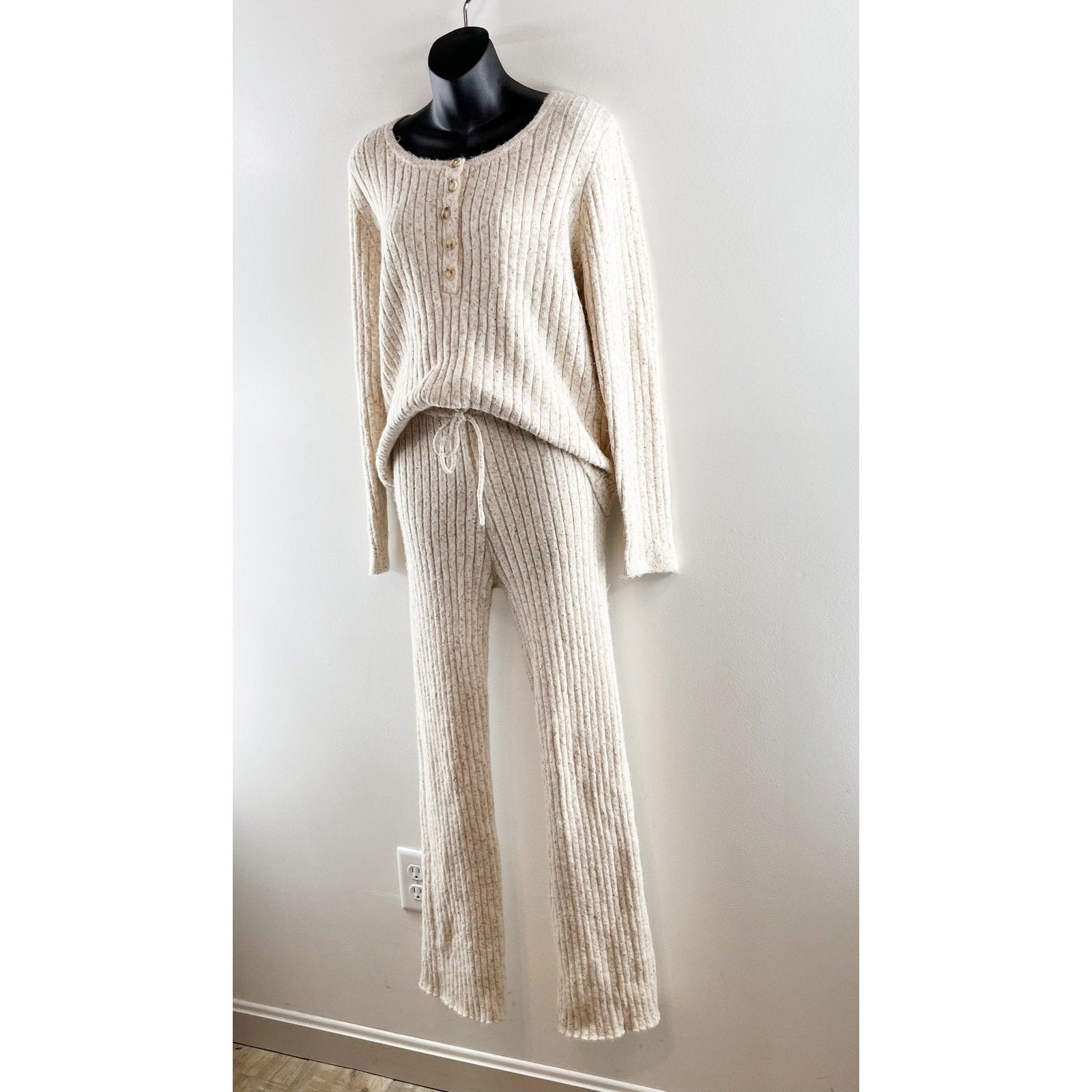 sweater, pants, loungewear, relaxed, casual, matching, set, everydaywear, winter, outdoor, chilly weather, ribbed, henley button up, long sleeve, sweater set