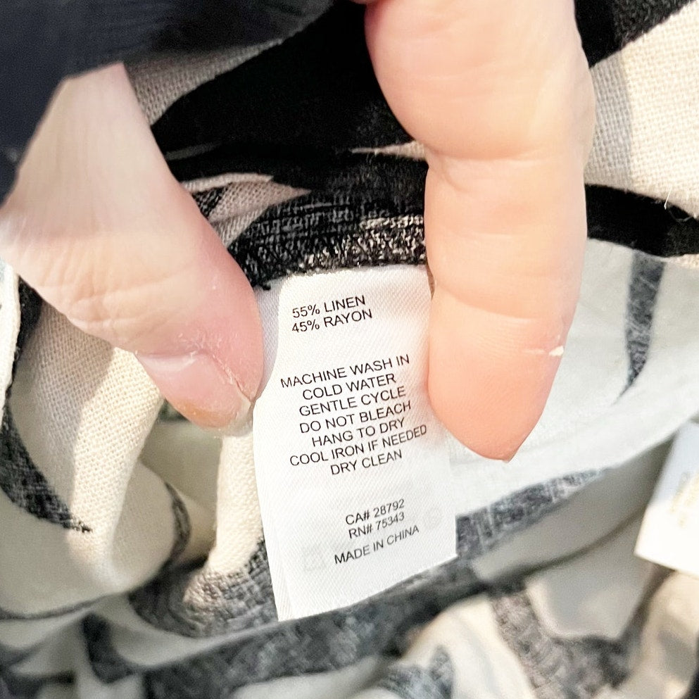 House of Harlow Floral Tropical Wide Leg Linen Blend Pants Black White 2