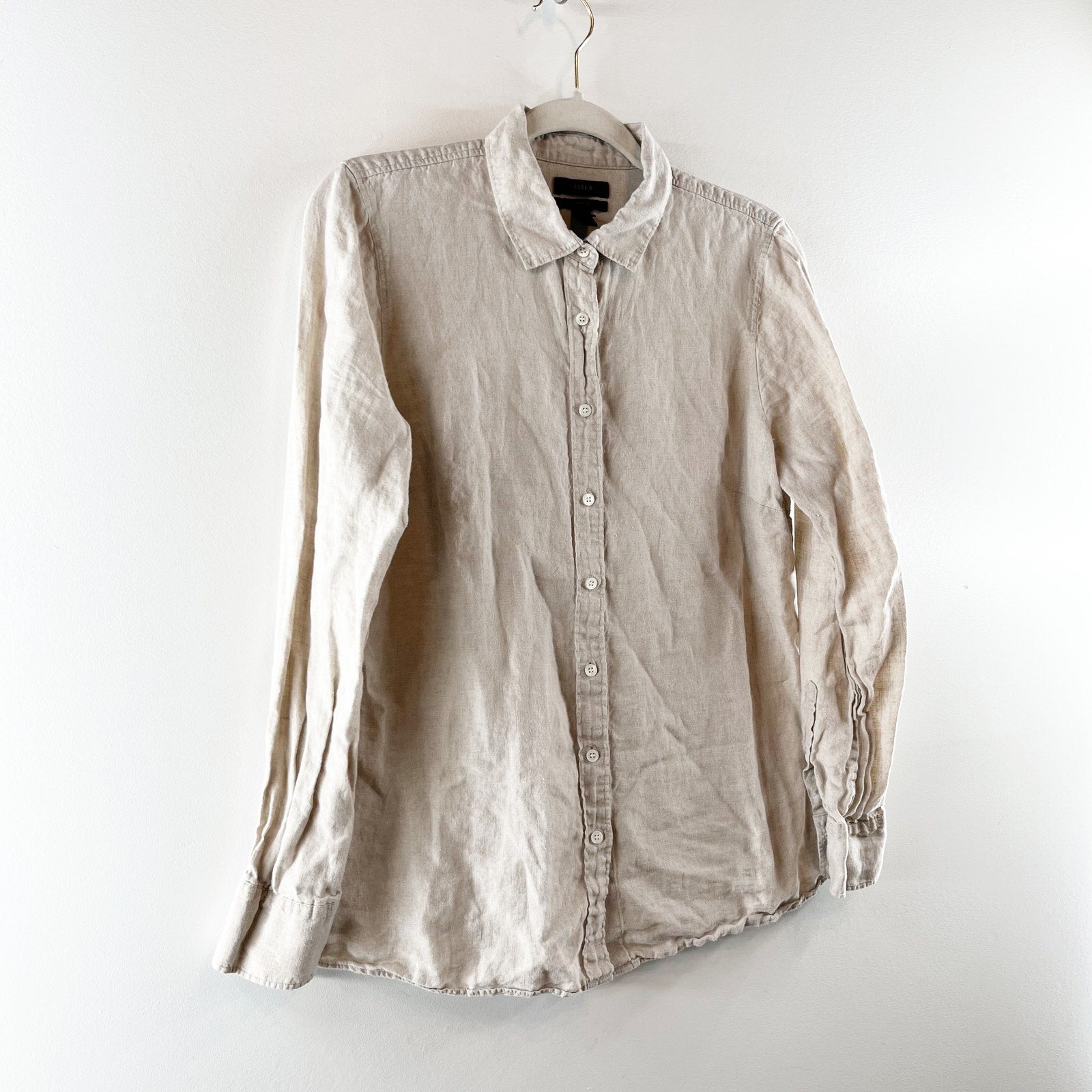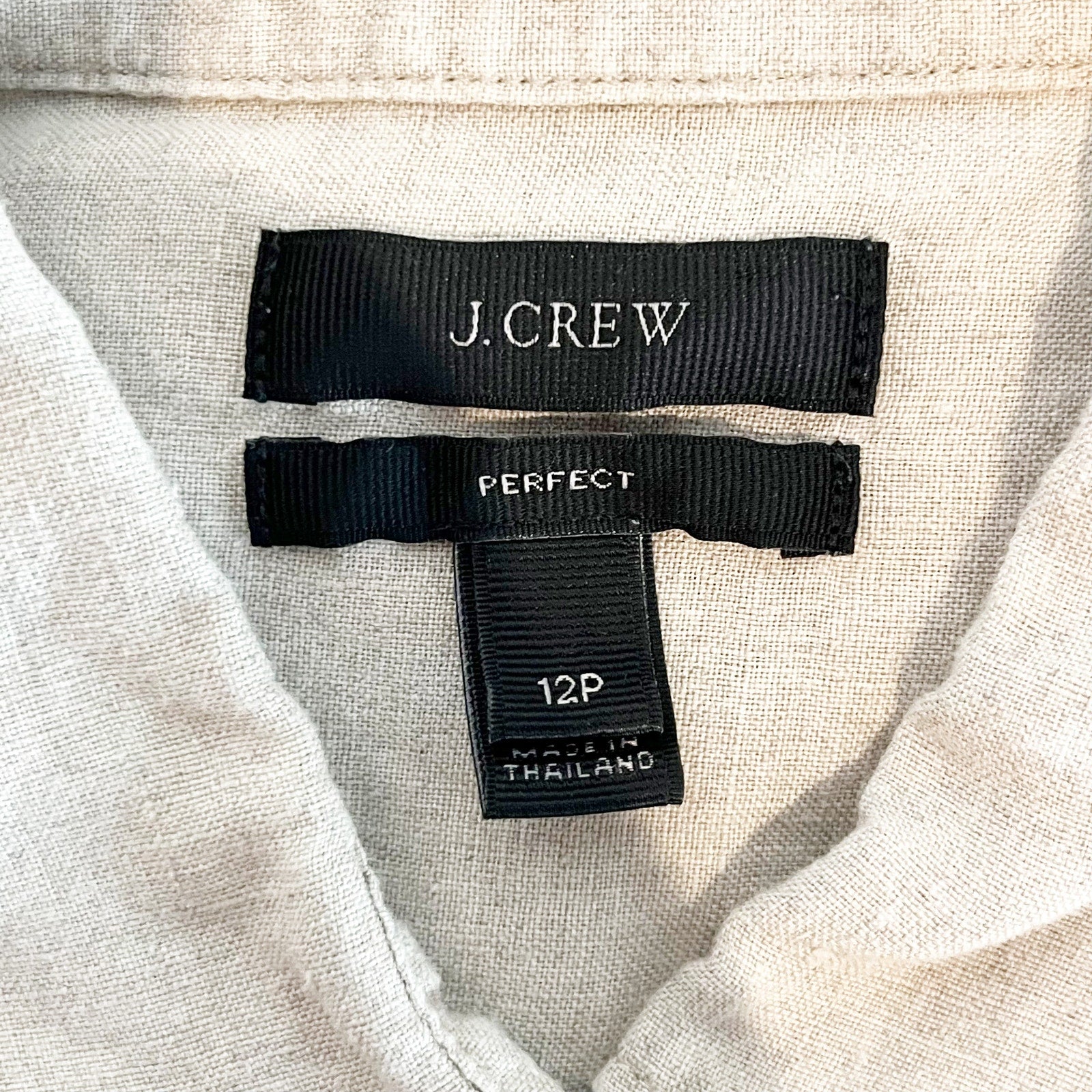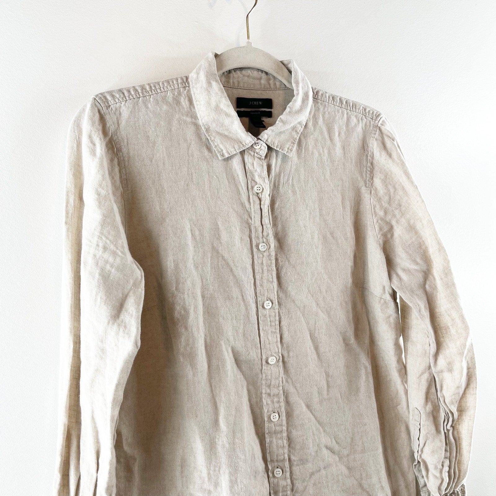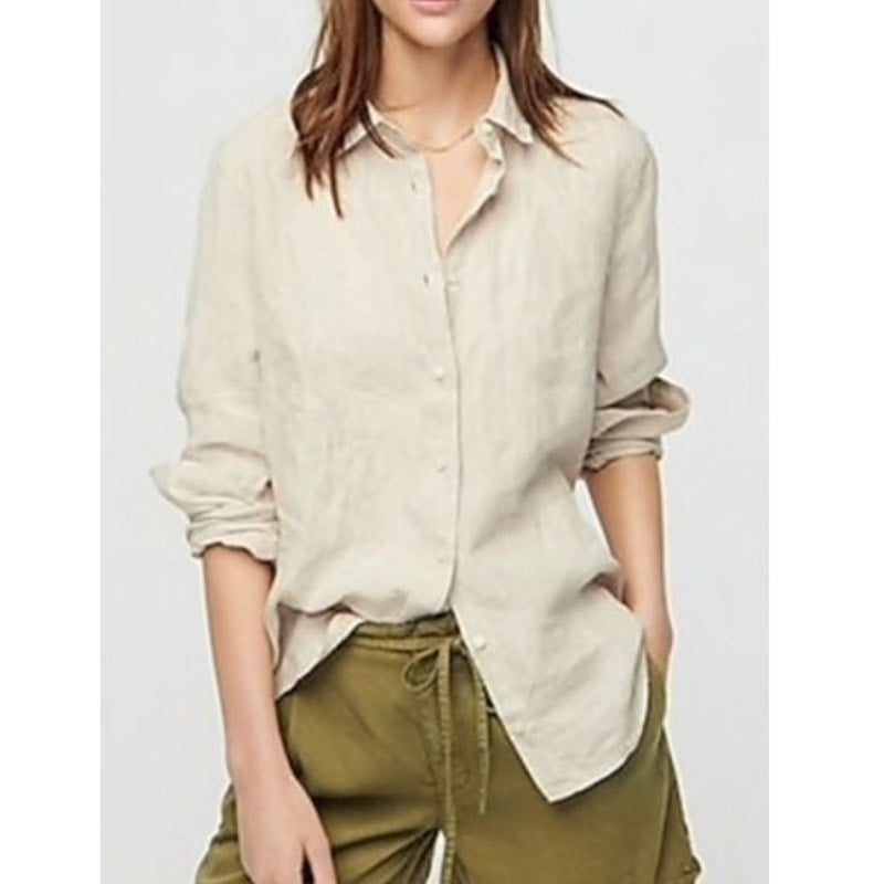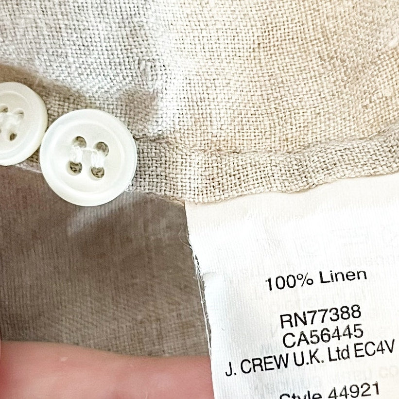 J. Crew Perfect 100% Linen Long Sleeve Collared Button-Up Shirt Beige 12 Petite