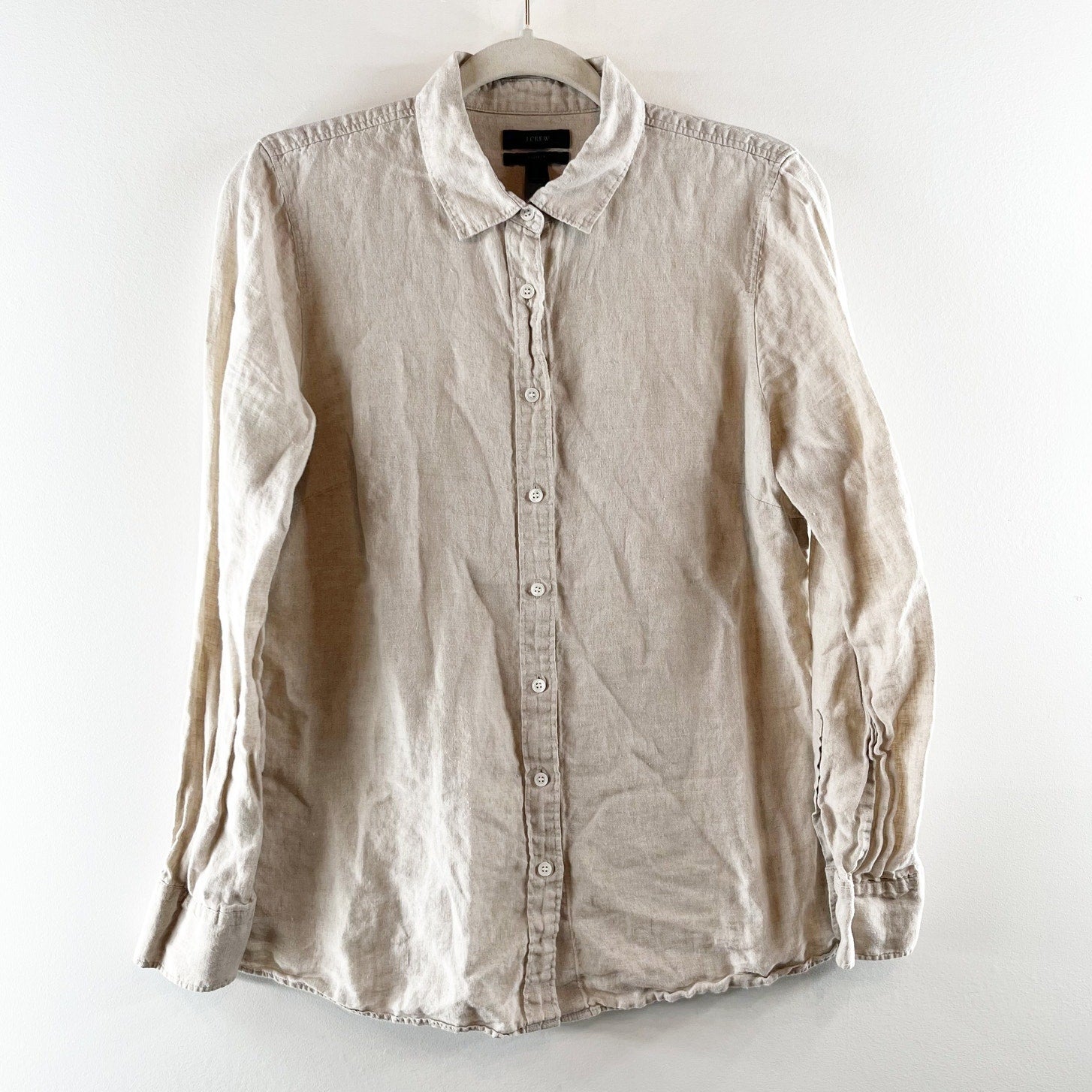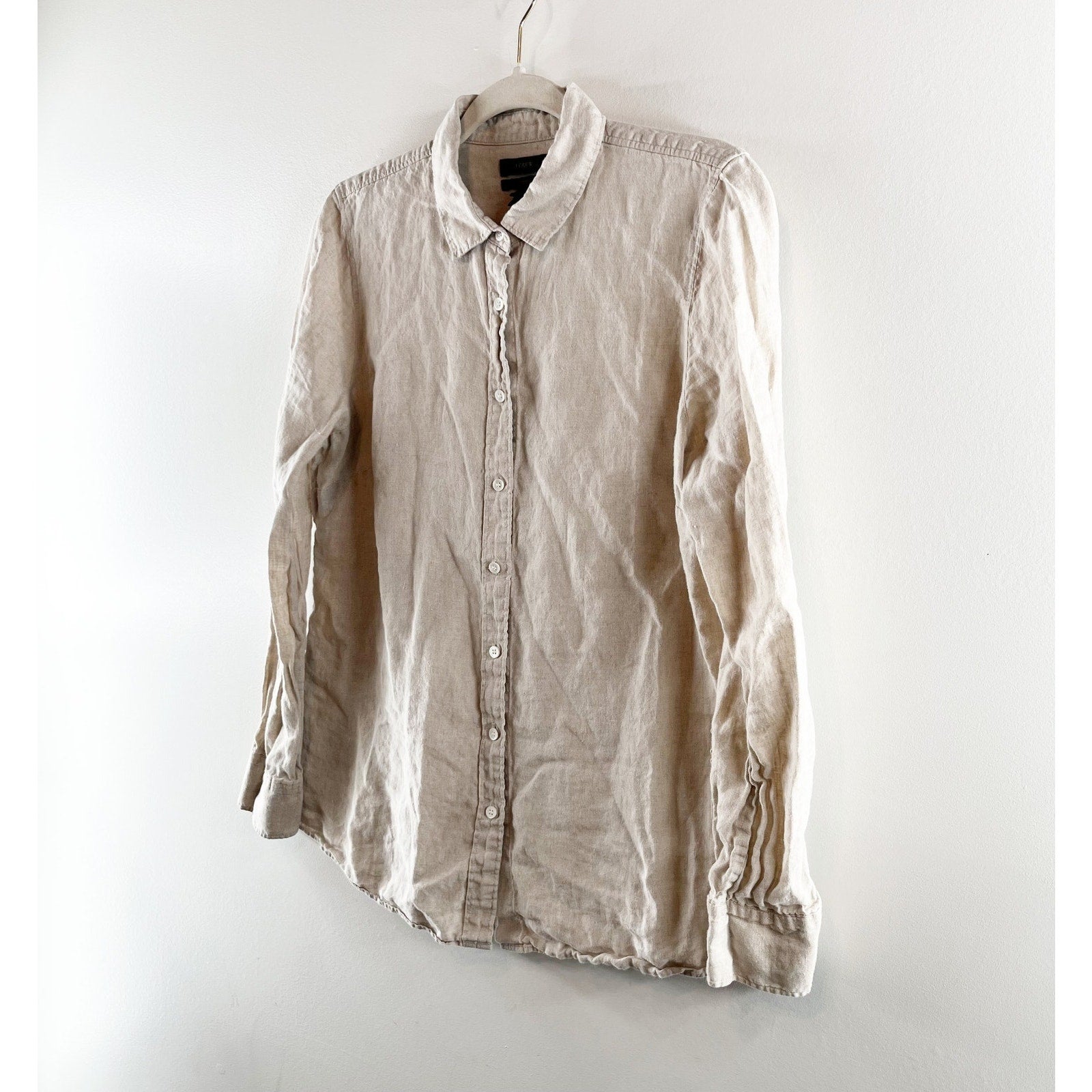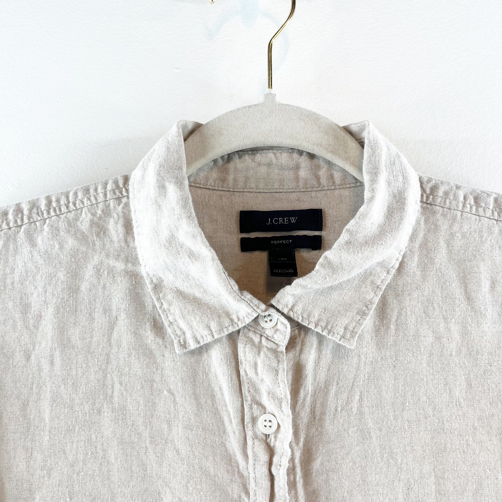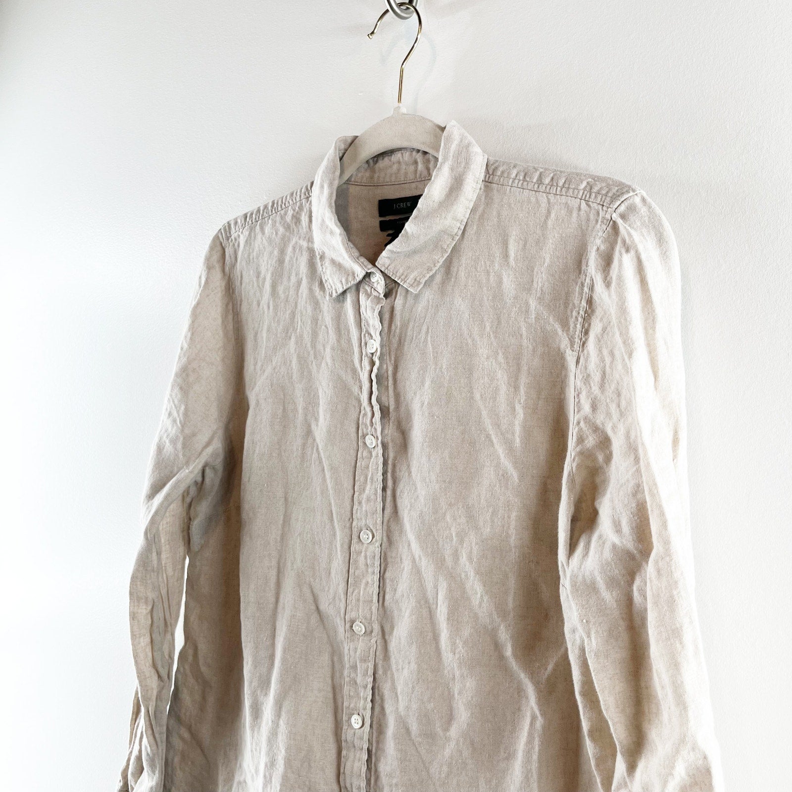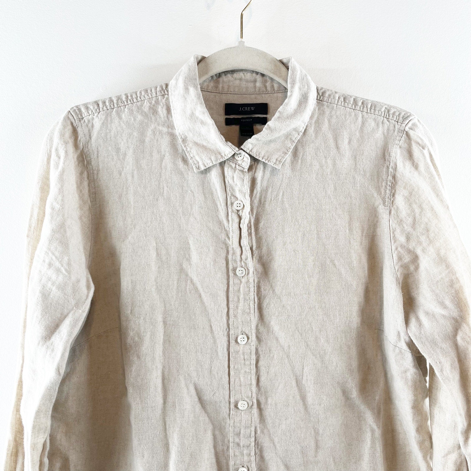 J. Crew Perfect 100% Linen Long Sleeve Collared Button-Up Shirt Beige 12 Petite