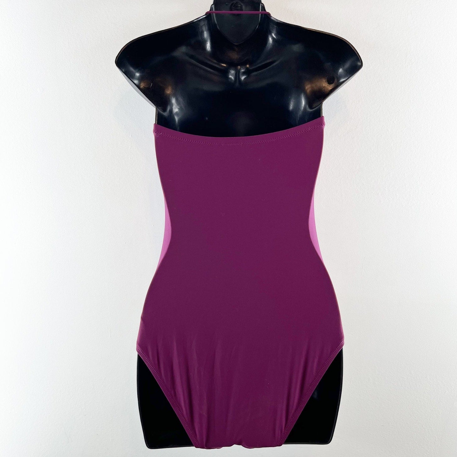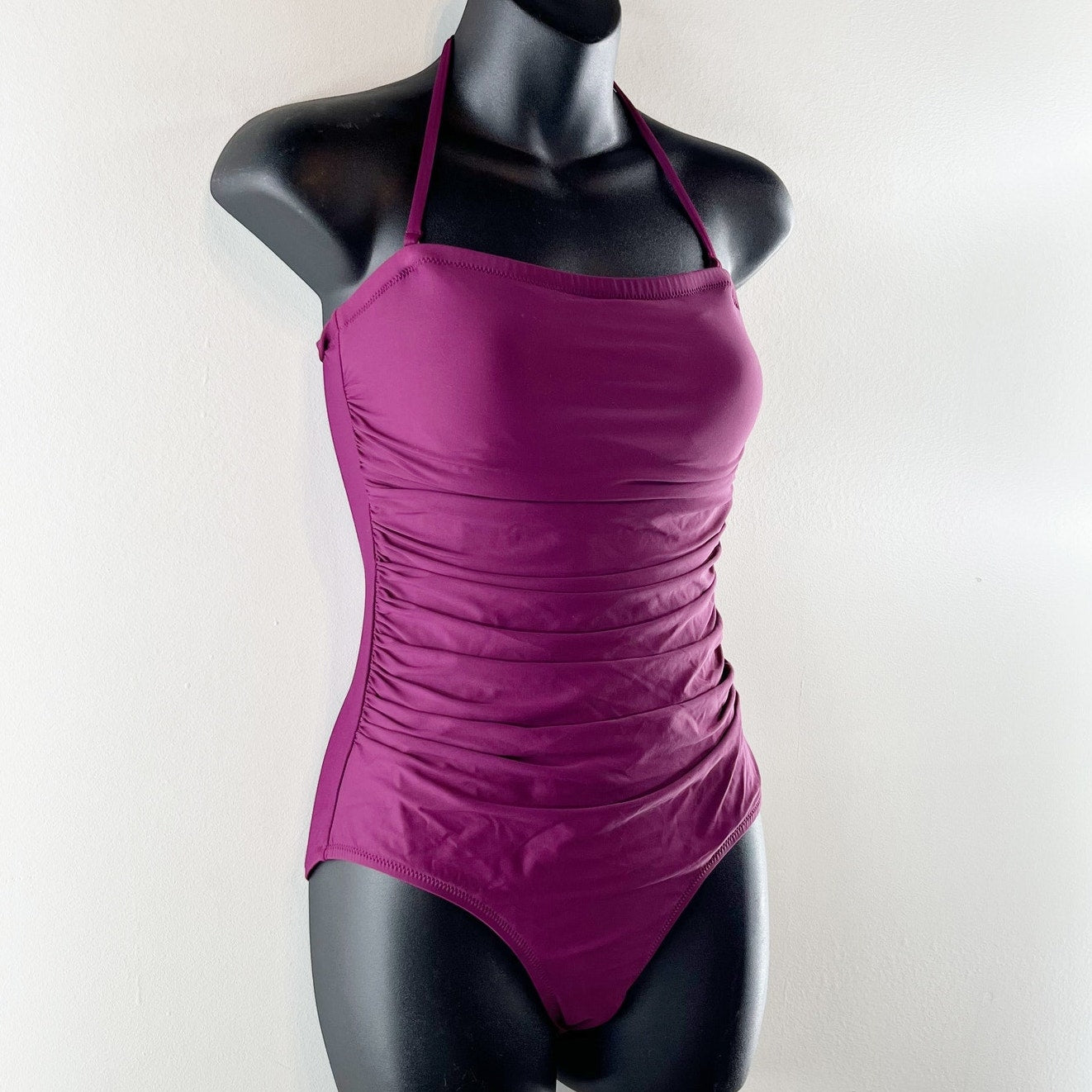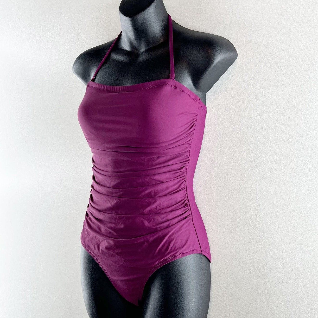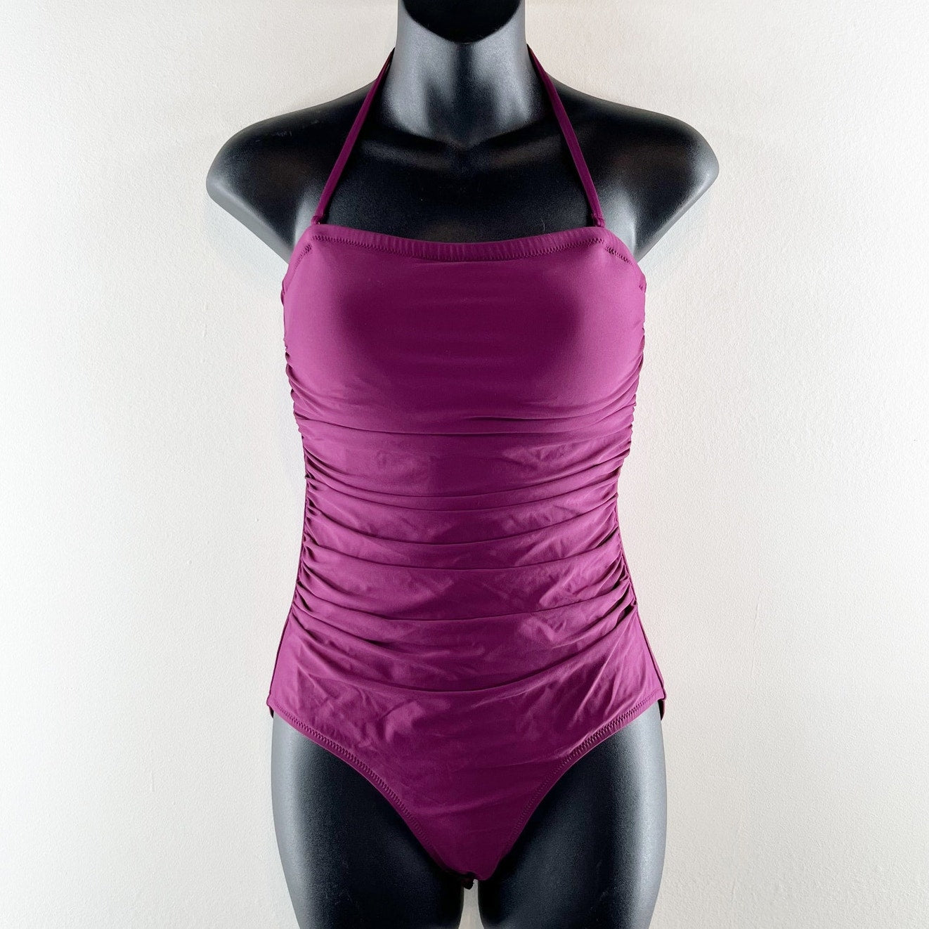J. Crew Ruched Bandeau Halter Strapless One Piece Swimsuit Purple 4