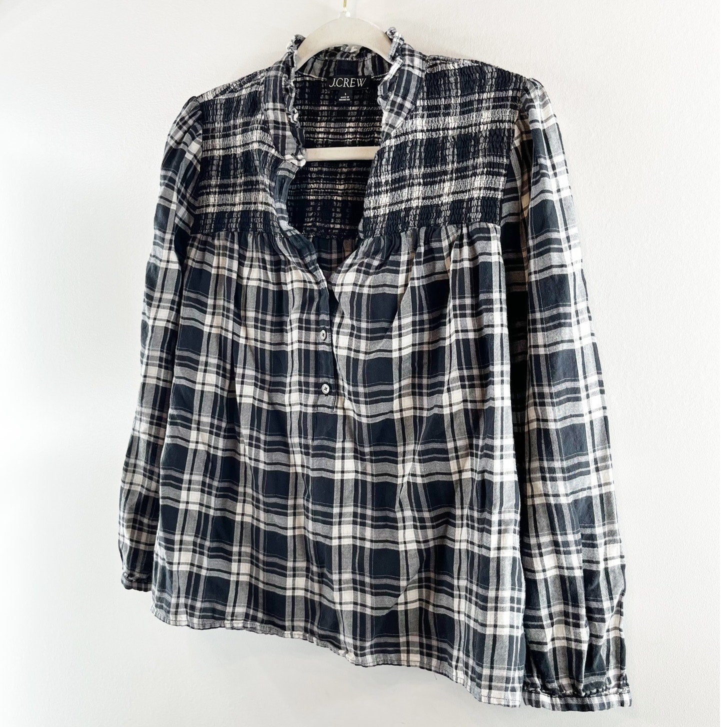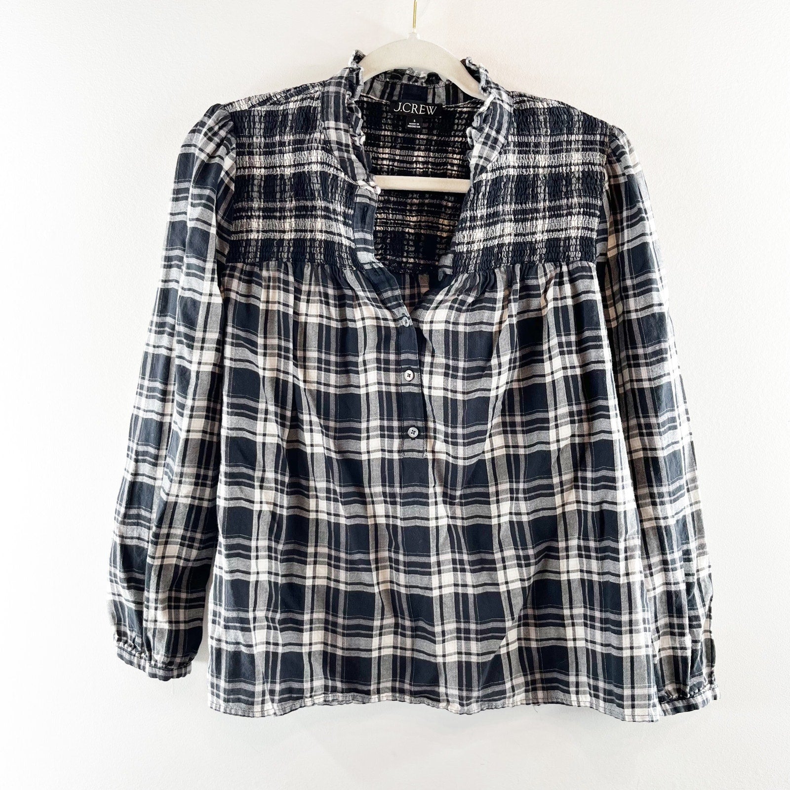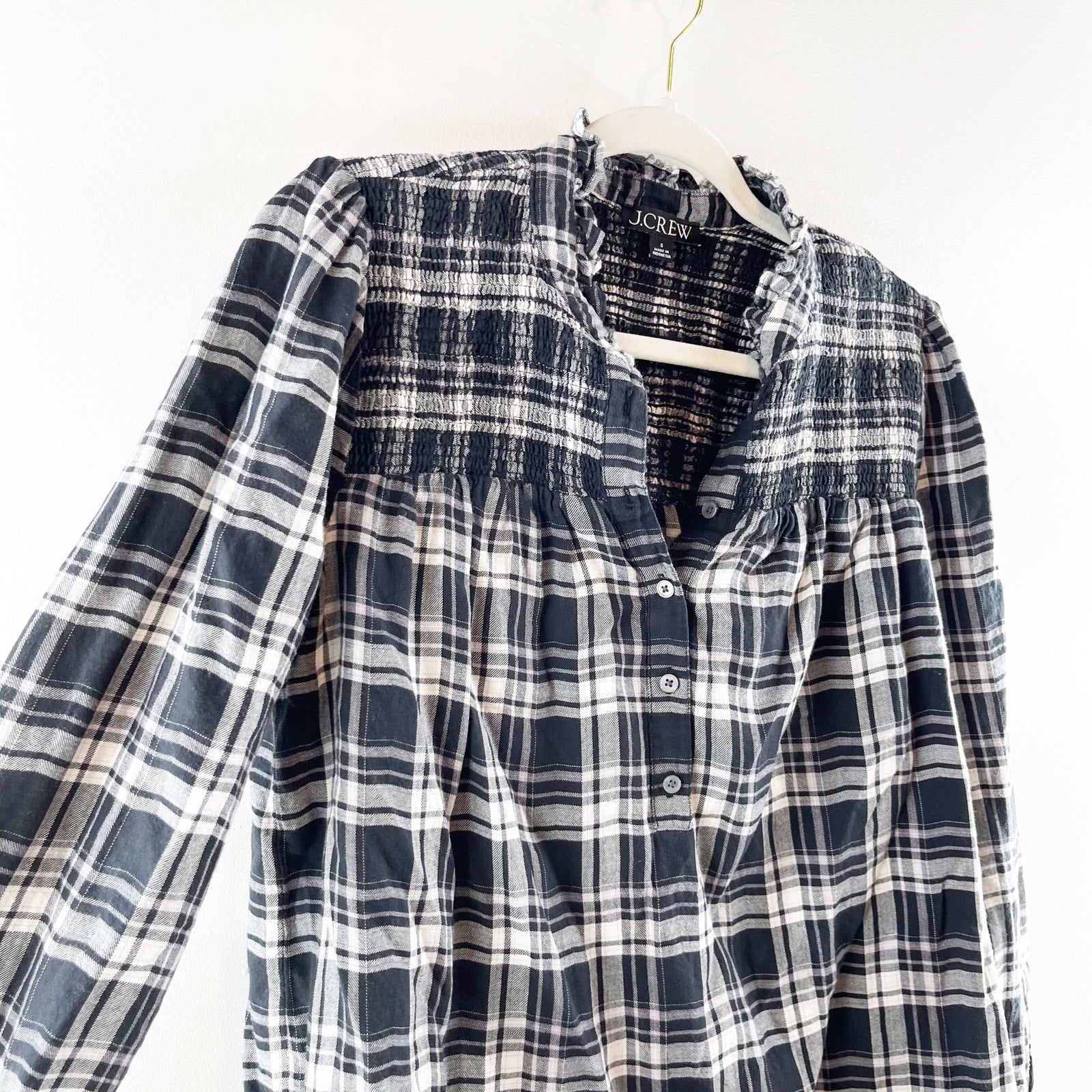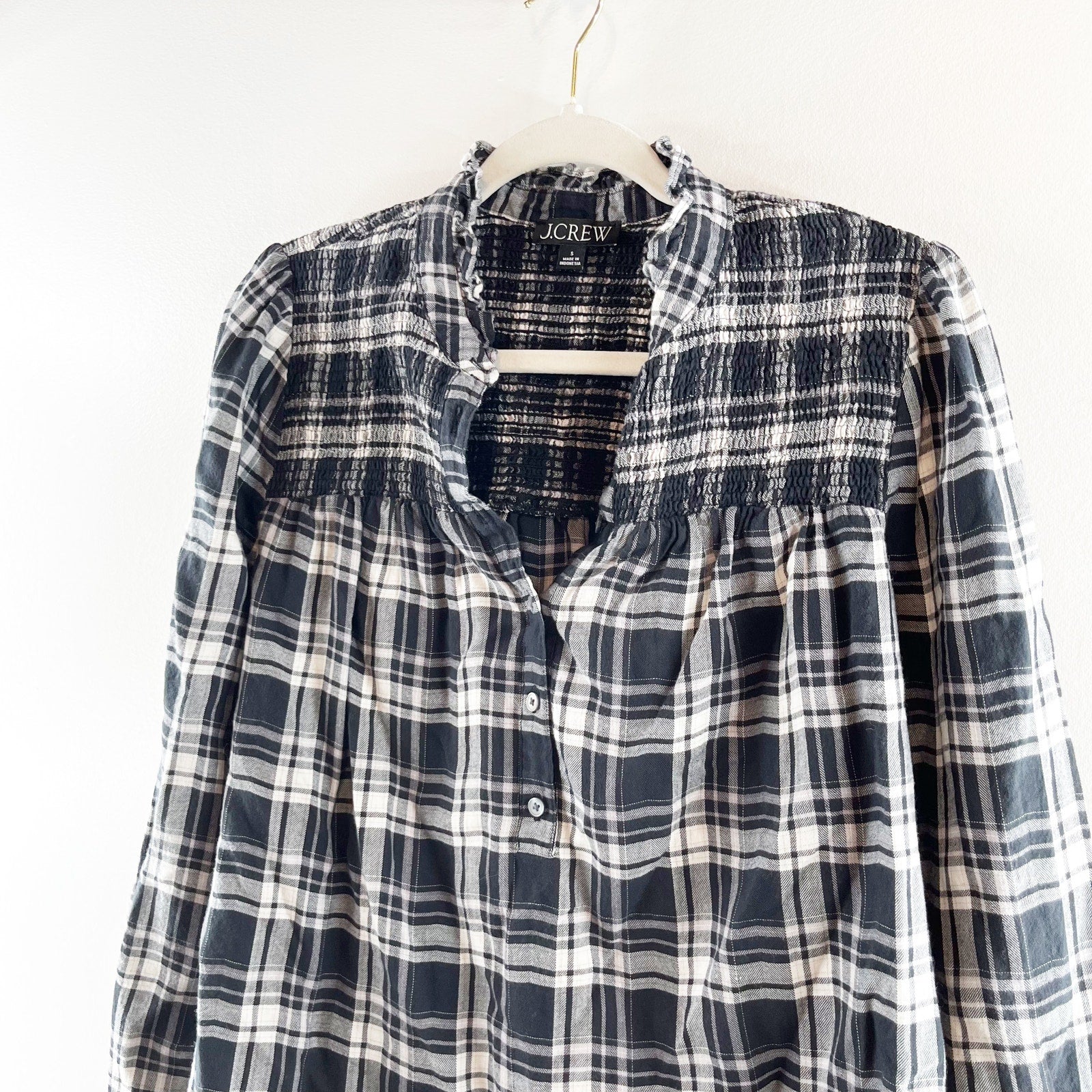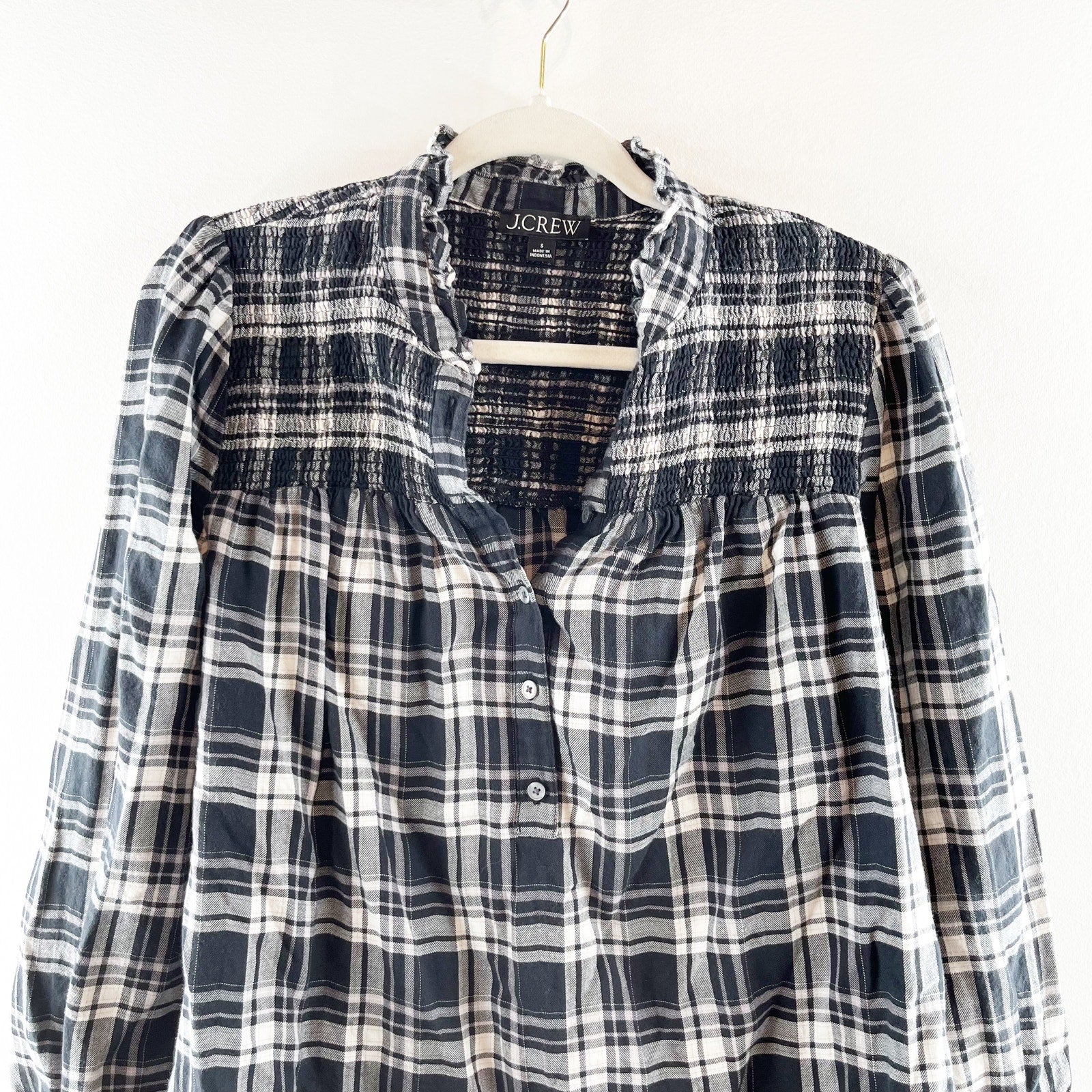 J. Crew Ruffleneck Flannel Popover Blouse Top Berkshire Plaid Black White Small