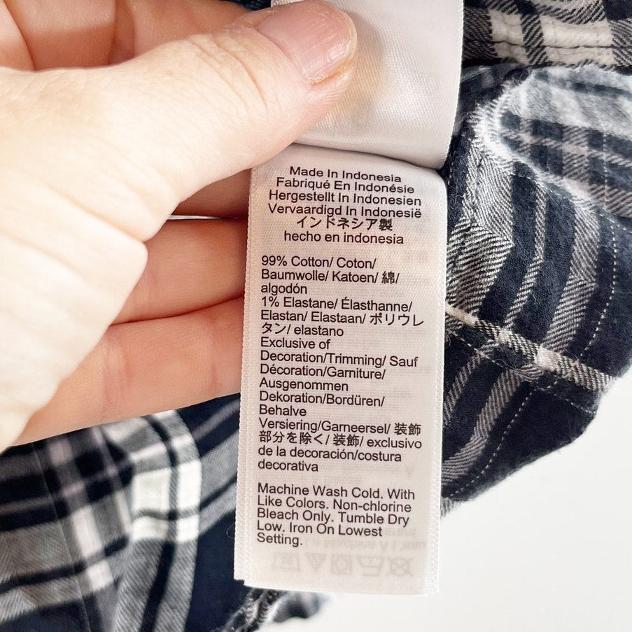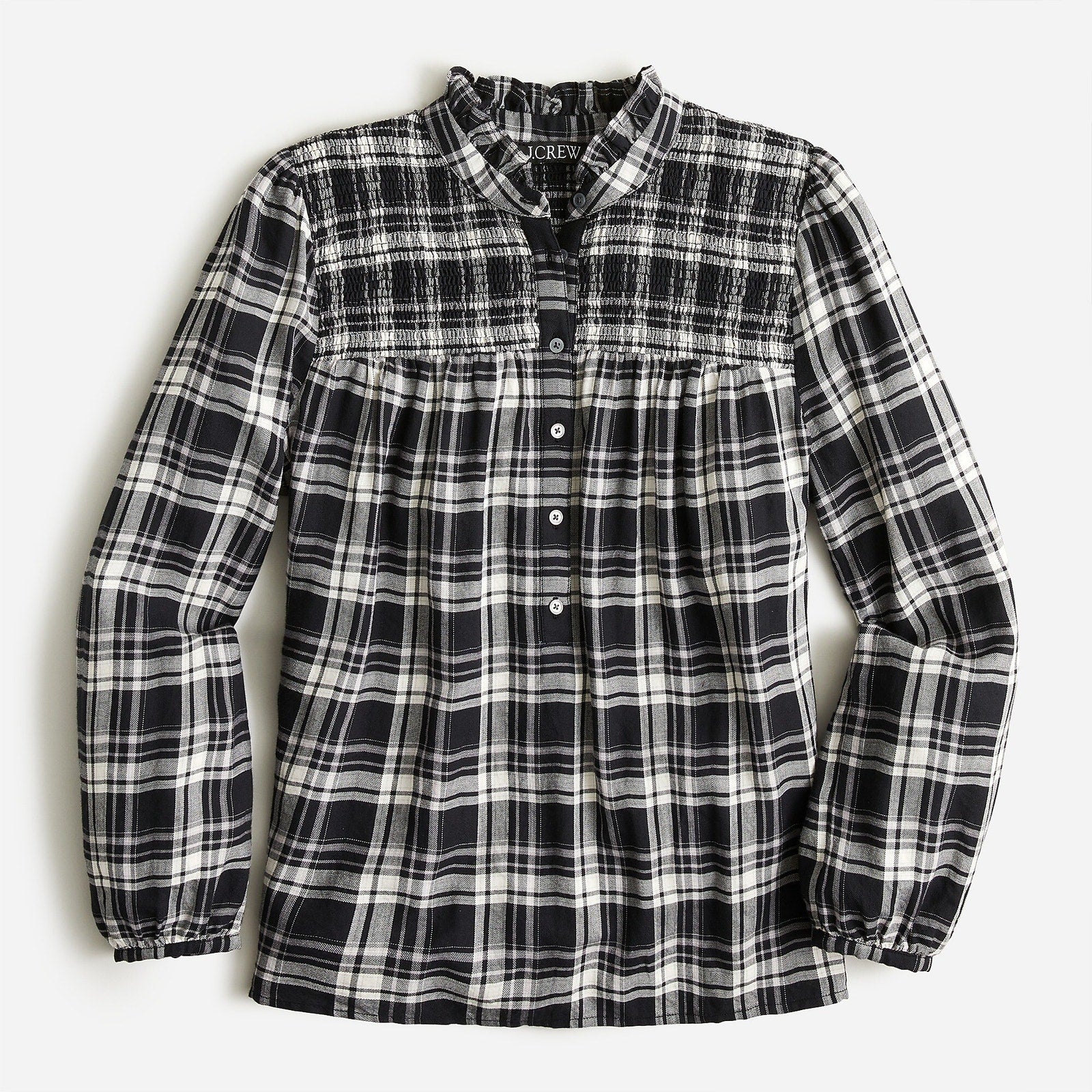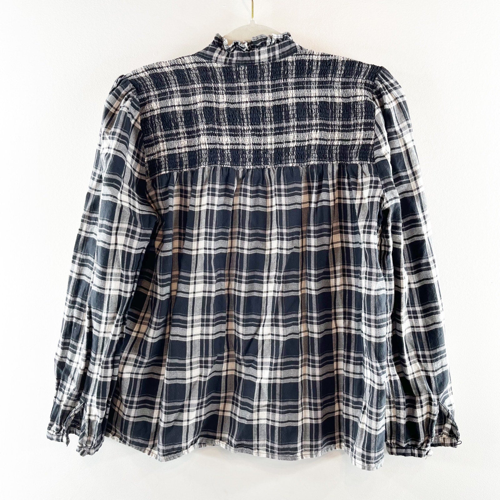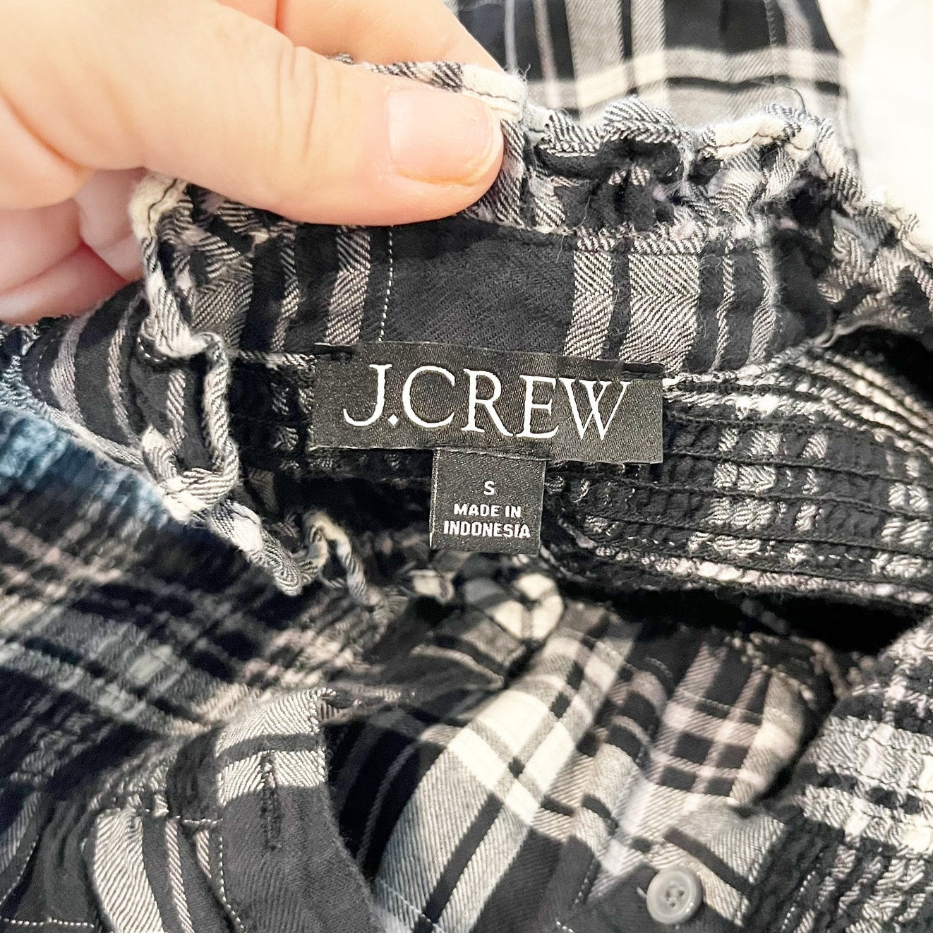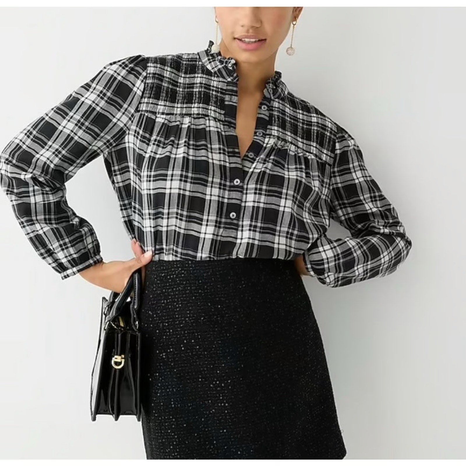 J. Crew Ruffleneck Flannel Popover Blouse Top Berkshire Plaid Black White Small