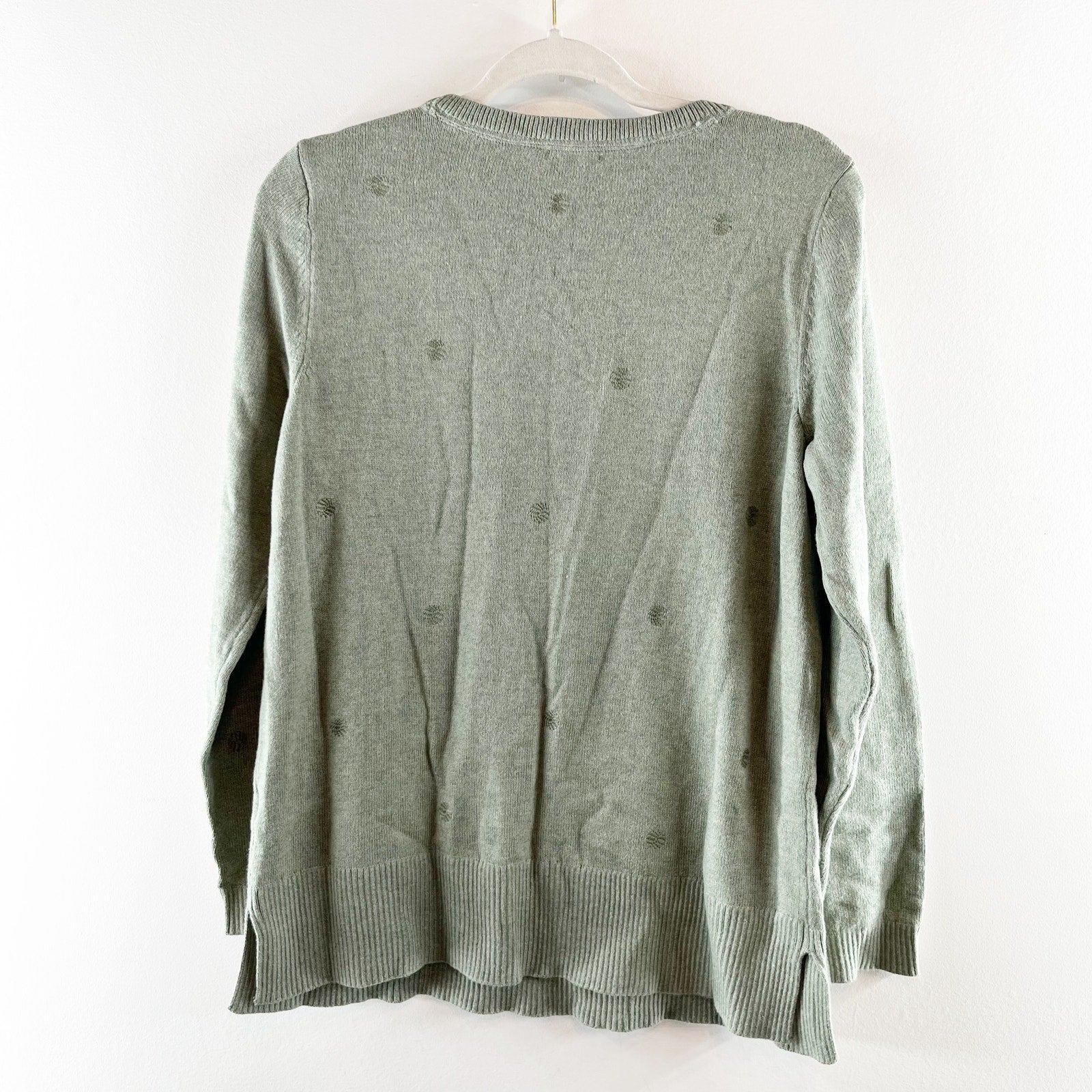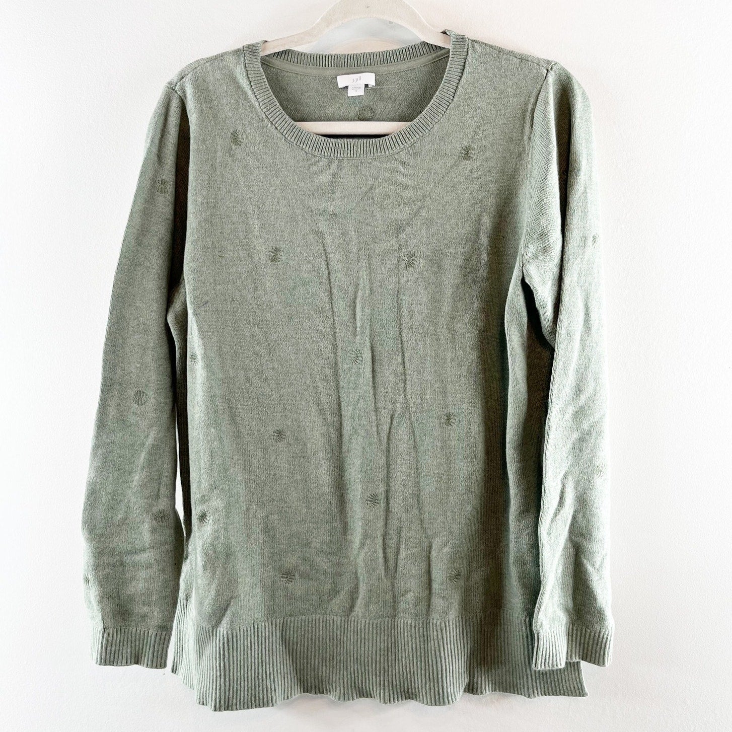 J. Jill Crewneck Dot Embroidered Sweater Seedling Heather Green Small