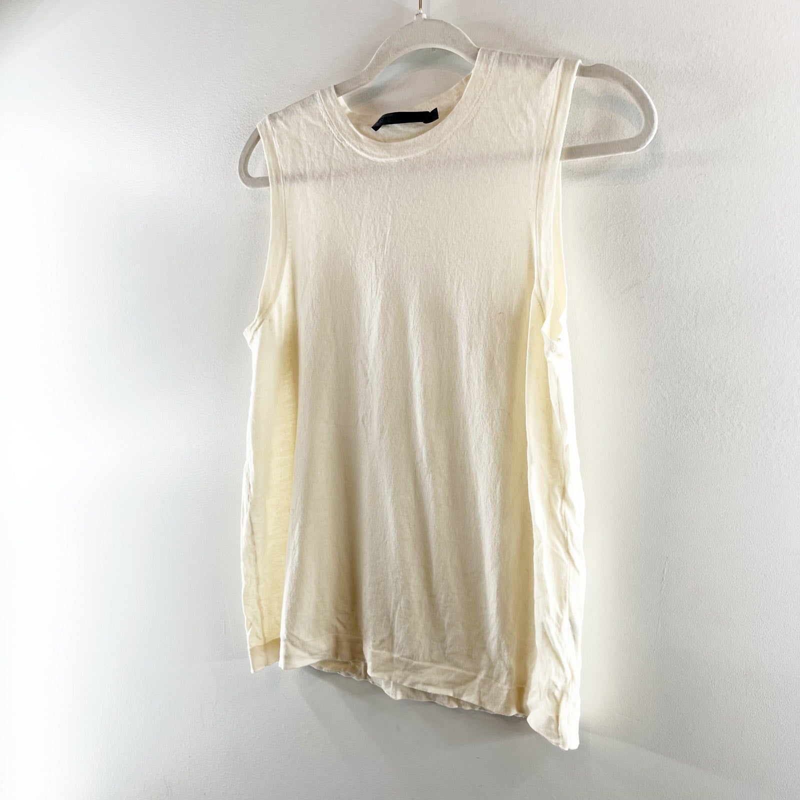 Jenni Kayne 100% Merino Wool Sleeveless Crew Neck Tank Top Cream Large