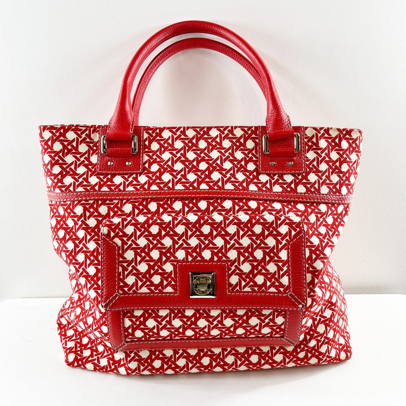Kate Spade Geo Print Large Tote Bag Purse Red White