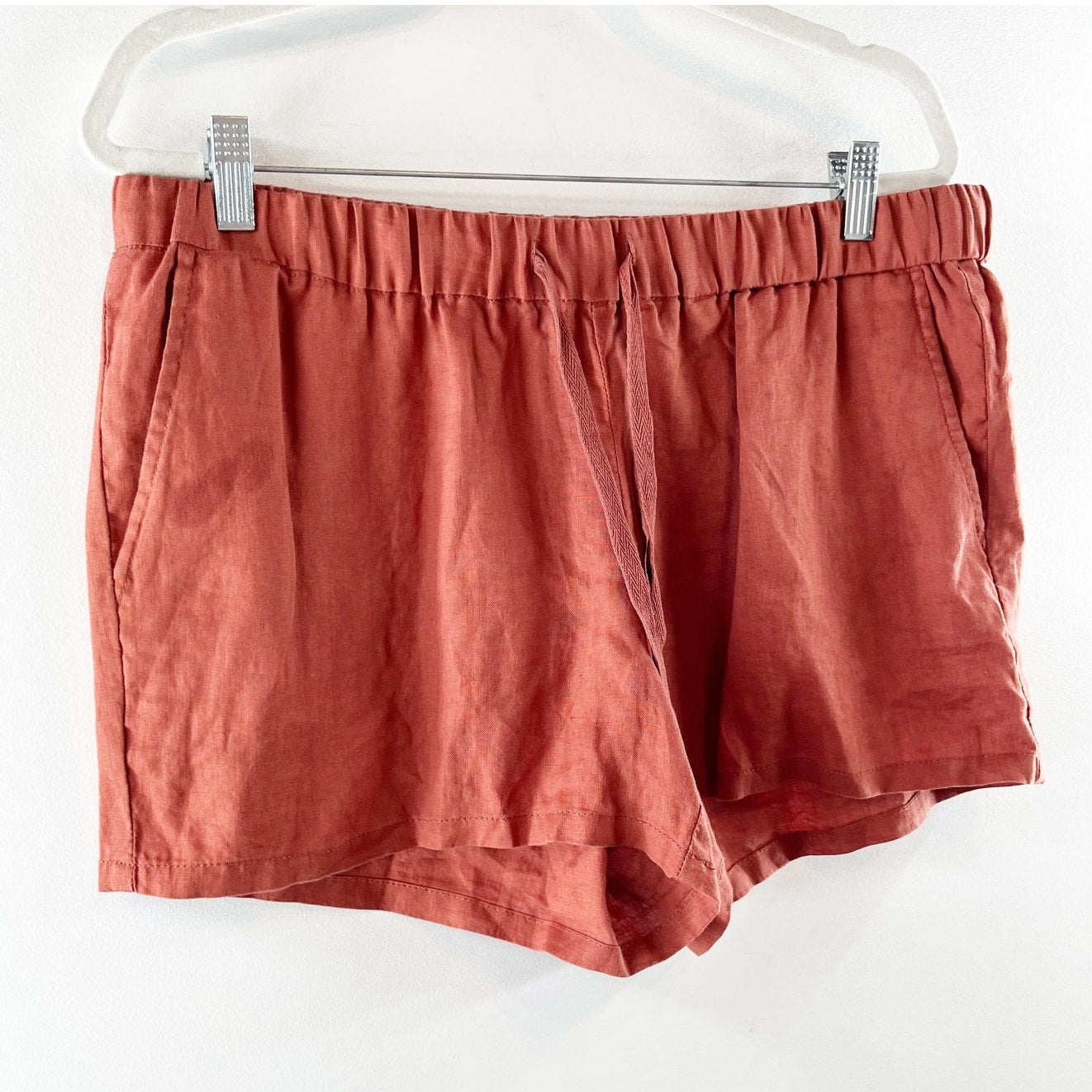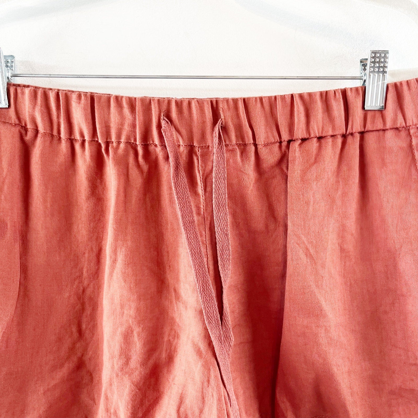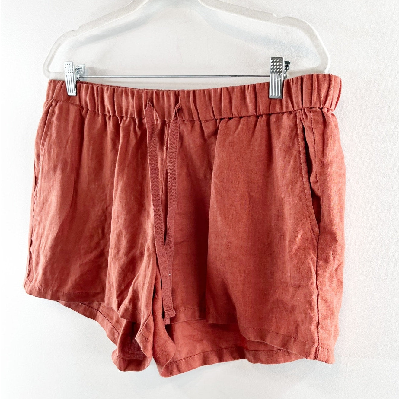 KUT From The Kloth Elastic Waist Terra Cotta 100% Linen Drawcord Shorts Red 14