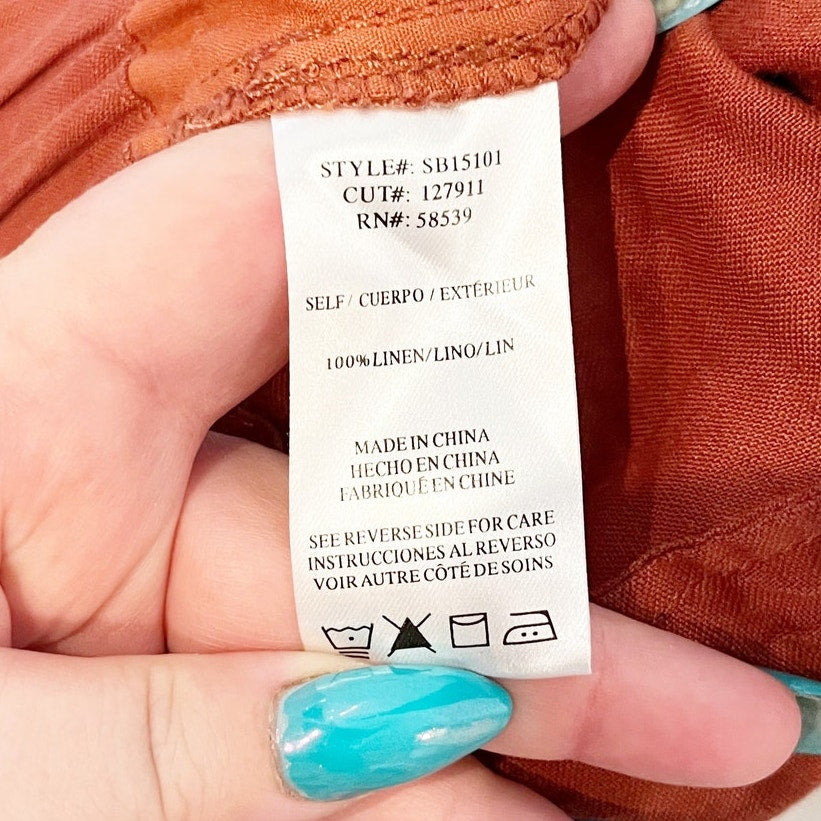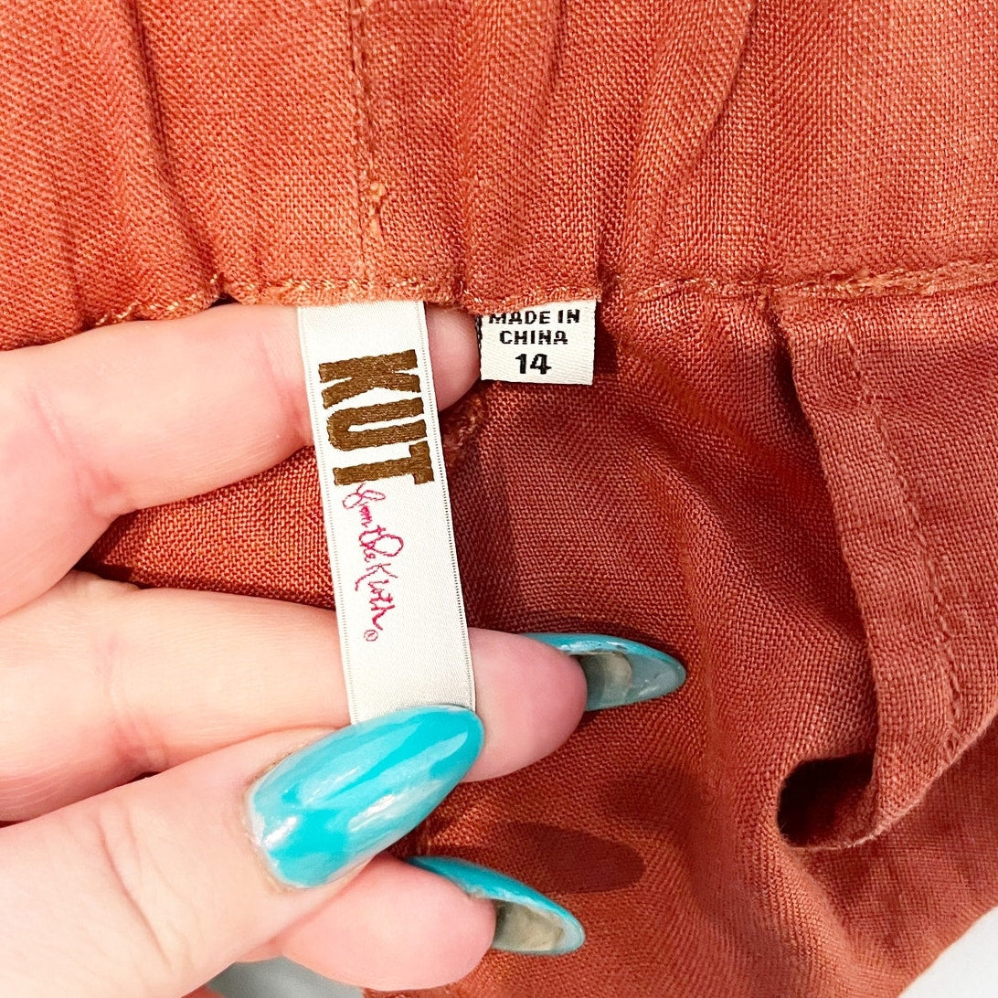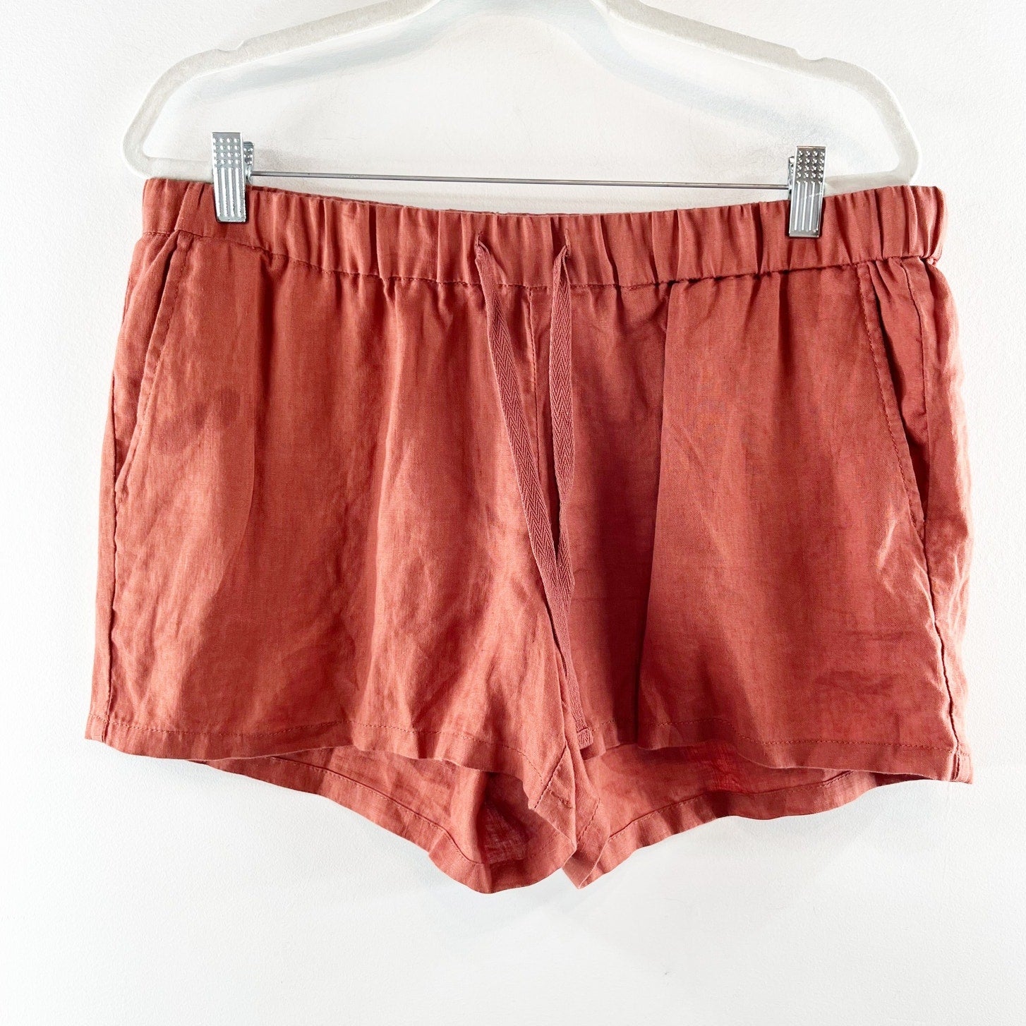 KUT From The Kloth Elastic Waist Terra Cotta 100% Linen Drawcord Shorts Red 14