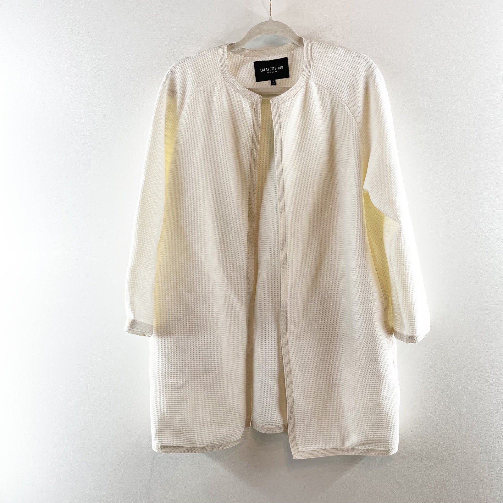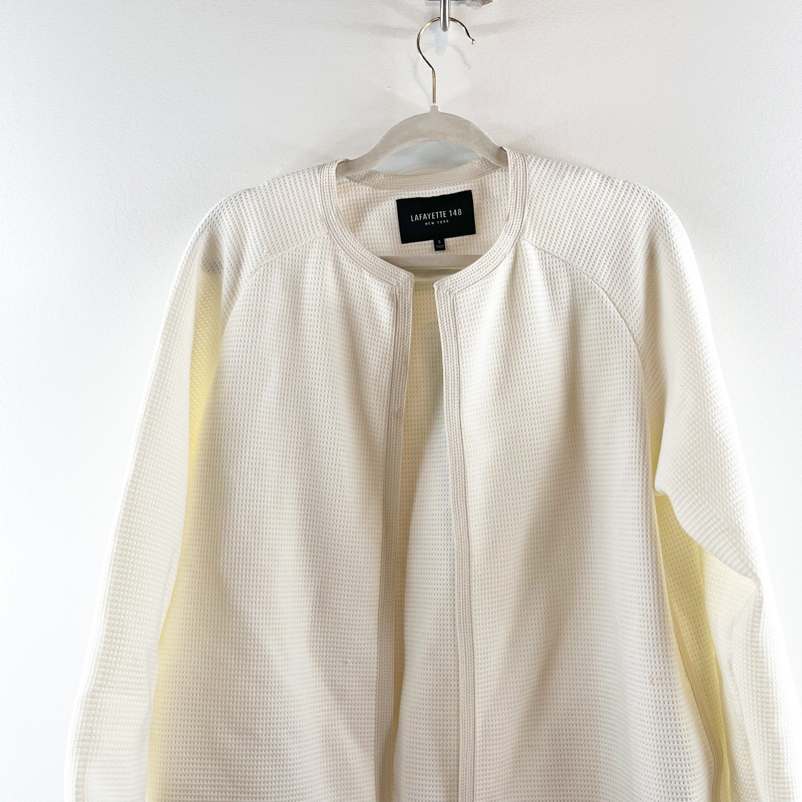 Lafayette 148 New York Long Sleeve Open Waffle Knit Jacket Blazer White Small