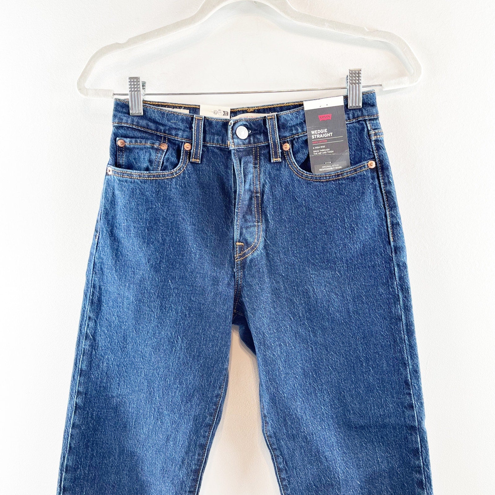 Levi's High Rise Button Fly Denim Wedgie Straight Jeans Salsa Dark Stone Blue 26