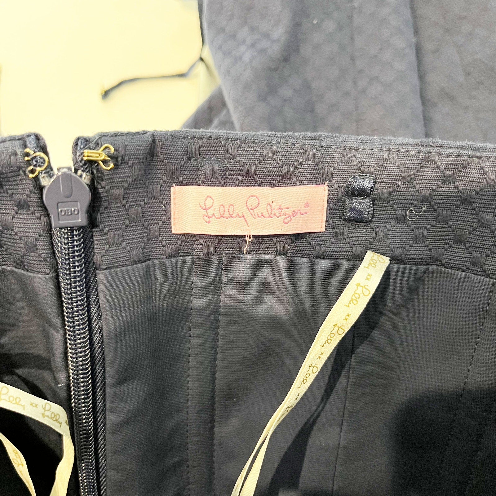 Lilly Pulitzer Demi Convertible Strapless Embroidered Mini Dress Navy Blue Gold