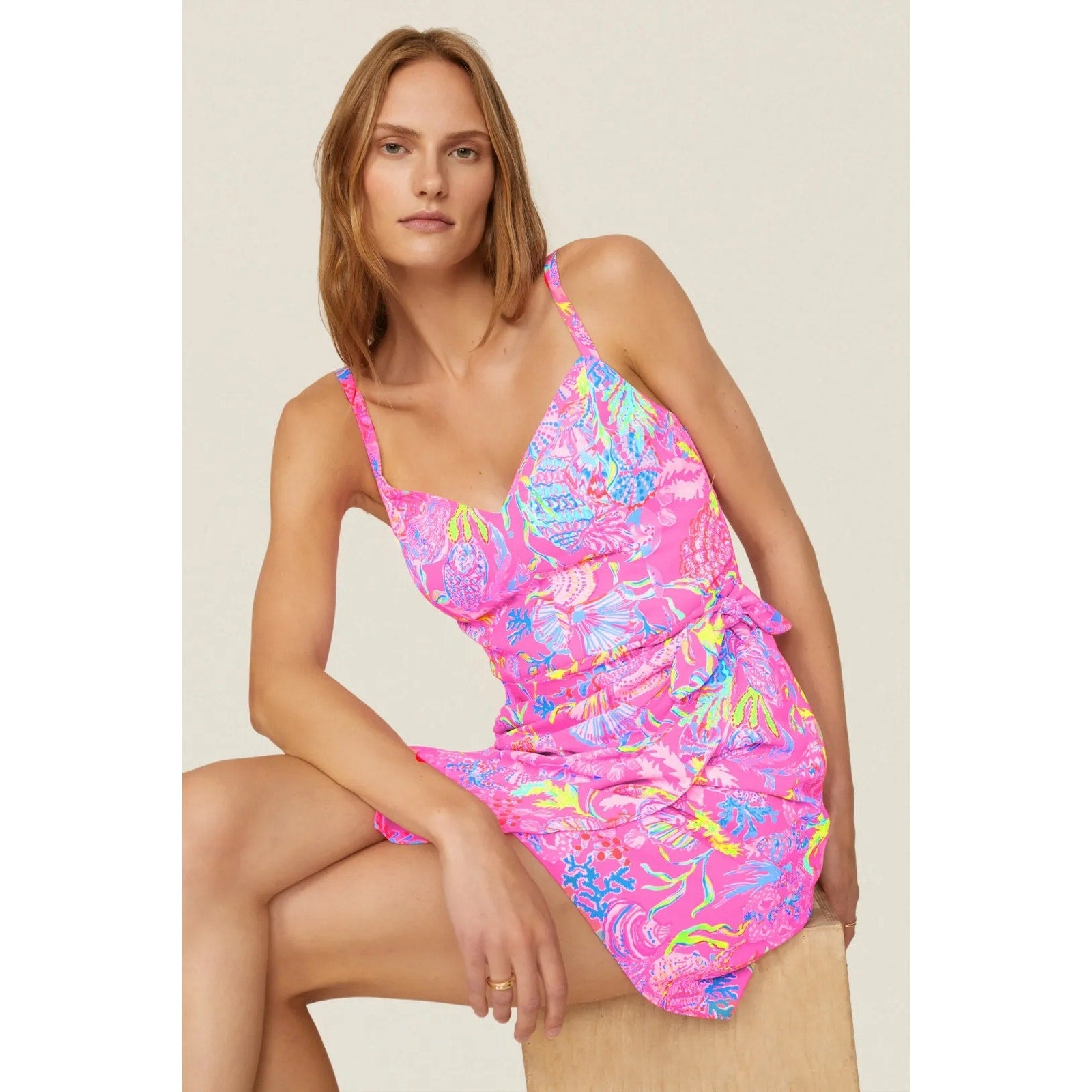 Lilly Pulitzer Scarlet Stretch Mini V Neck Faux Wrap Dress Pink 8