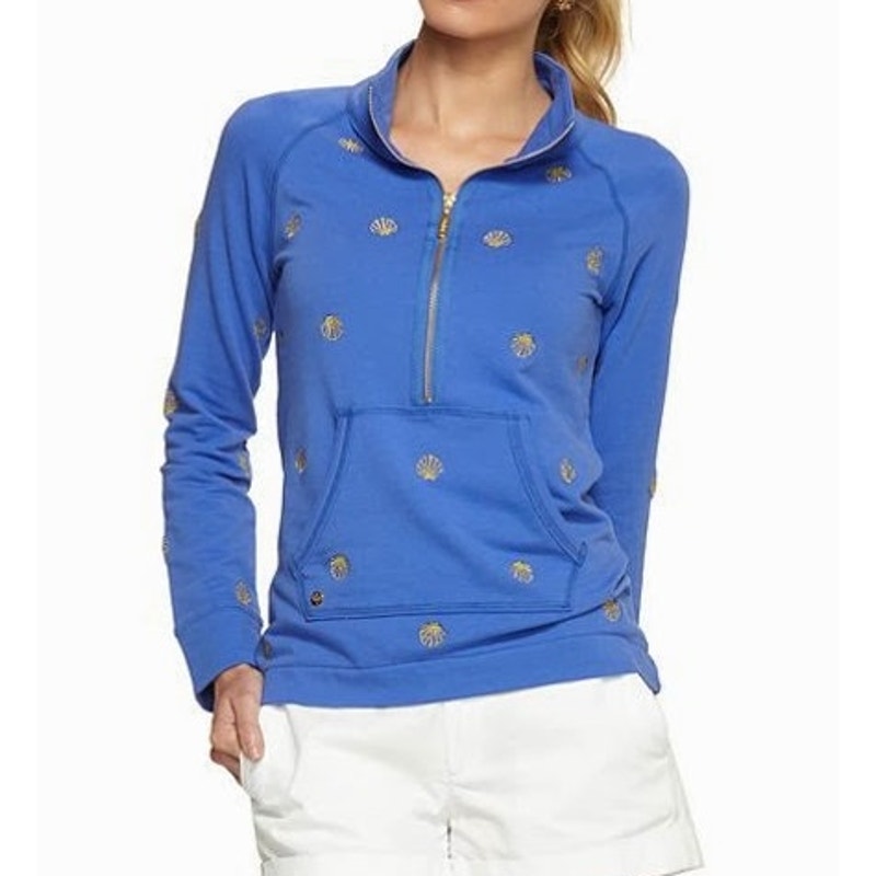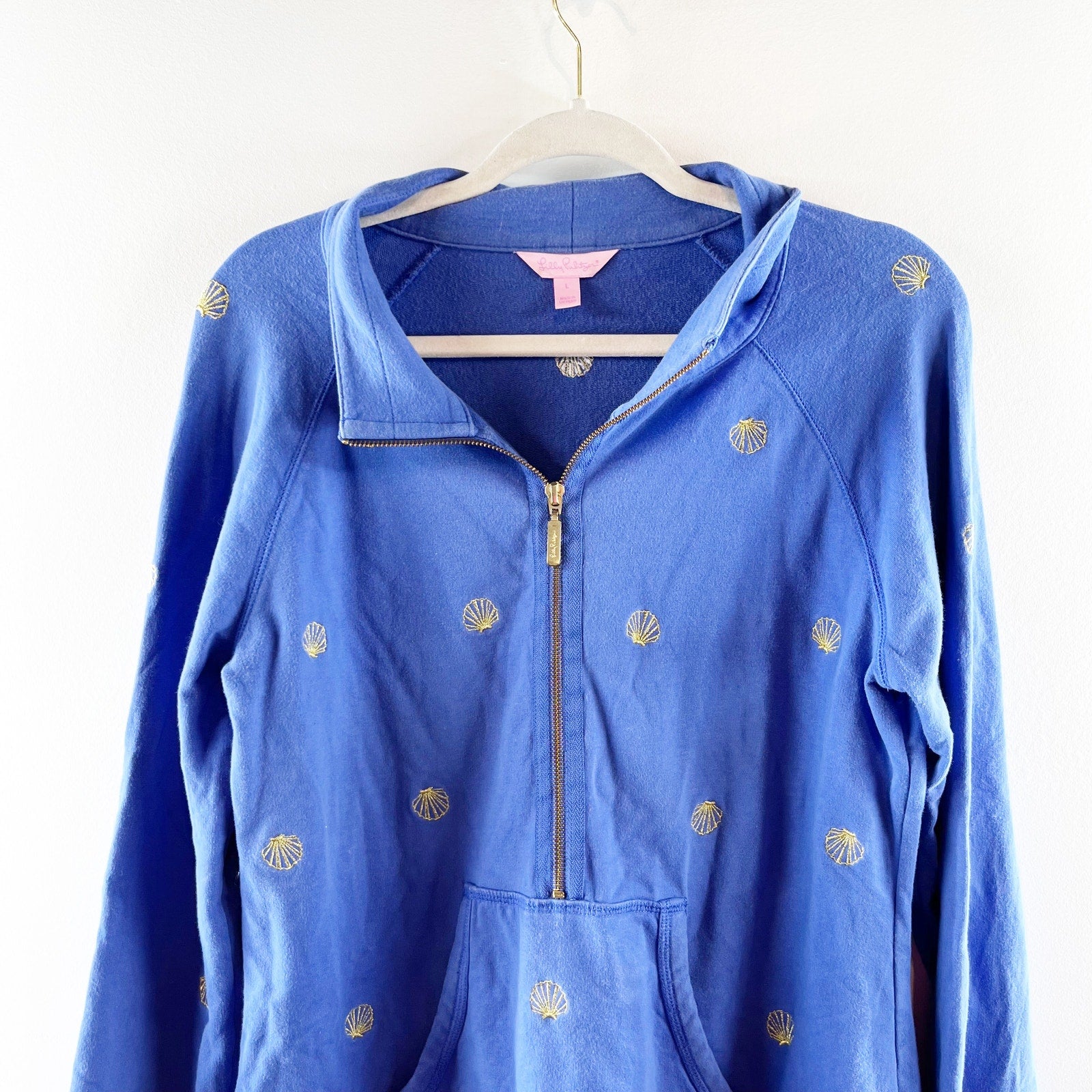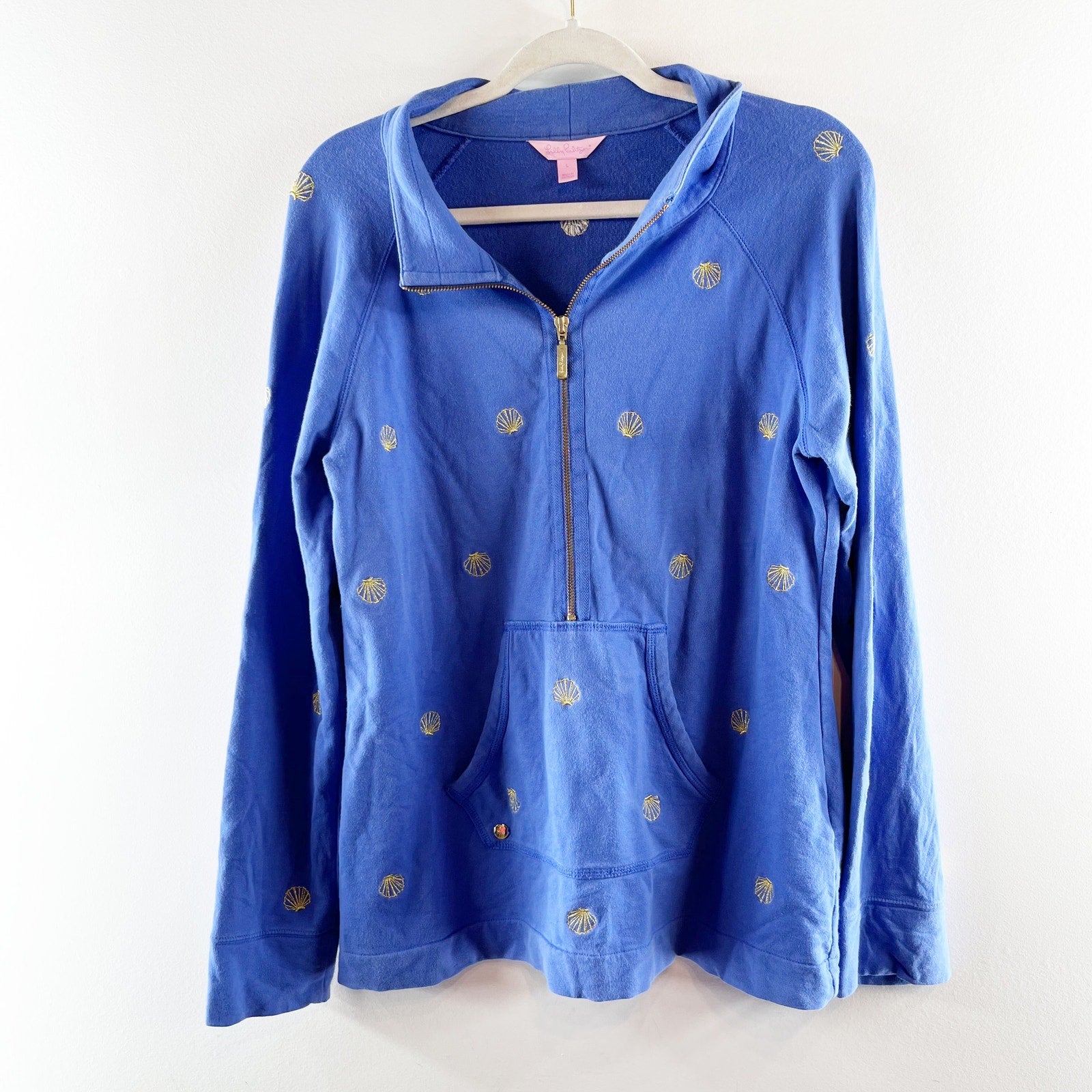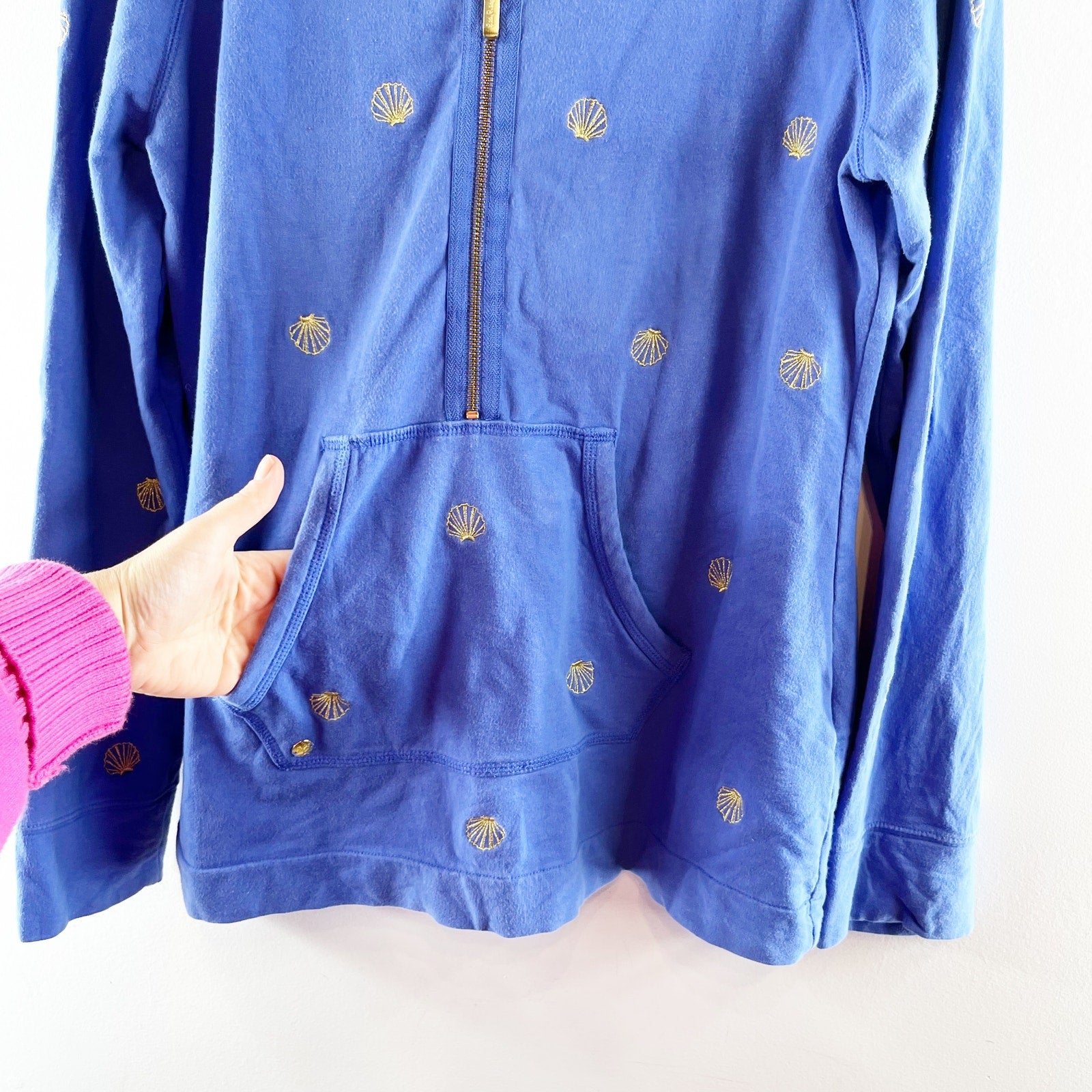 Lilly Pulitzer Skipper 1/2 Zip Seashell Embroidered Popover Sweatshirt Blue L