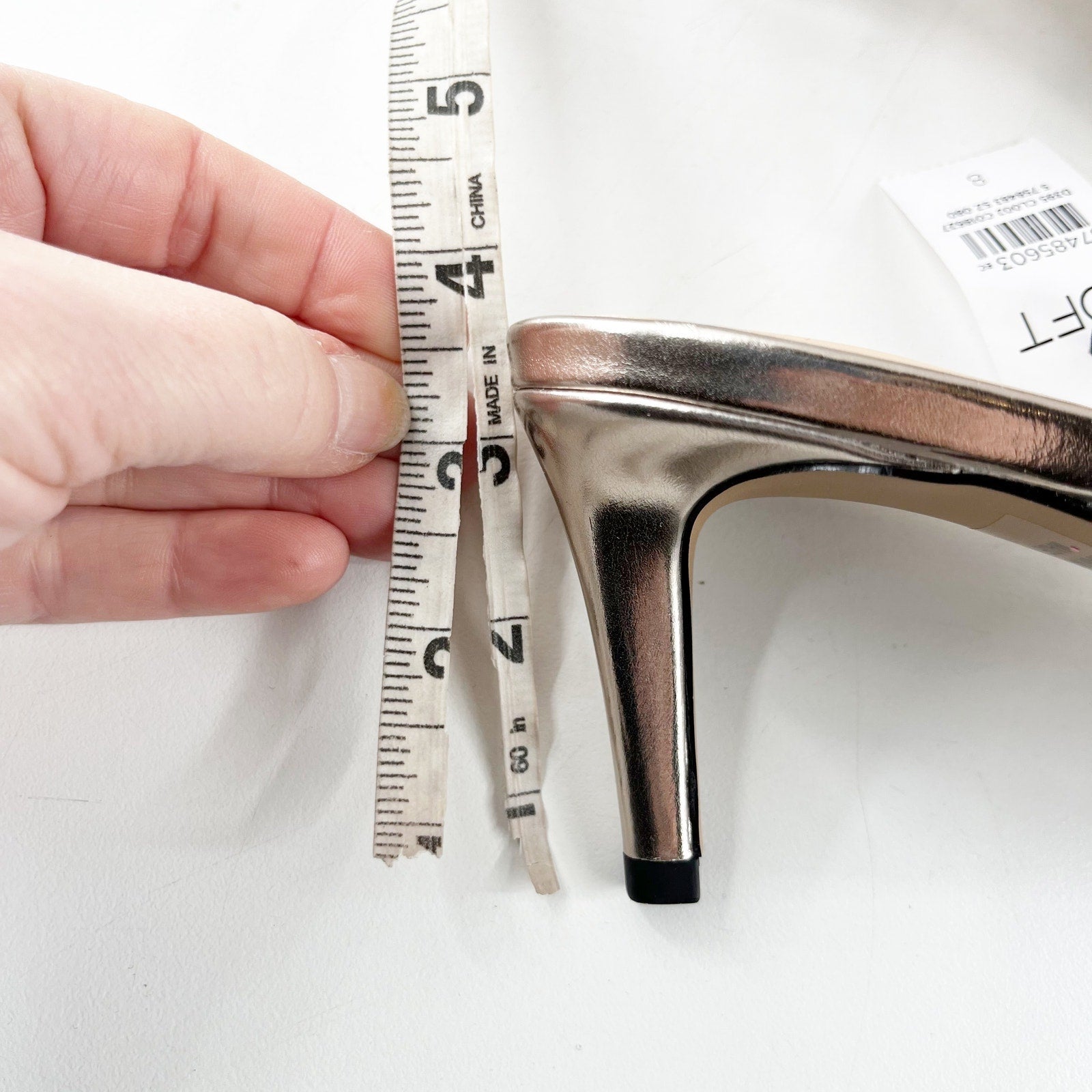 LOFT Bow Sparkle Holiday Slip On Square Toe Mule Kitten Heel Sandals Gold 8