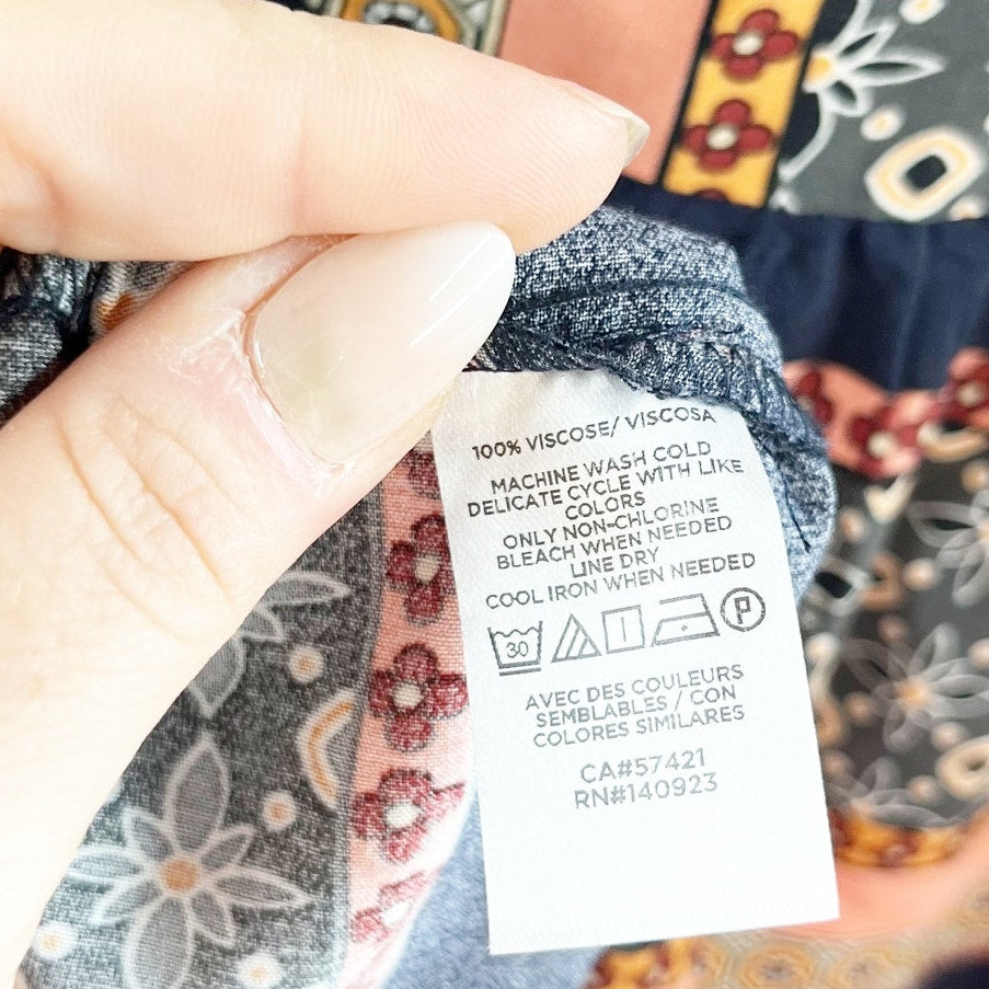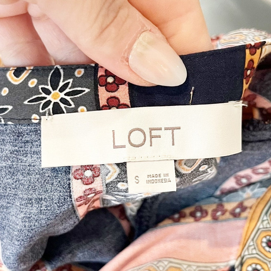LOFT Foulard Long Sleeve Striped Tunic Mini Boho Dress Blue Orange Small