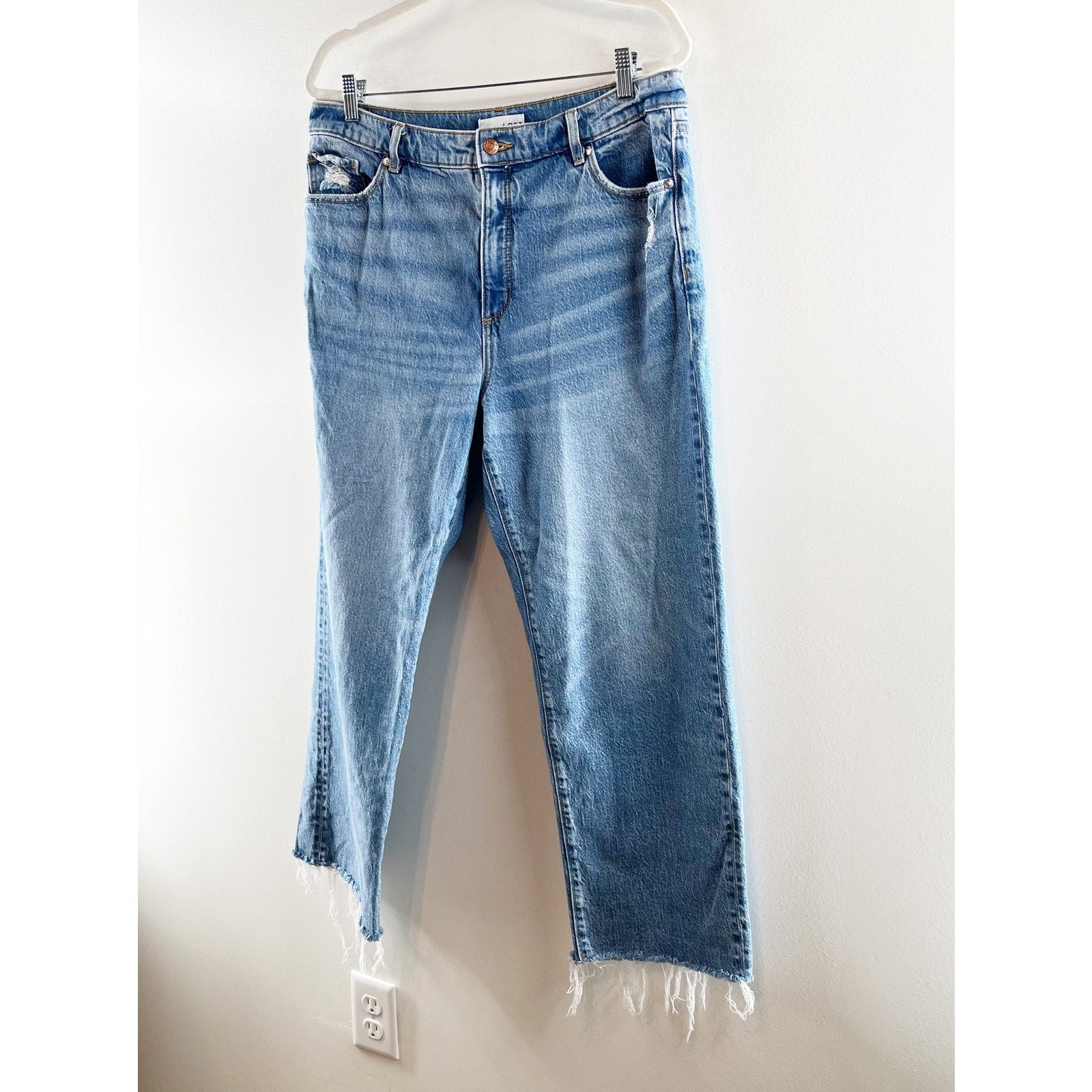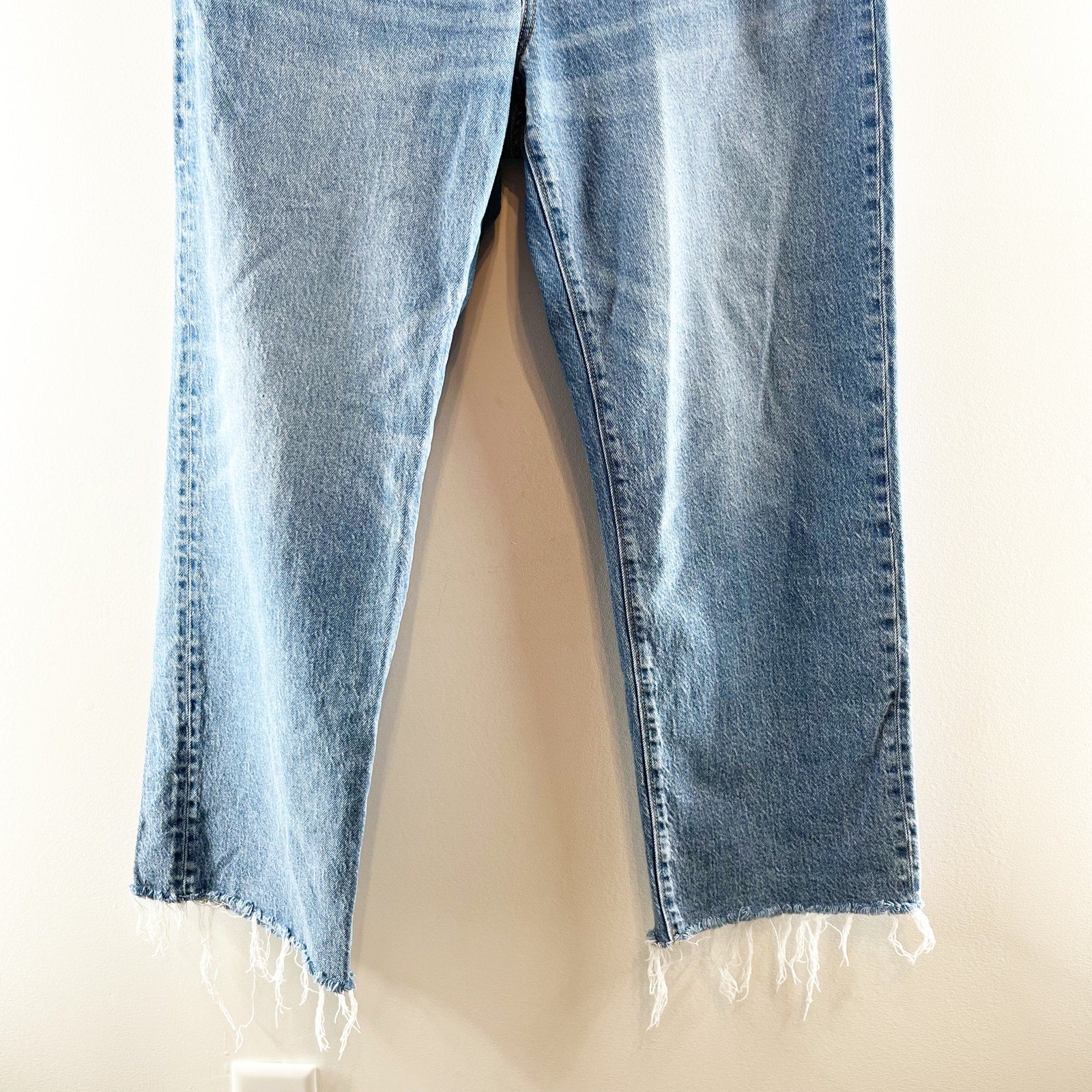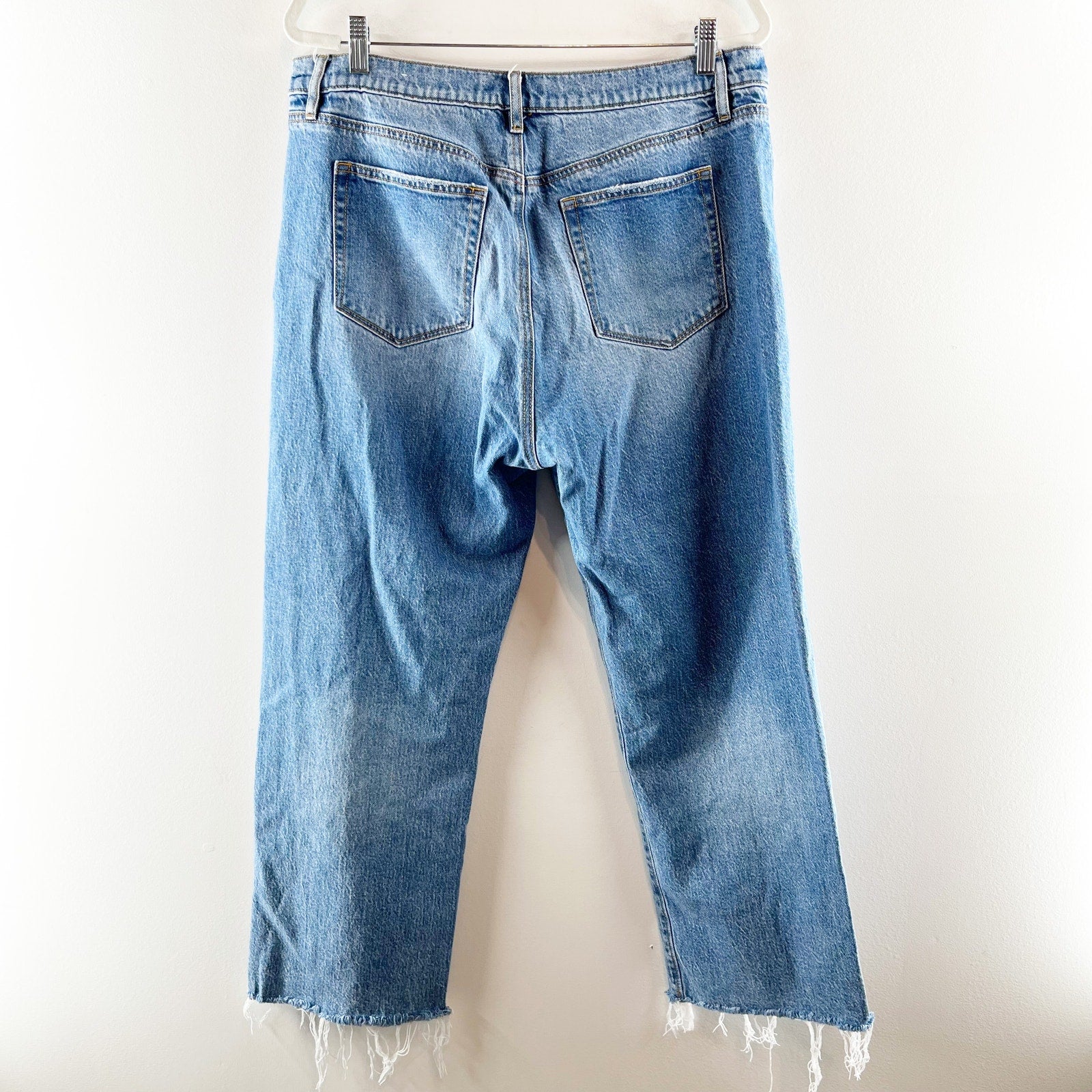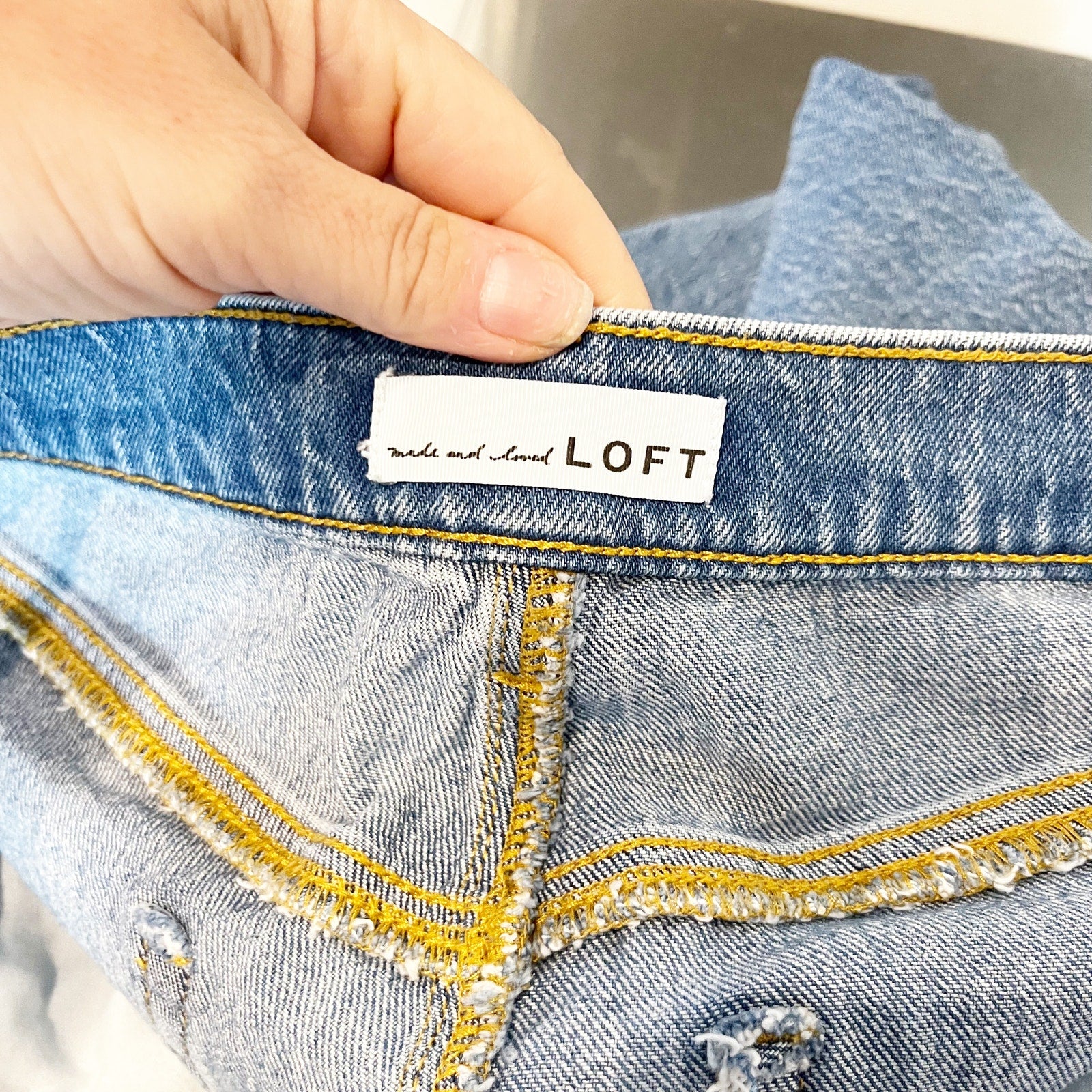 LOFT High Rise Straight Leg Raw Cut Hem Jeans Blue 14 / 32