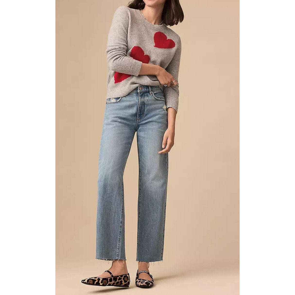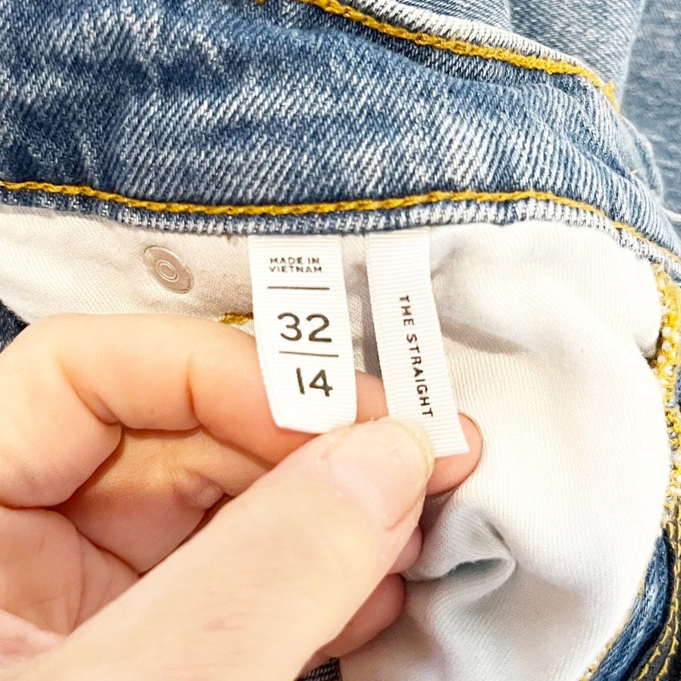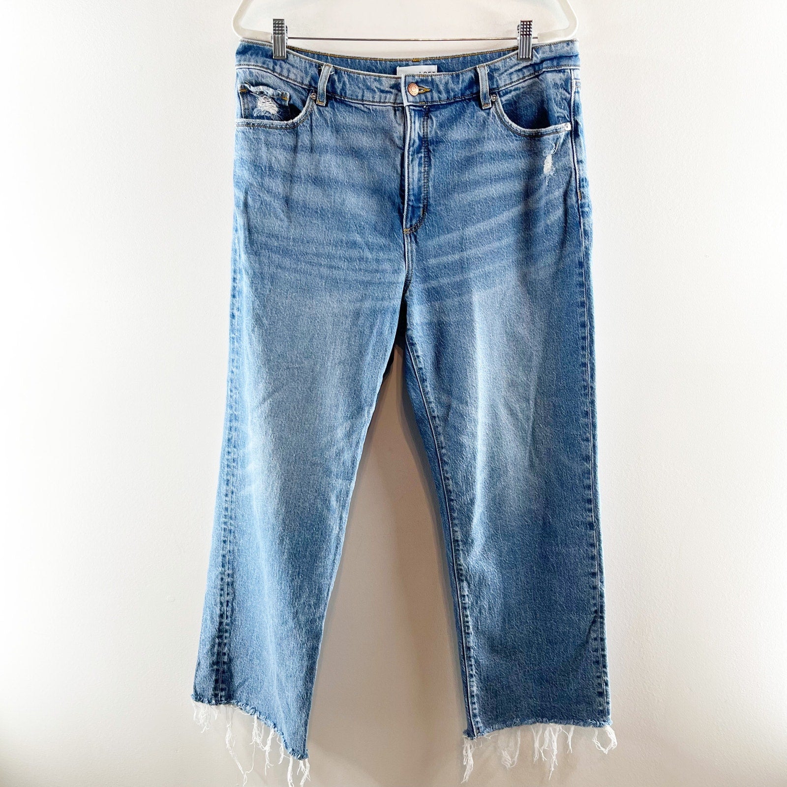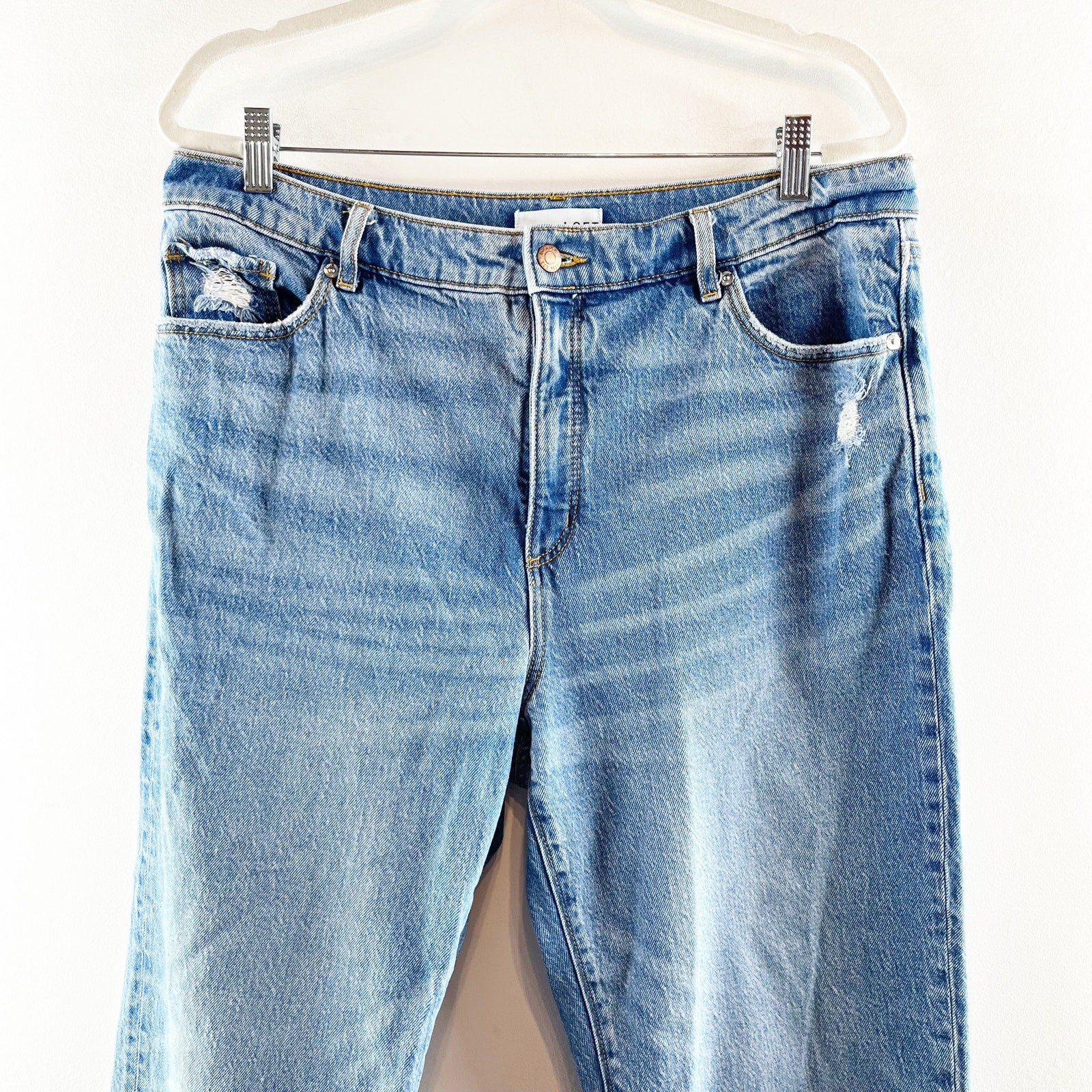 LOFT High Rise Straight Leg Raw Cut Hem Jeans Blue 14 / 32
