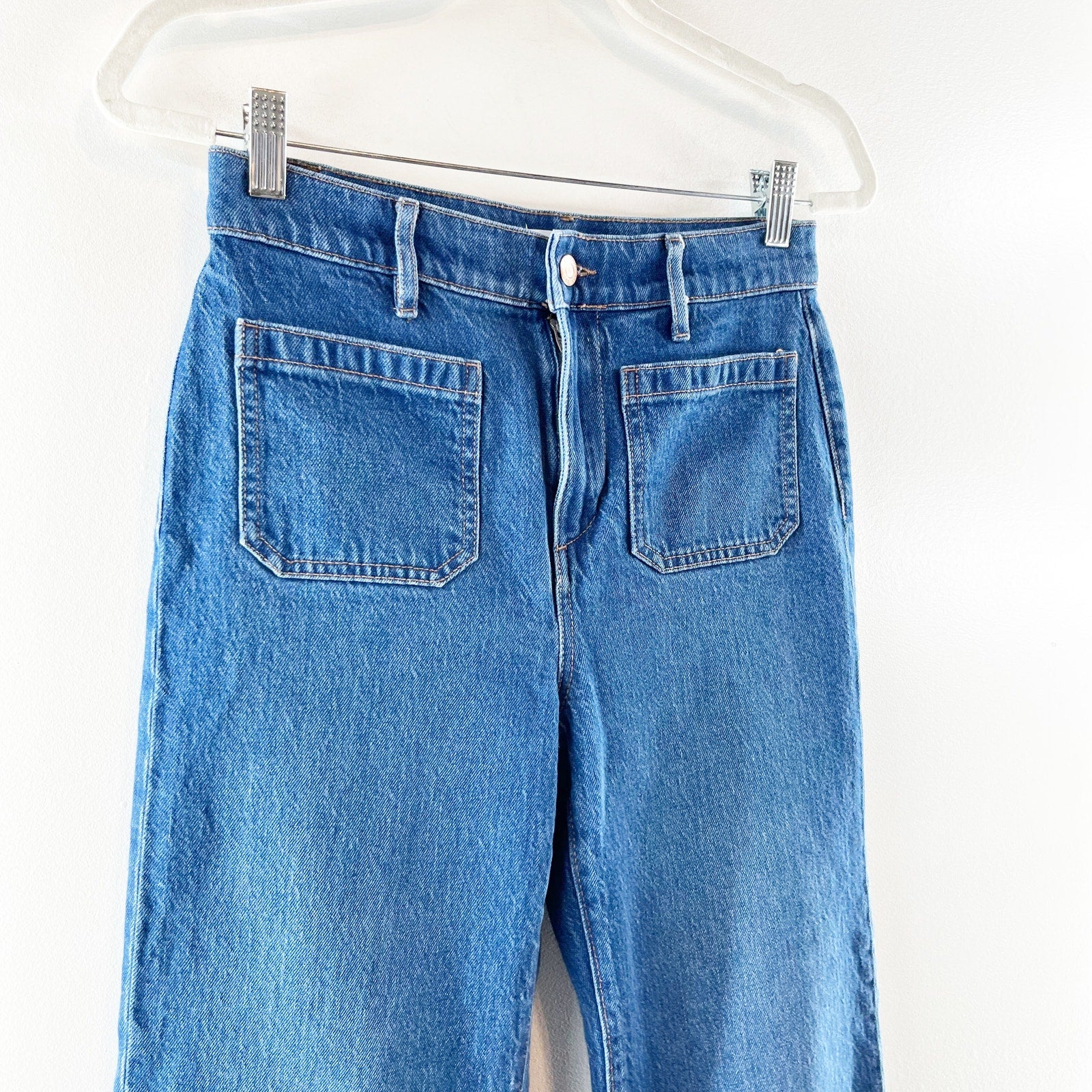LOFT High Waisted Patch Pocket Wide Leg Jeans Blue 26 / 2