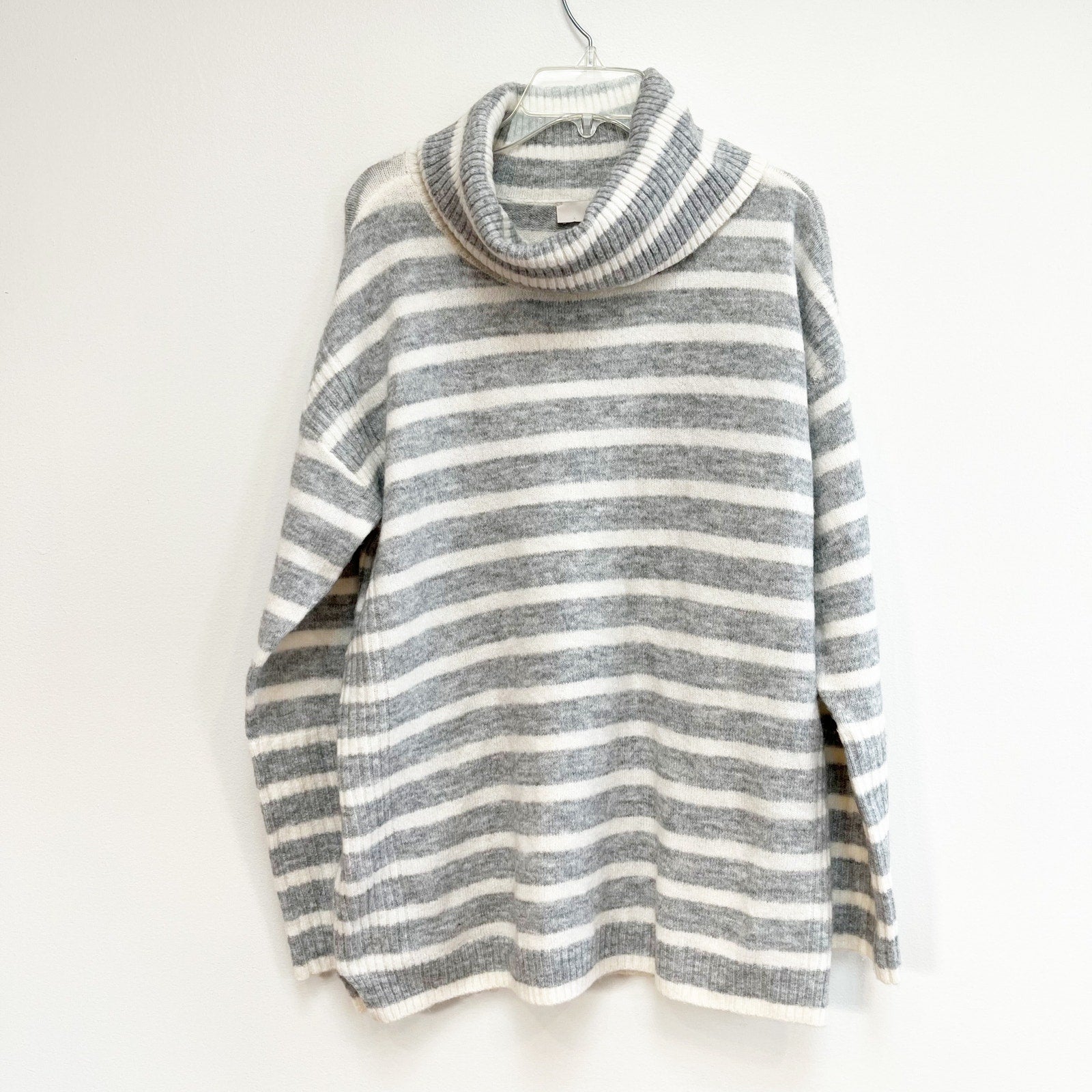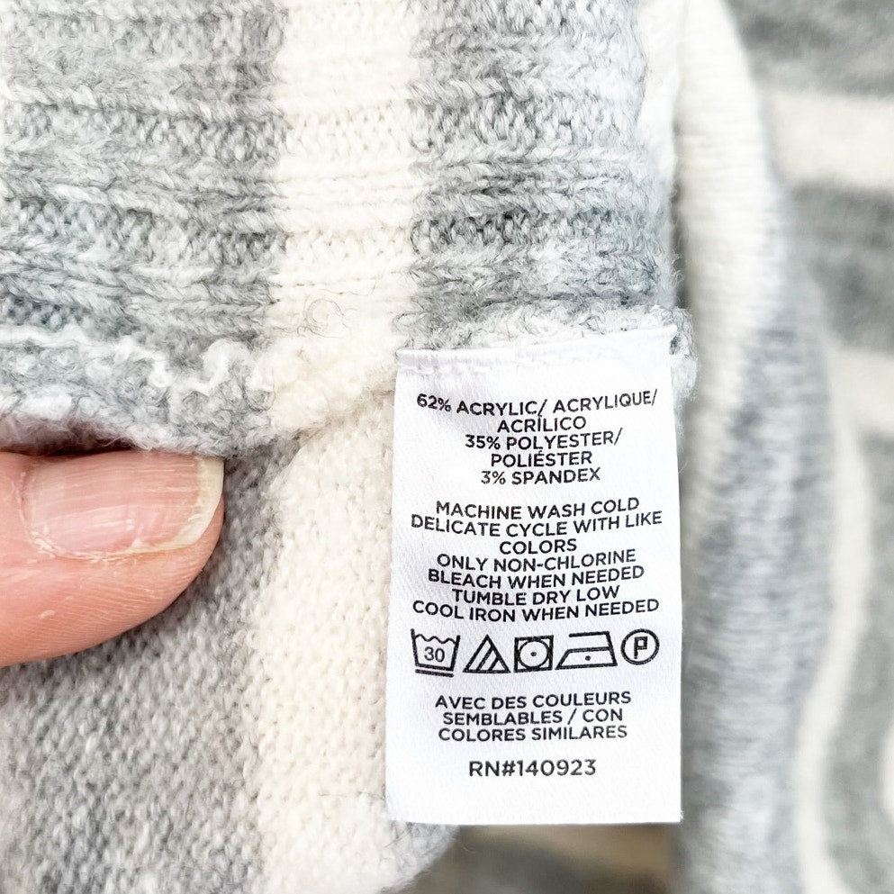 Loft Long Sleeve Striped Soft Turtleneck Sweater Gray White Small