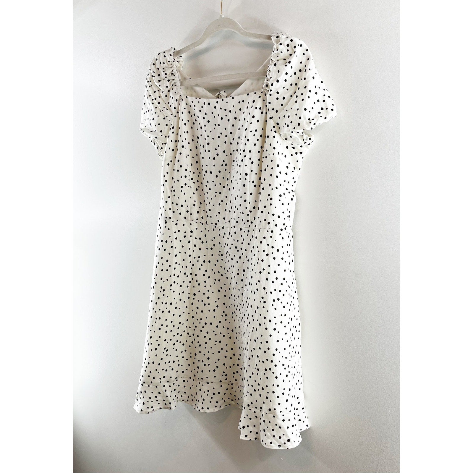 LOFT Petite Polka Dotted Short Flutter Sleeve Mini Dress White 12 Petite