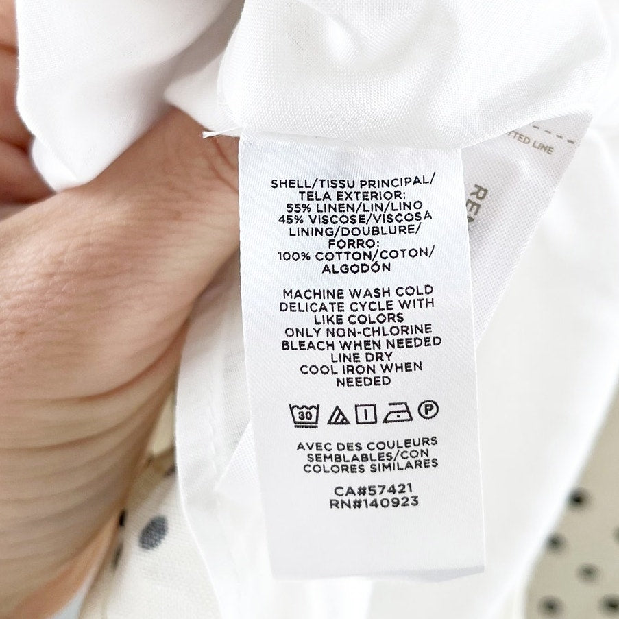 linen blend, short sleeve, polka dot, white, tie back, mini, dress, sundress, white