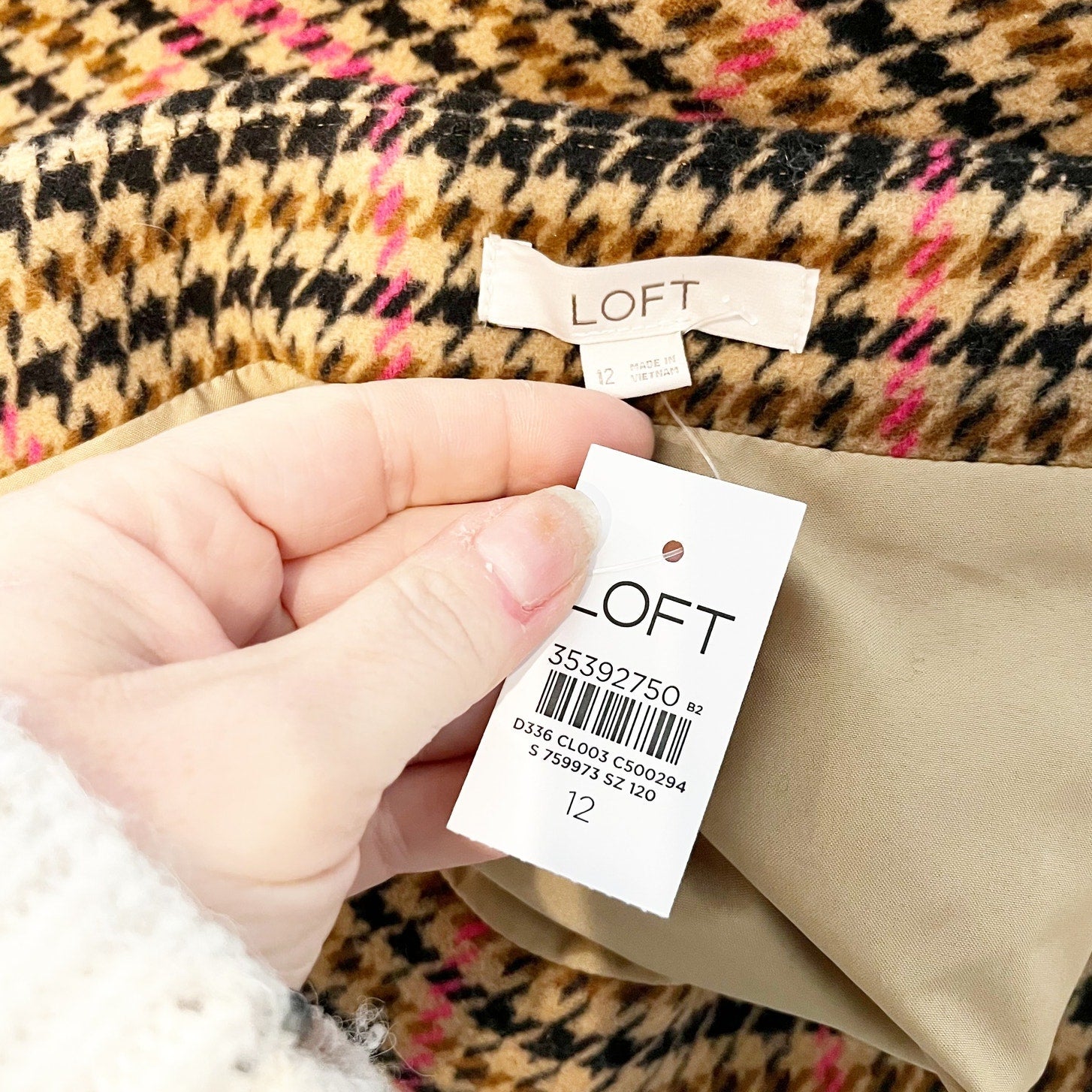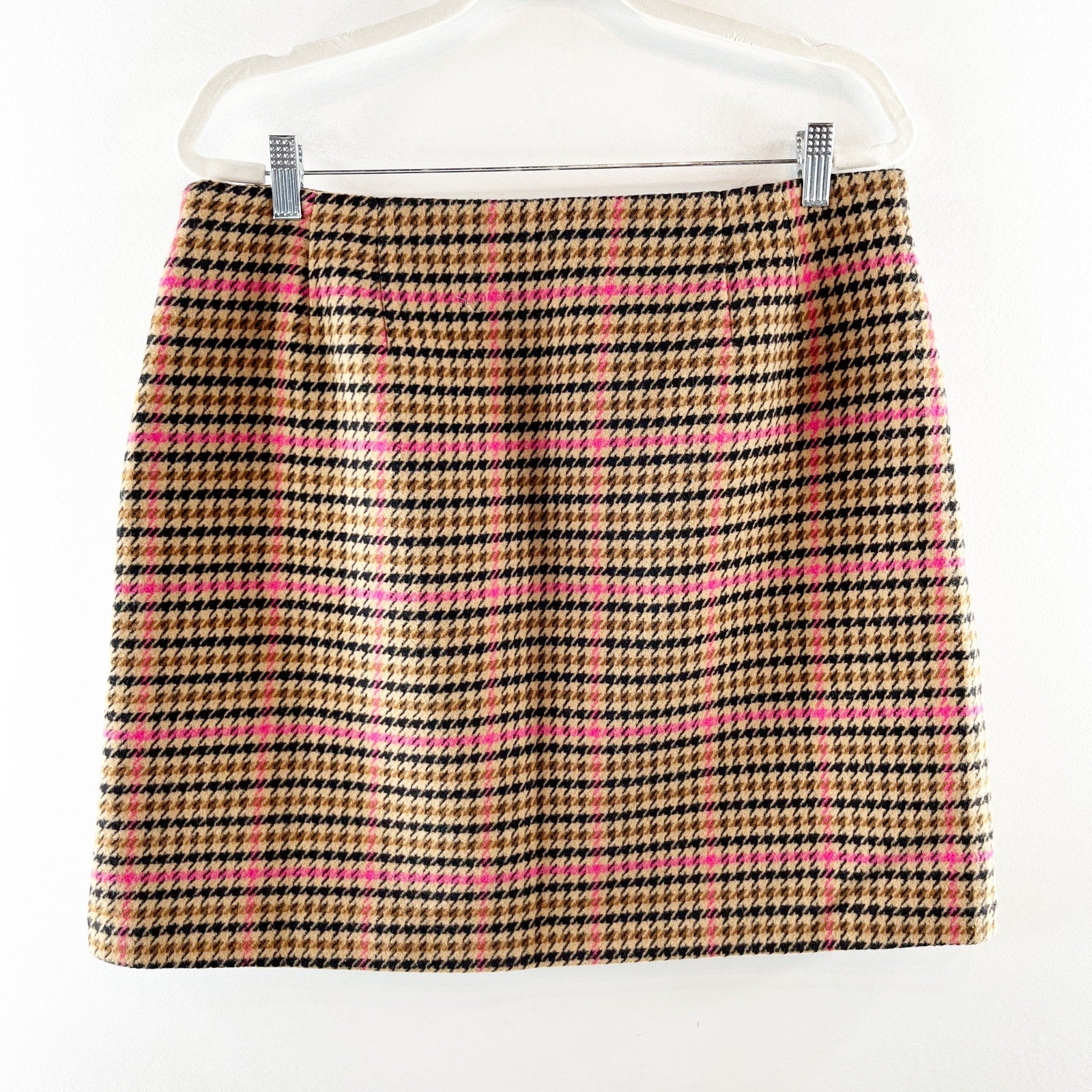 LOFT Plaid Lined Mini Skirt Brown Pink 12